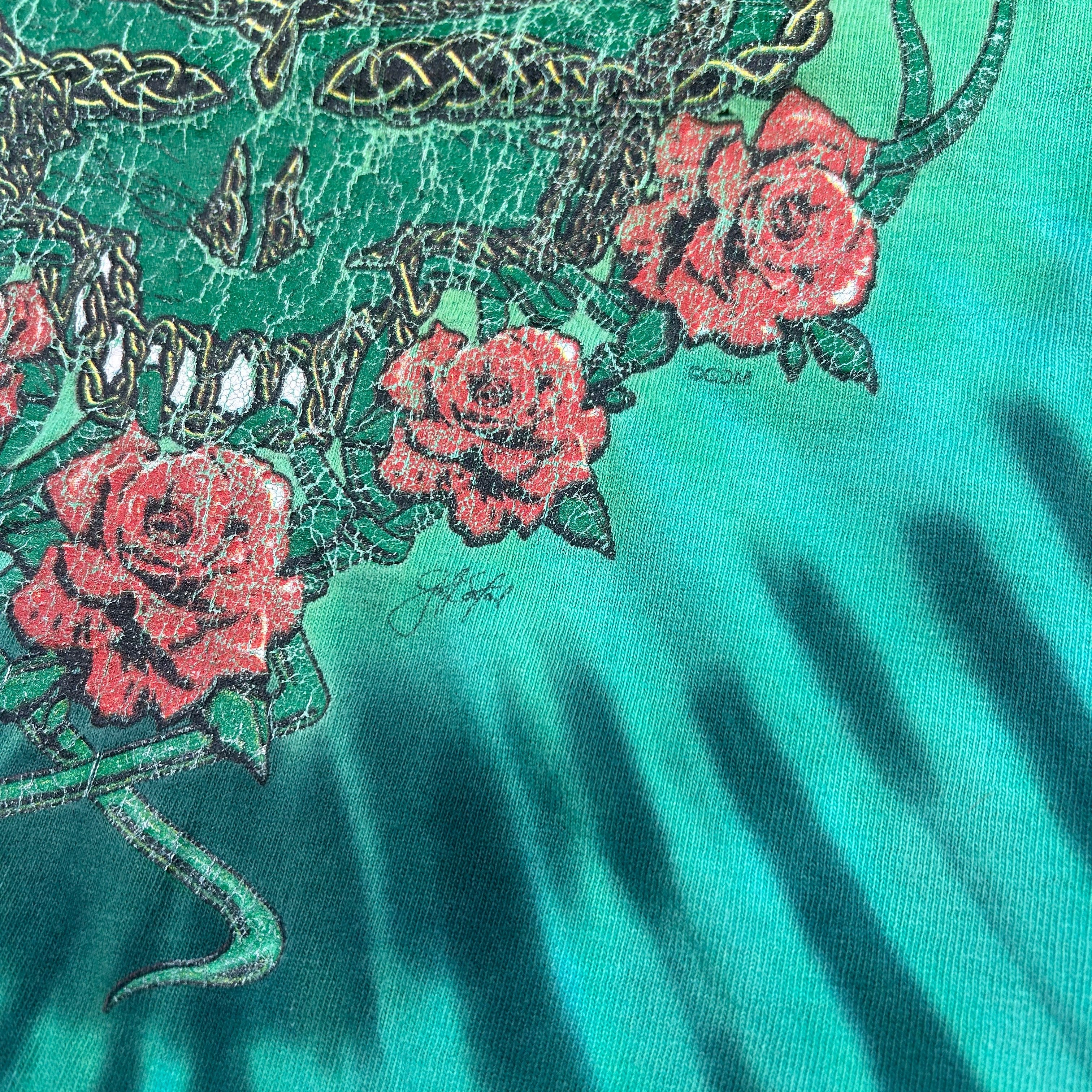 Vintage Grateful Dead Green Tie Dye T-Shirt Roses Dead Head Anvil Men’s Size M