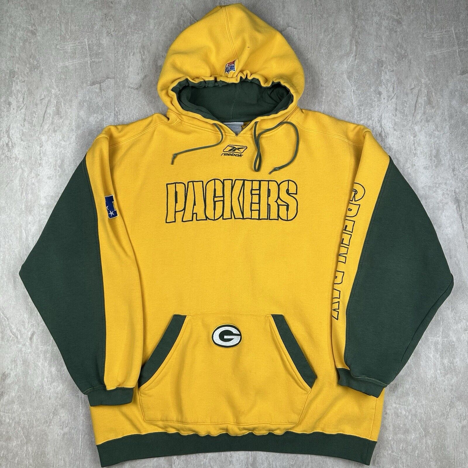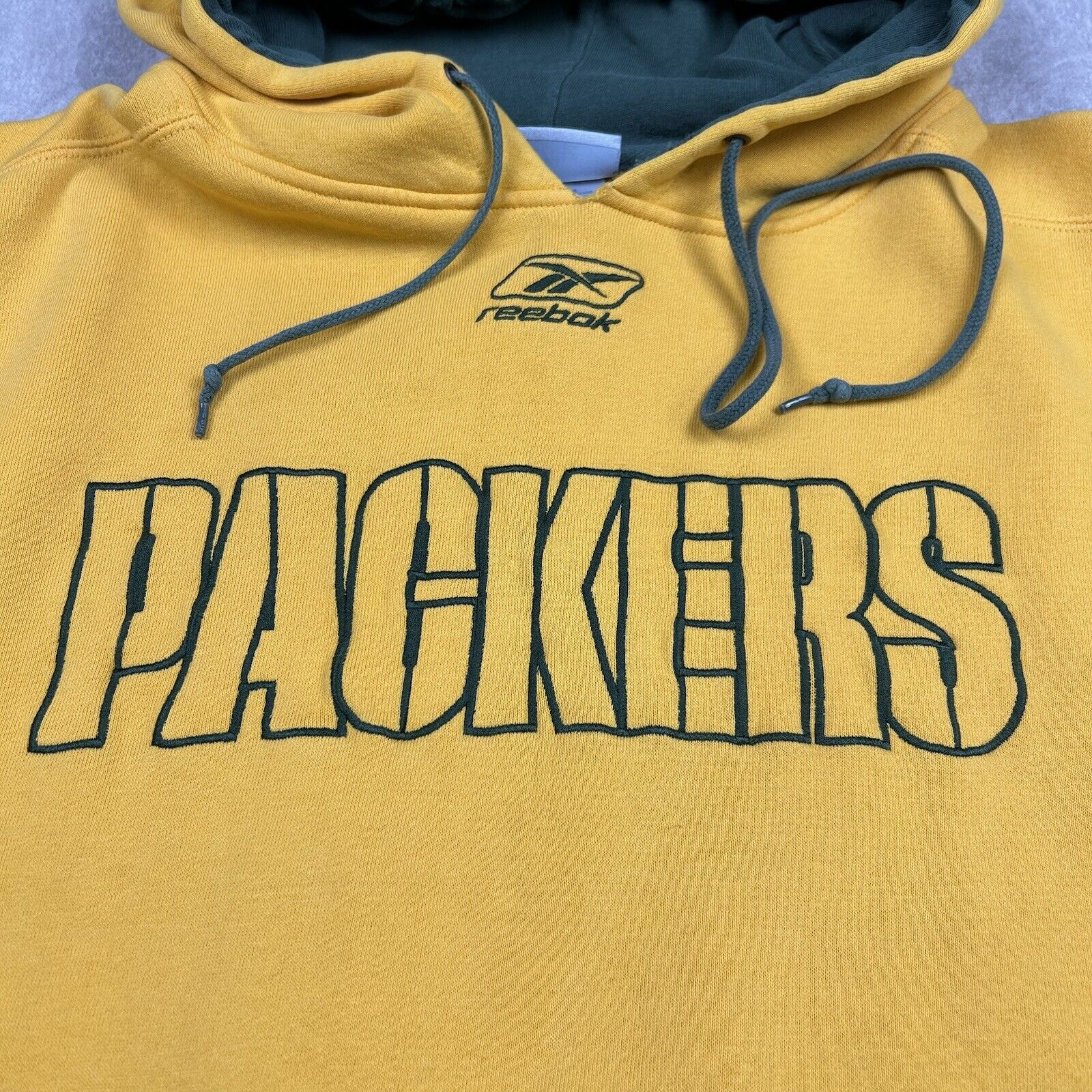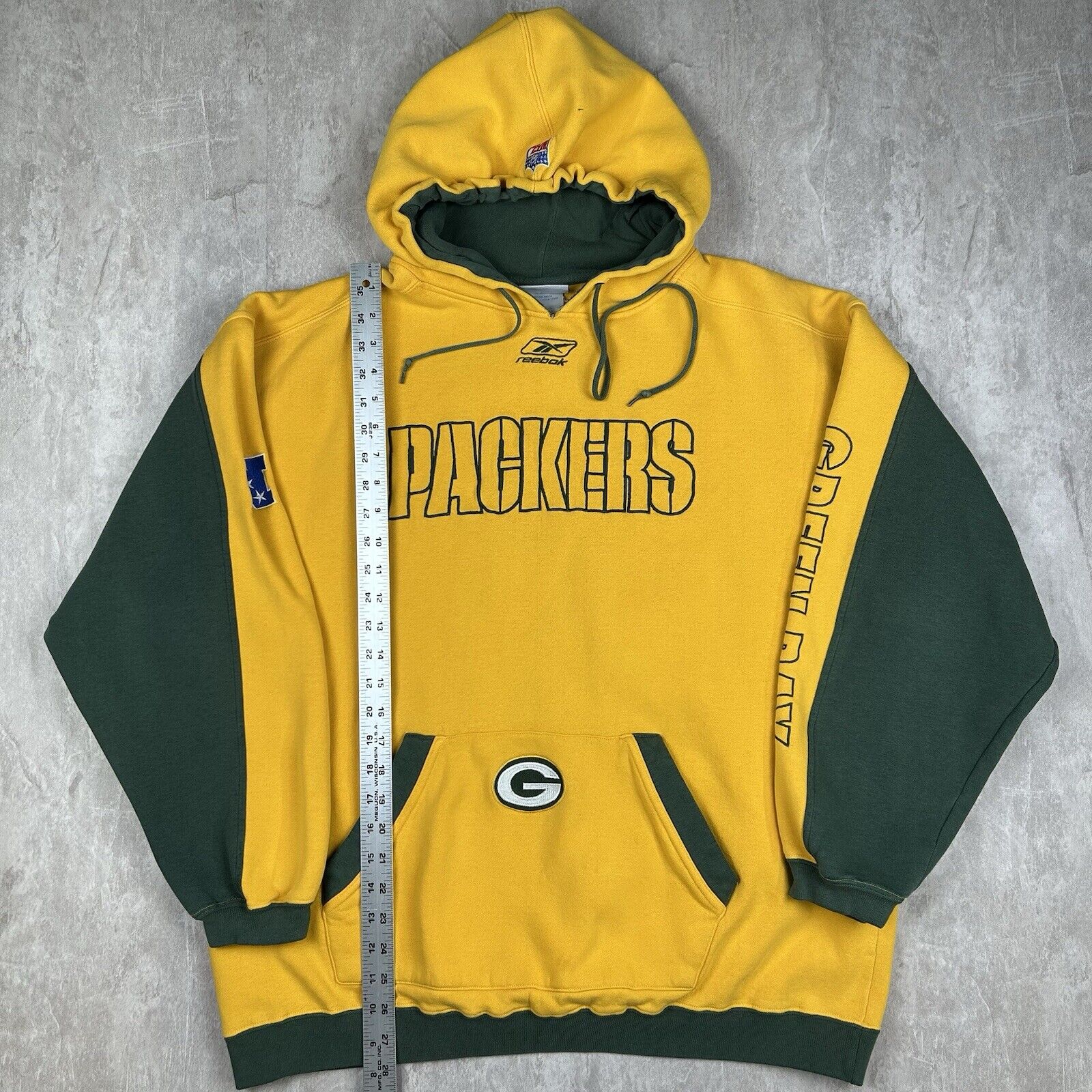 Vintage Green Bay Packers Reebok Hoodie Sweatshirt Yellow Green Men’s Size XL