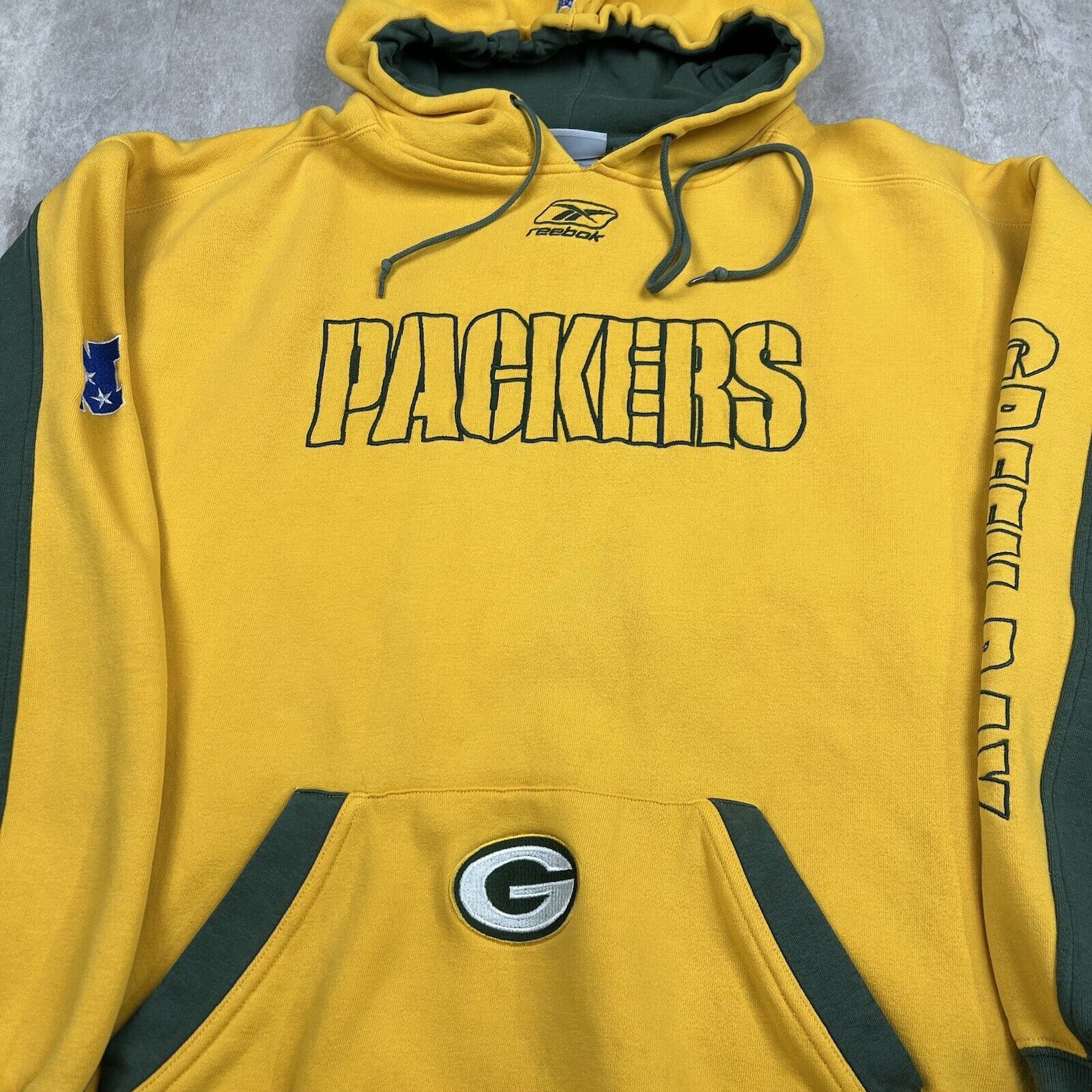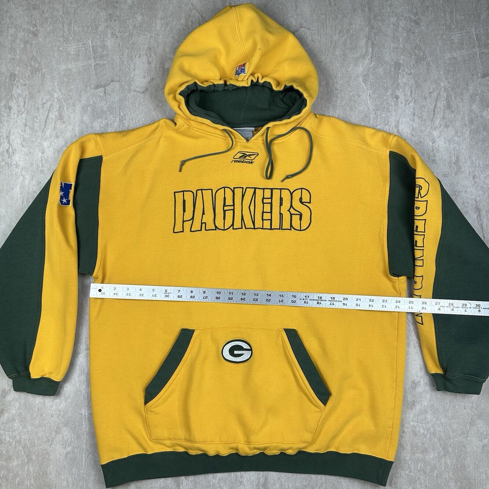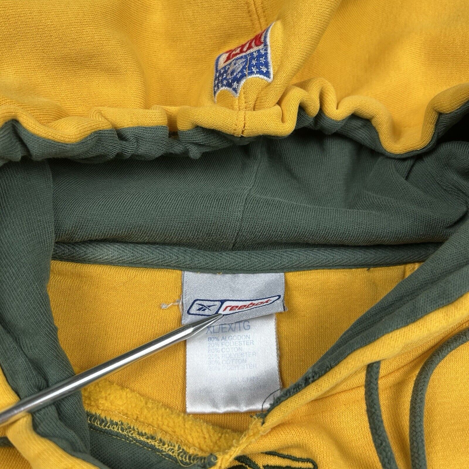 Vintage Green Bay Packers Reebok Hoodie Sweatshirt Yellow Green Men’s Size XL