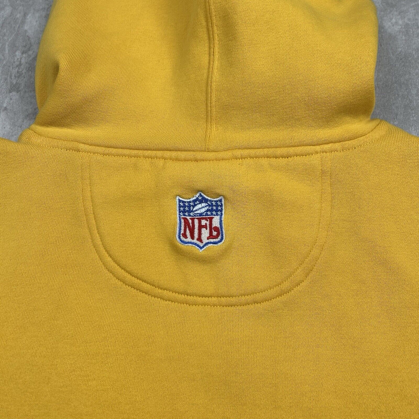 This Vintage Green Bay Packers Reebok Hoodie in size XL features the team's iconic yellow and green colors with bold graphics. Perfect for Packers fans and collectors of vintage NFL apparel, it combines comfort and team spirit.