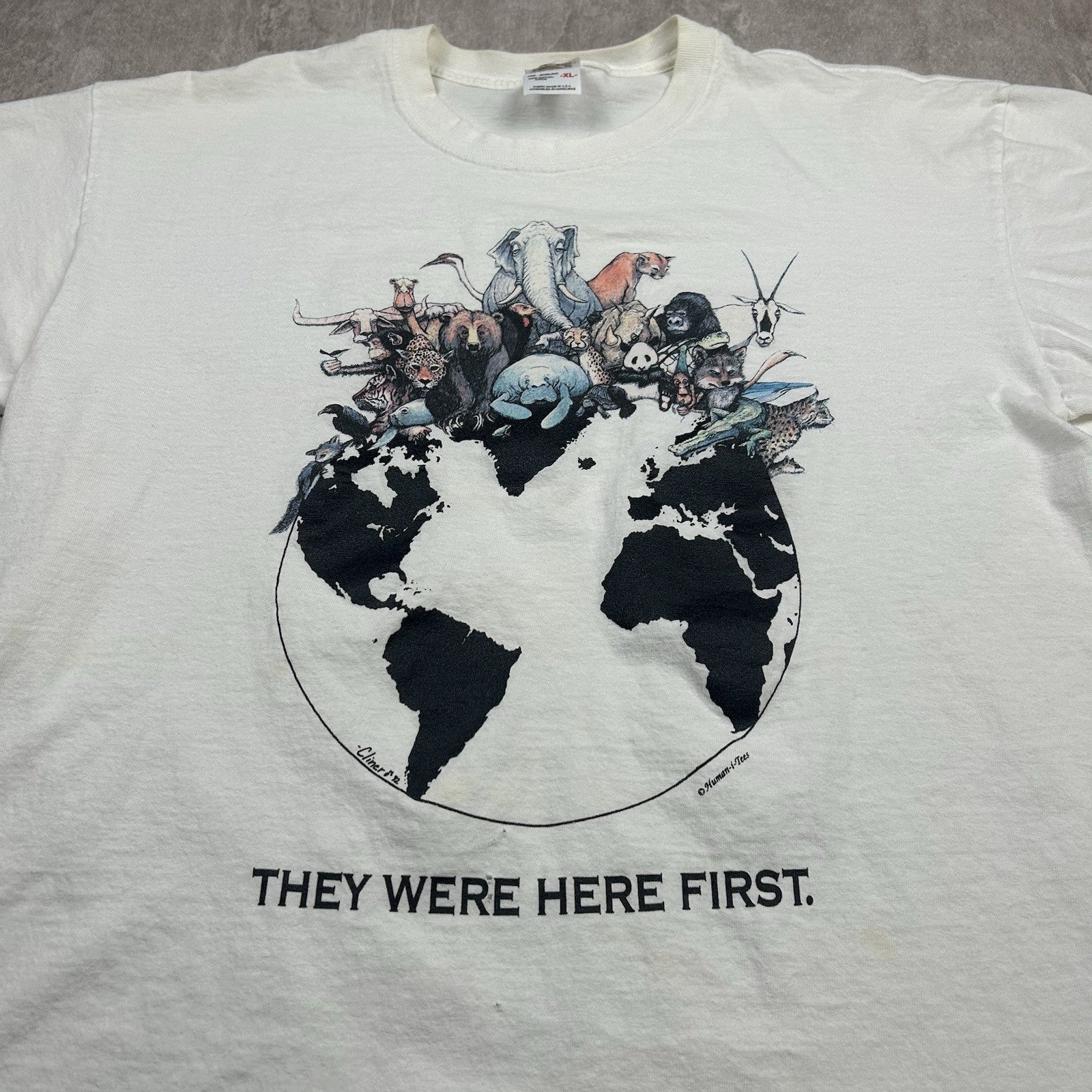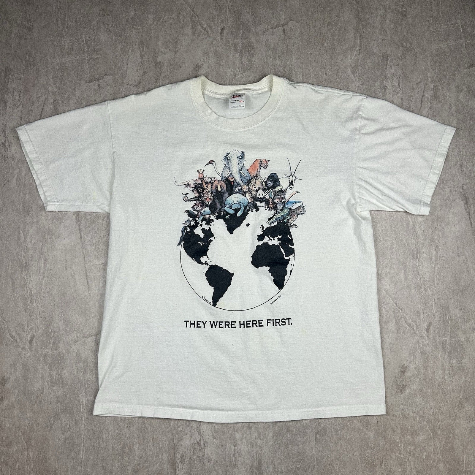 Vintage Human-I-Tees They Were Here First Animal Nature T-Shirt Men’s Size L