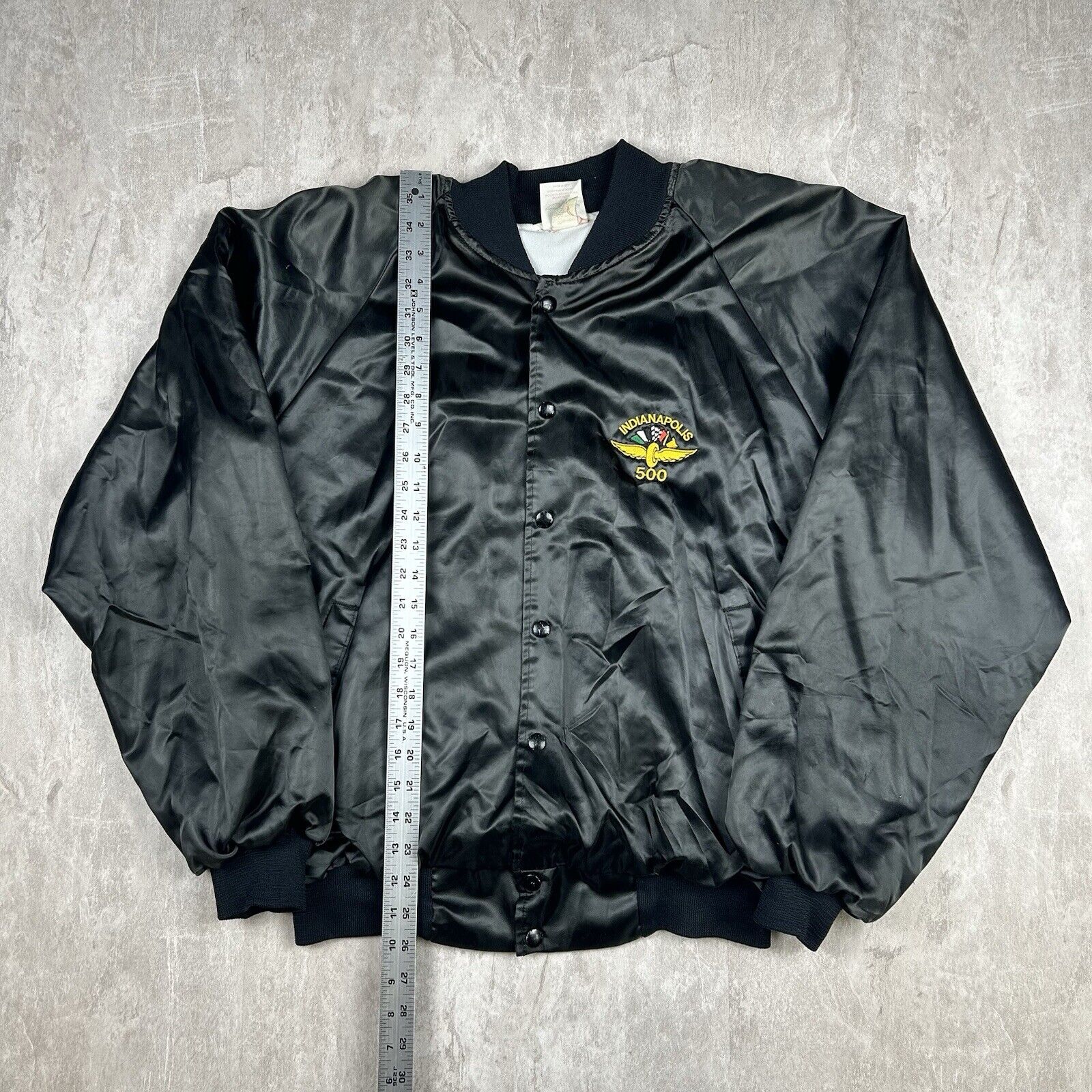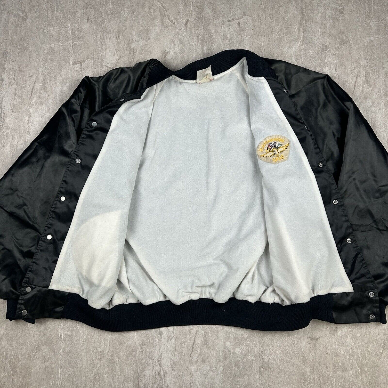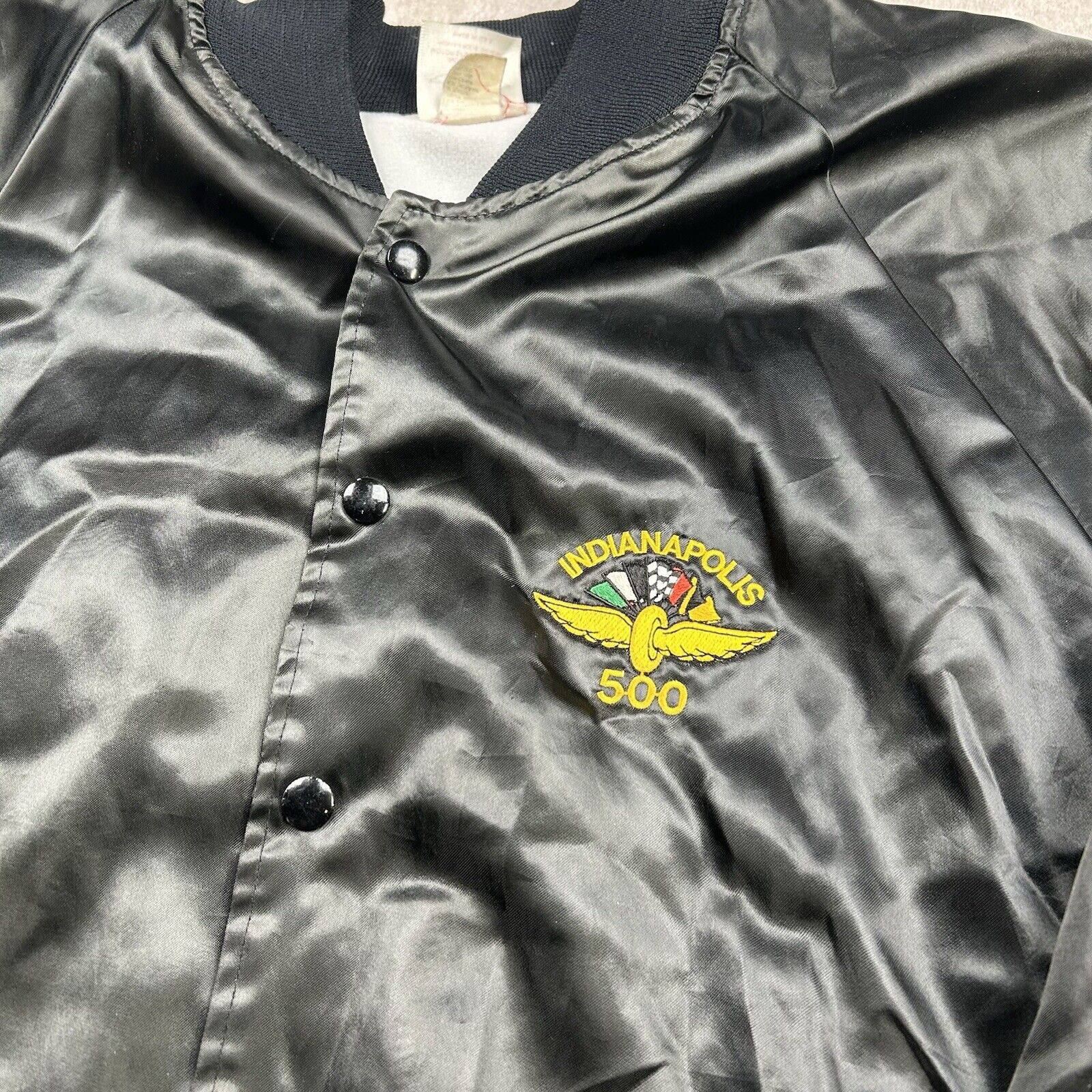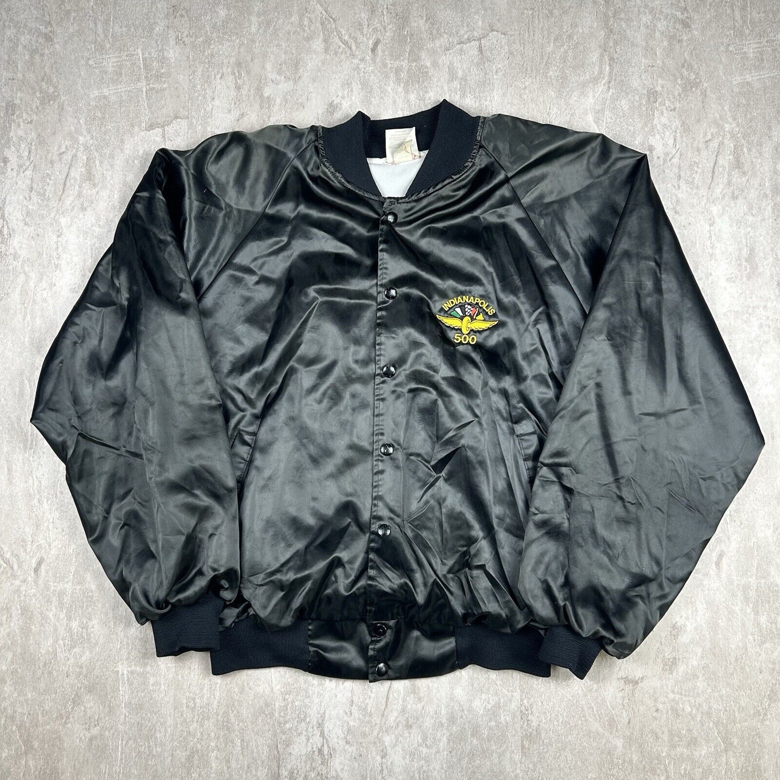 Vintage Indianapolis Indy 500 Racing Satin Bomber Jacket USA Made Men’s Size XL