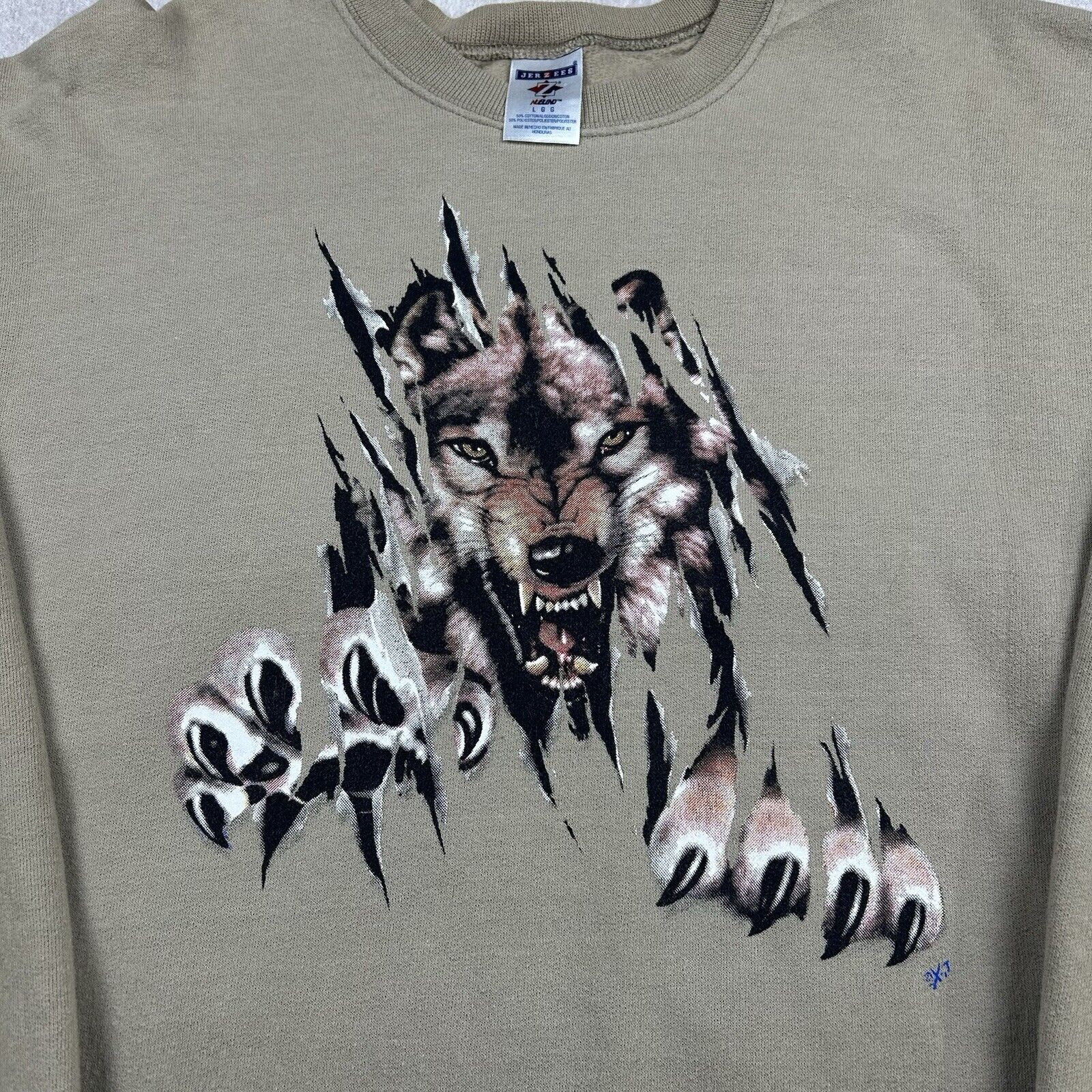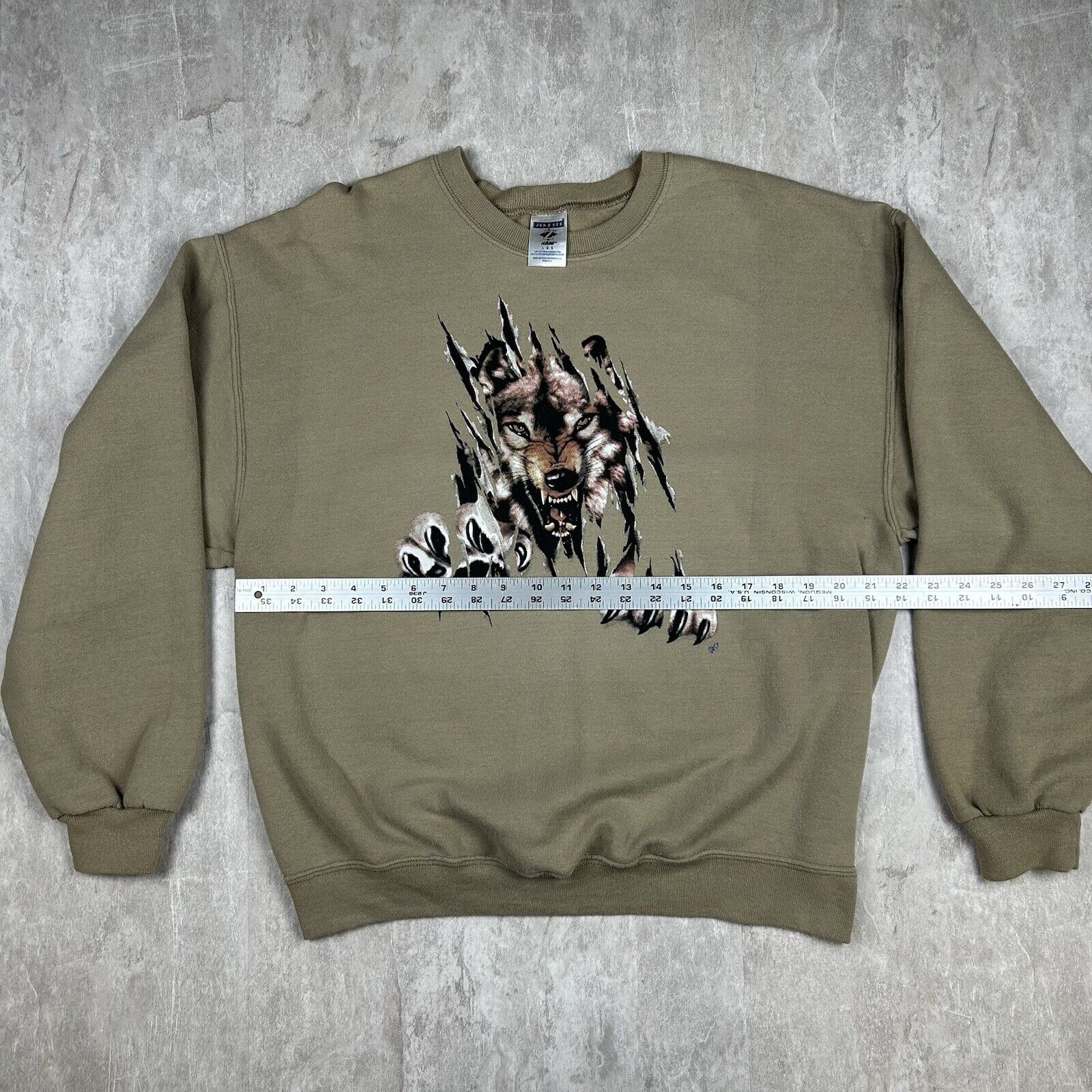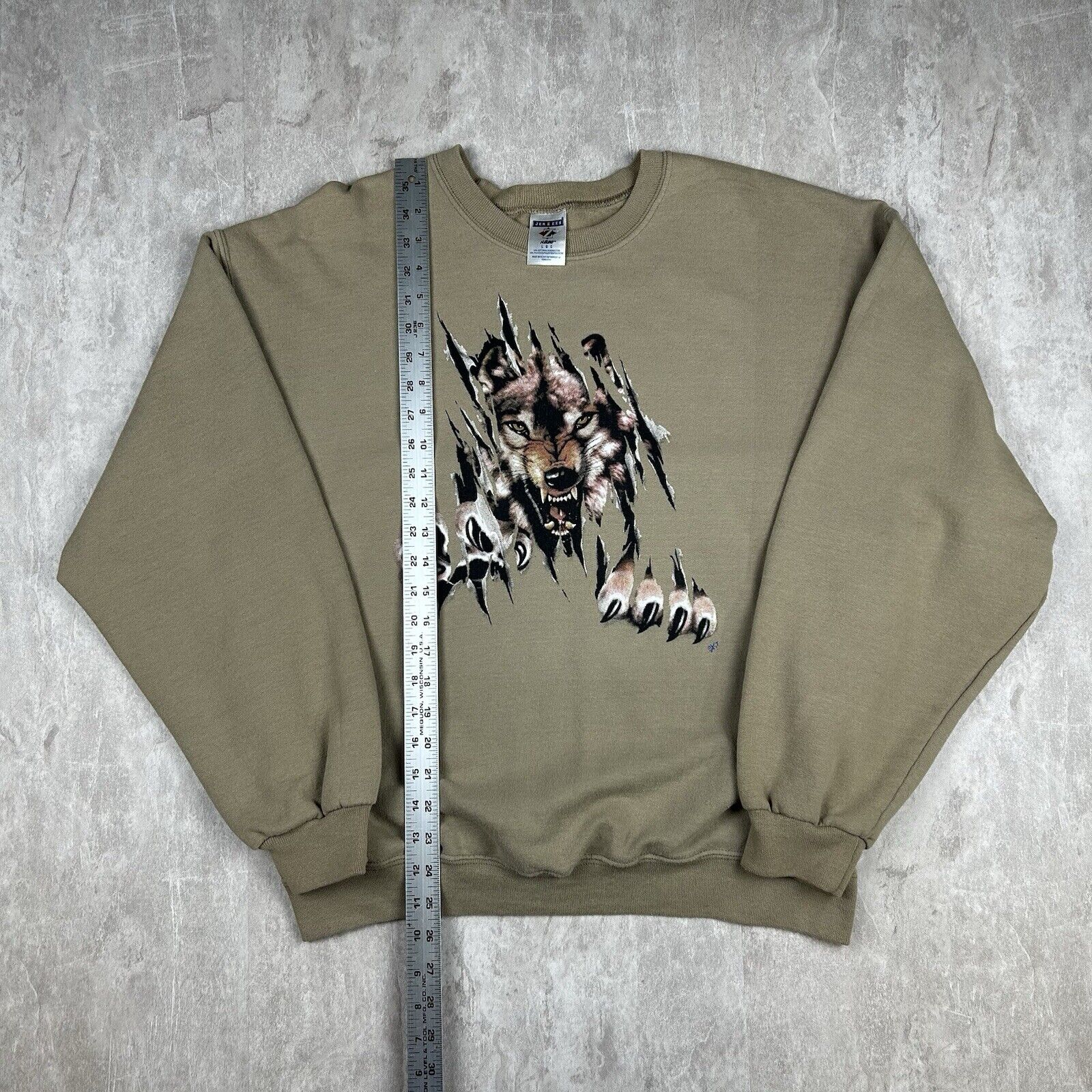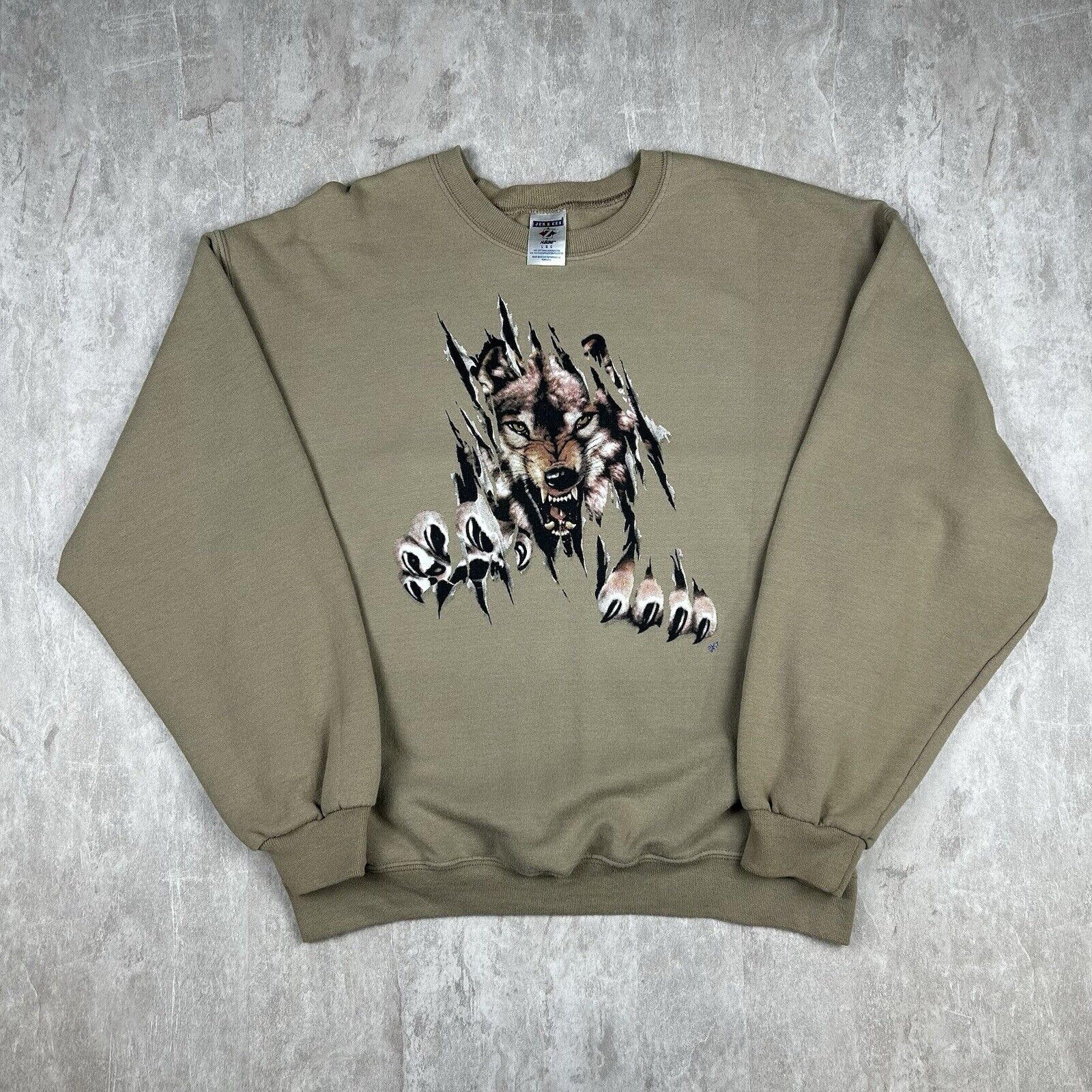 Vintage Jerzees Wolf Claw Scratching Beige Sweatshirt Crewneck Men’s Size L