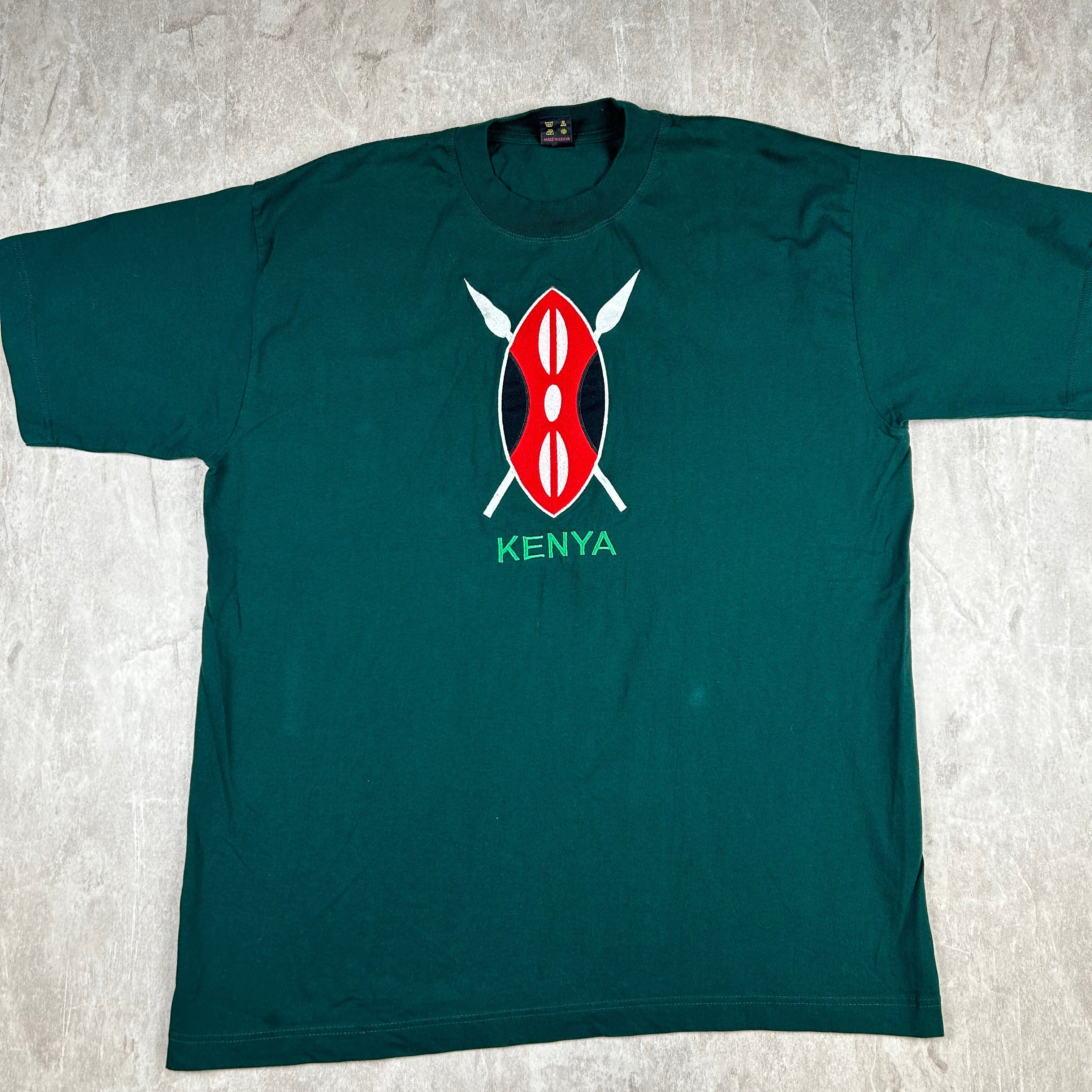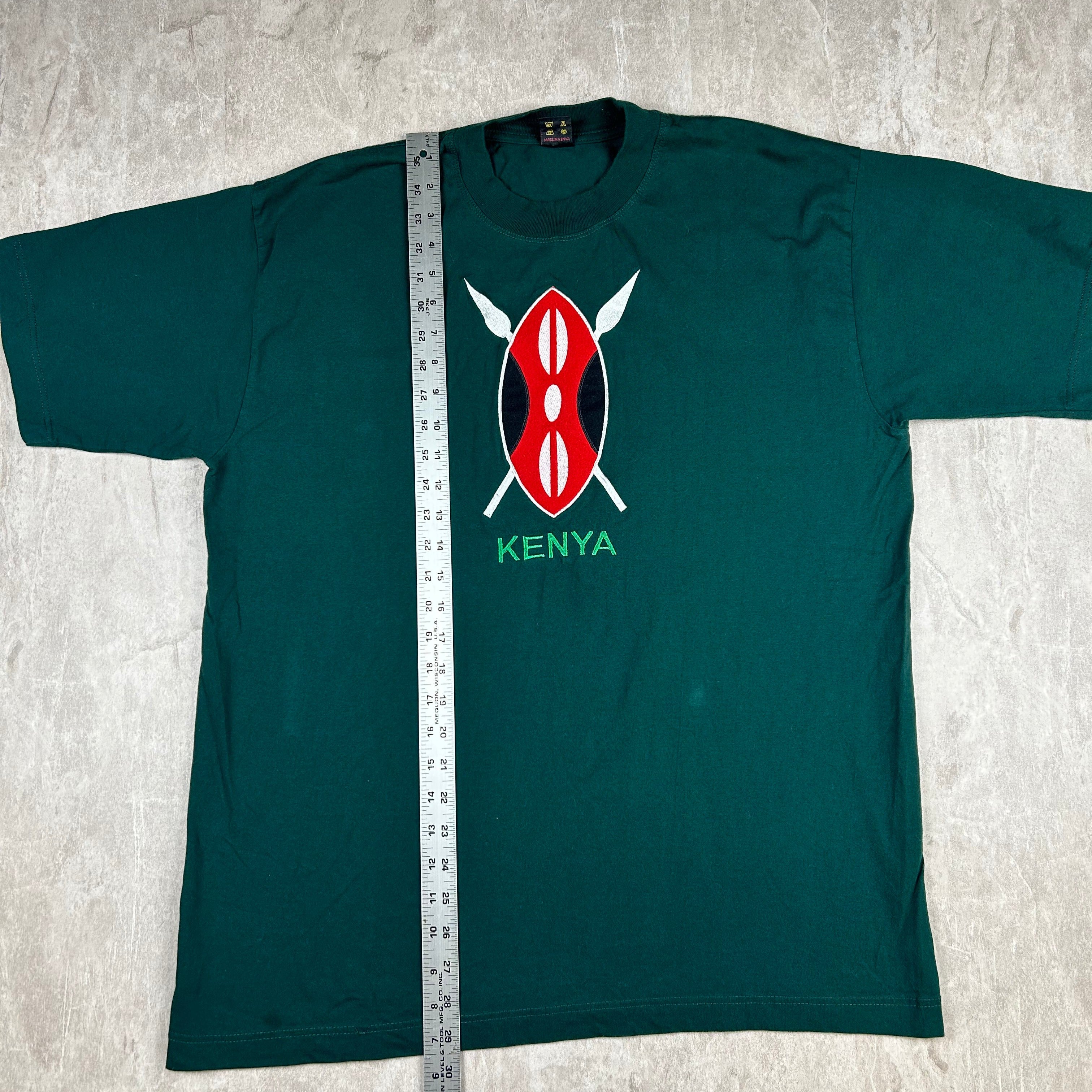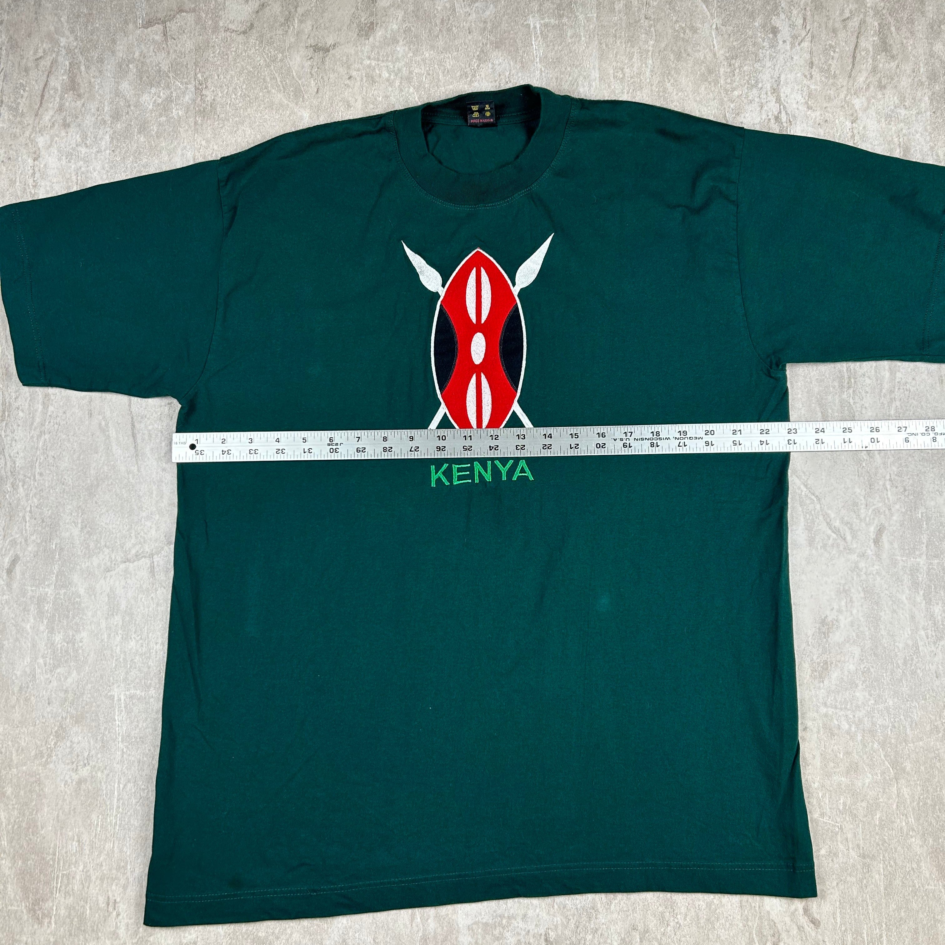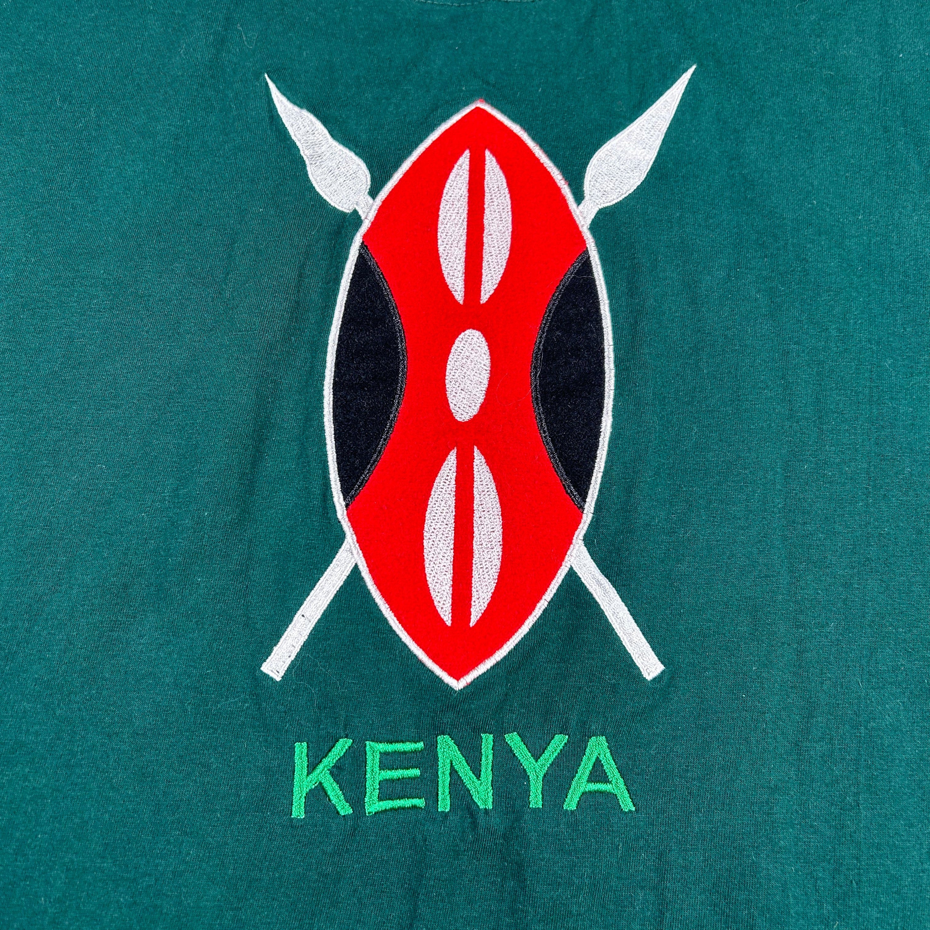 Vintage Kenya Africa Green Embroidered Shield T-Shirt Punch Men’s Size Unknown