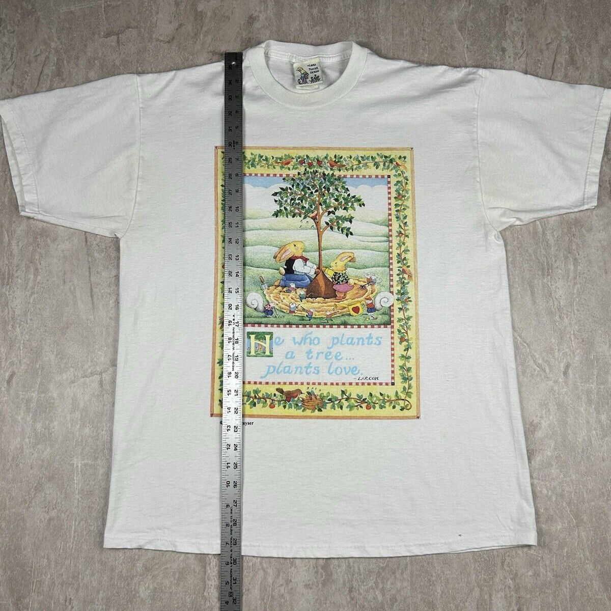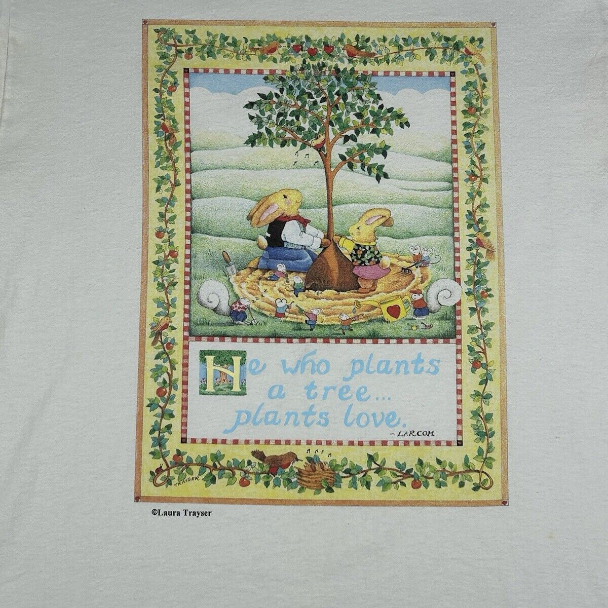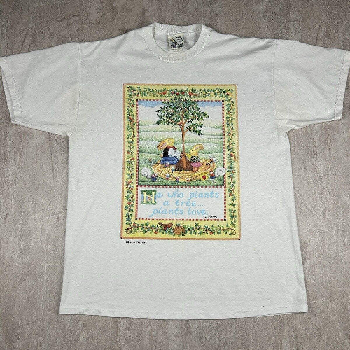 Vintage Laura Trayser Designs T-Shirt Bunny Rabbit Plant Tree Love Men’s Size XL