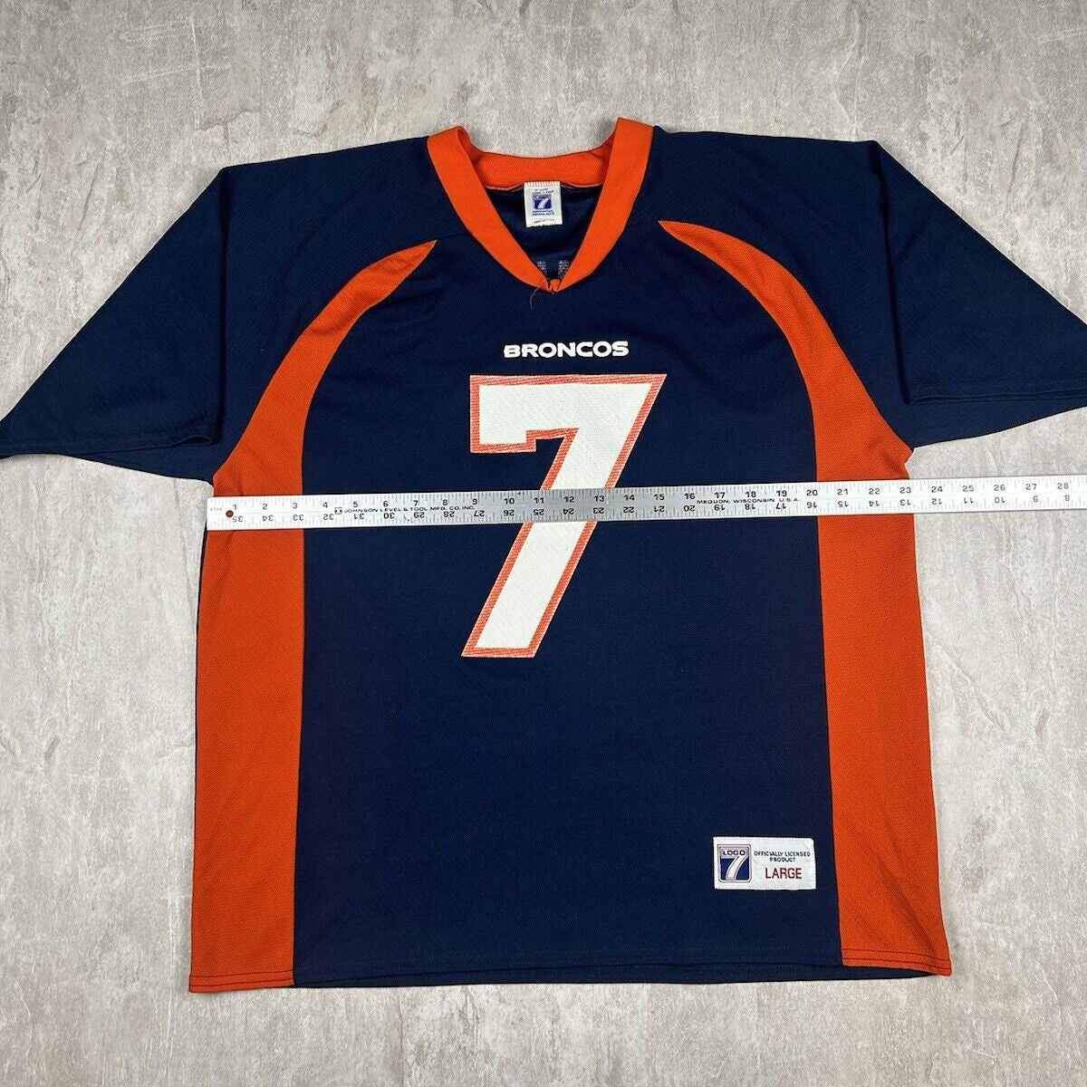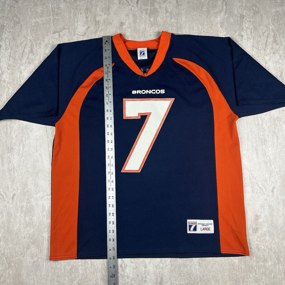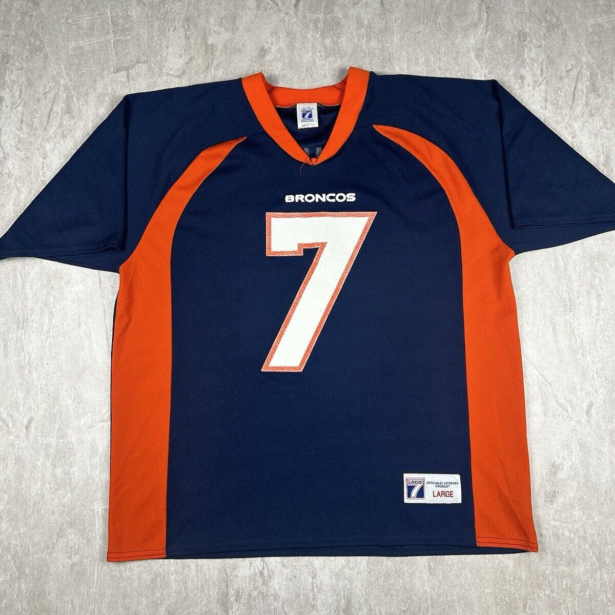 This Vintage Logo 7 Denver Broncos John Elway #7 Jersey, in men's size L, celebrates the legendary quarterback with an iconic NFL design. Perfect for any football fan, it's a classic piece that honors one of the greatest to ever play the game.