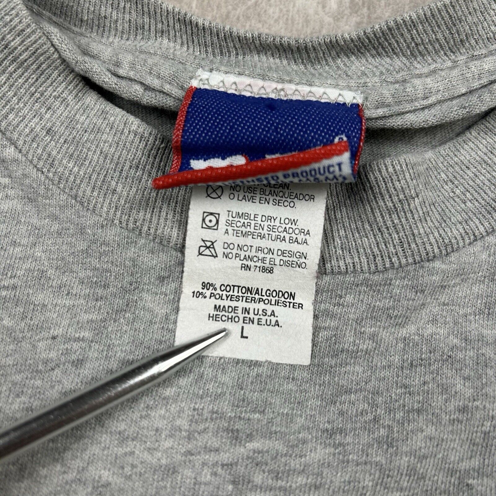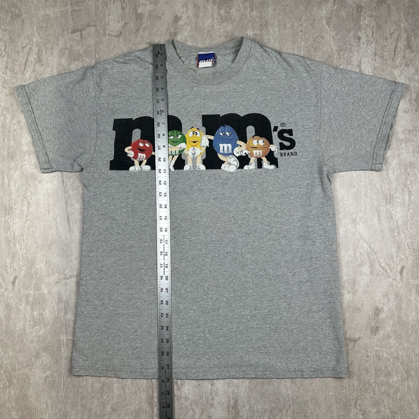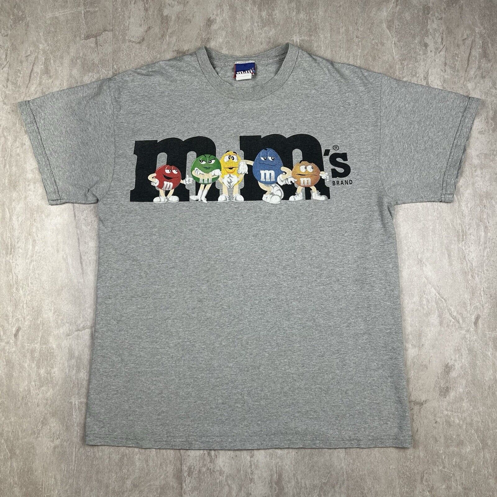 This Vintage M&M's Characters T-Shirt in size L features a playful graphic of the iconic candy characters on a gray backdrop. Made in the USA, it's a fun piece for collectors of nostalgic and retro candy-themed apparel.