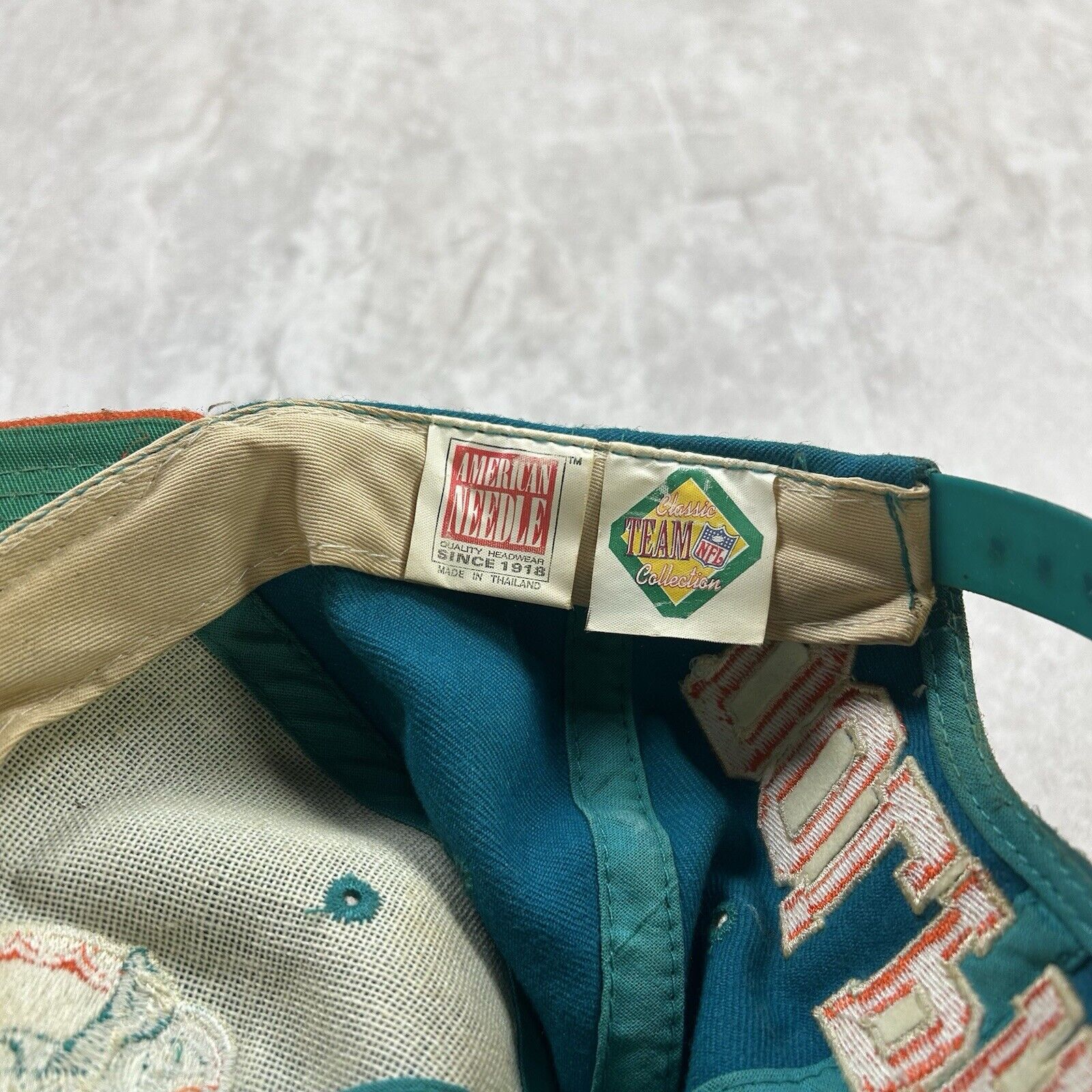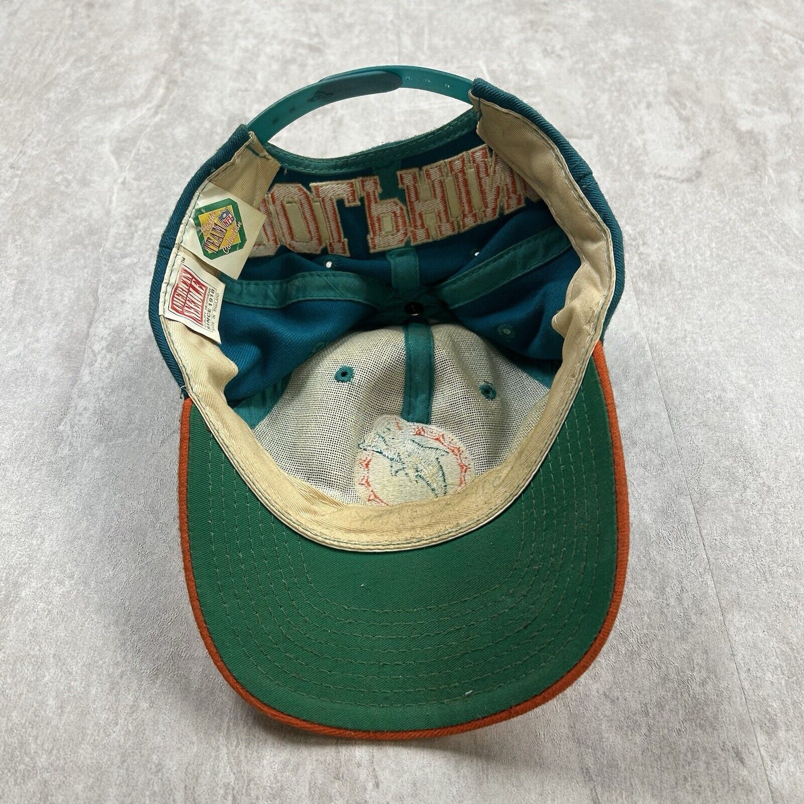 Vintage Miami Dolphins Snapback Hat American Needle Blockhead Teal Orange NFL