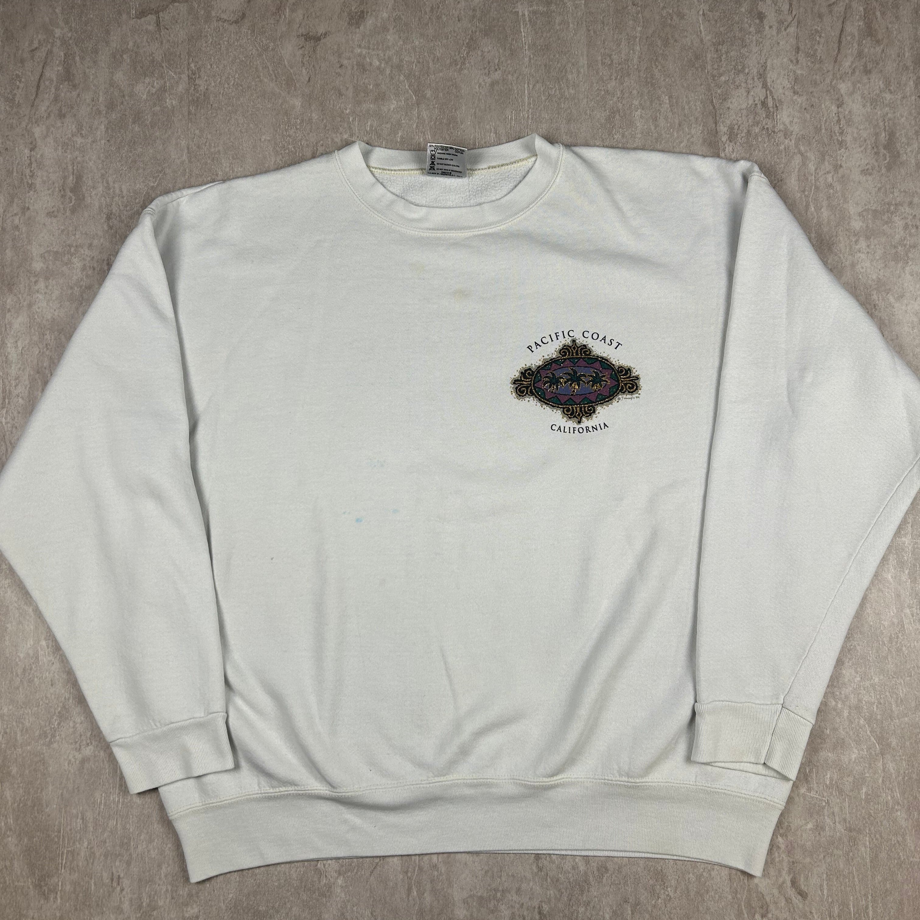 Vintage Oneita Pacific Coast California Sweater Mens XL White Sweatshirt 90s