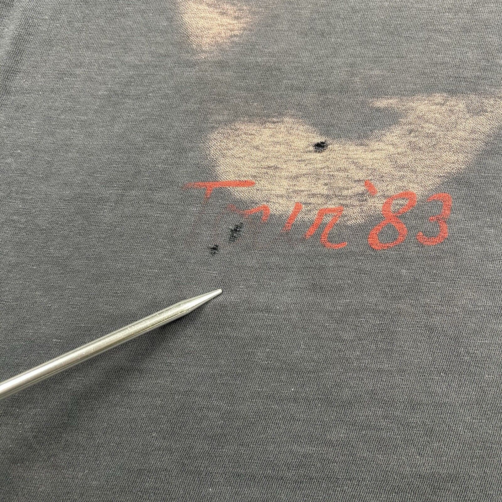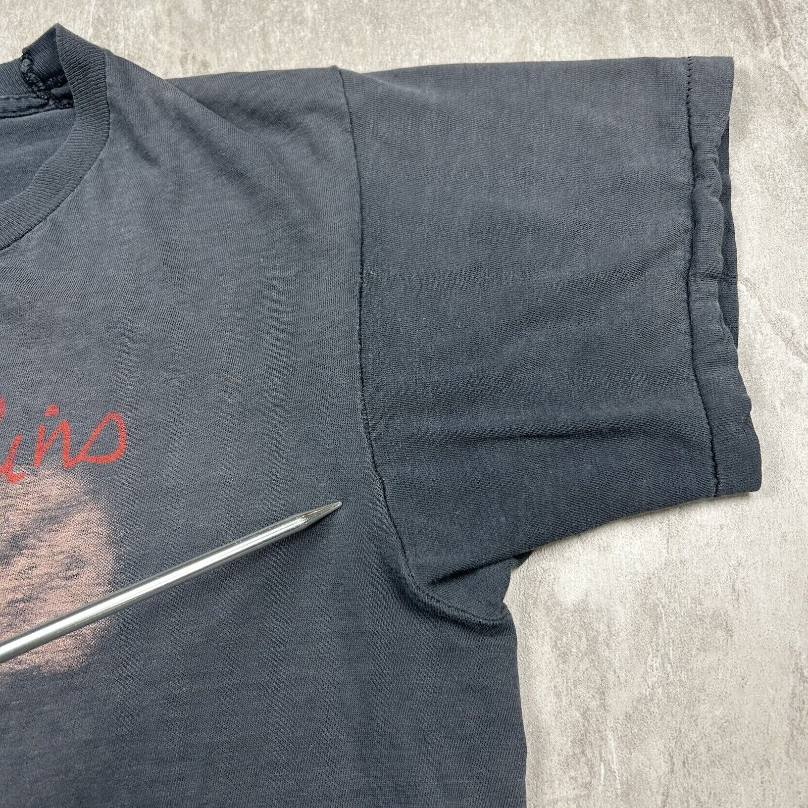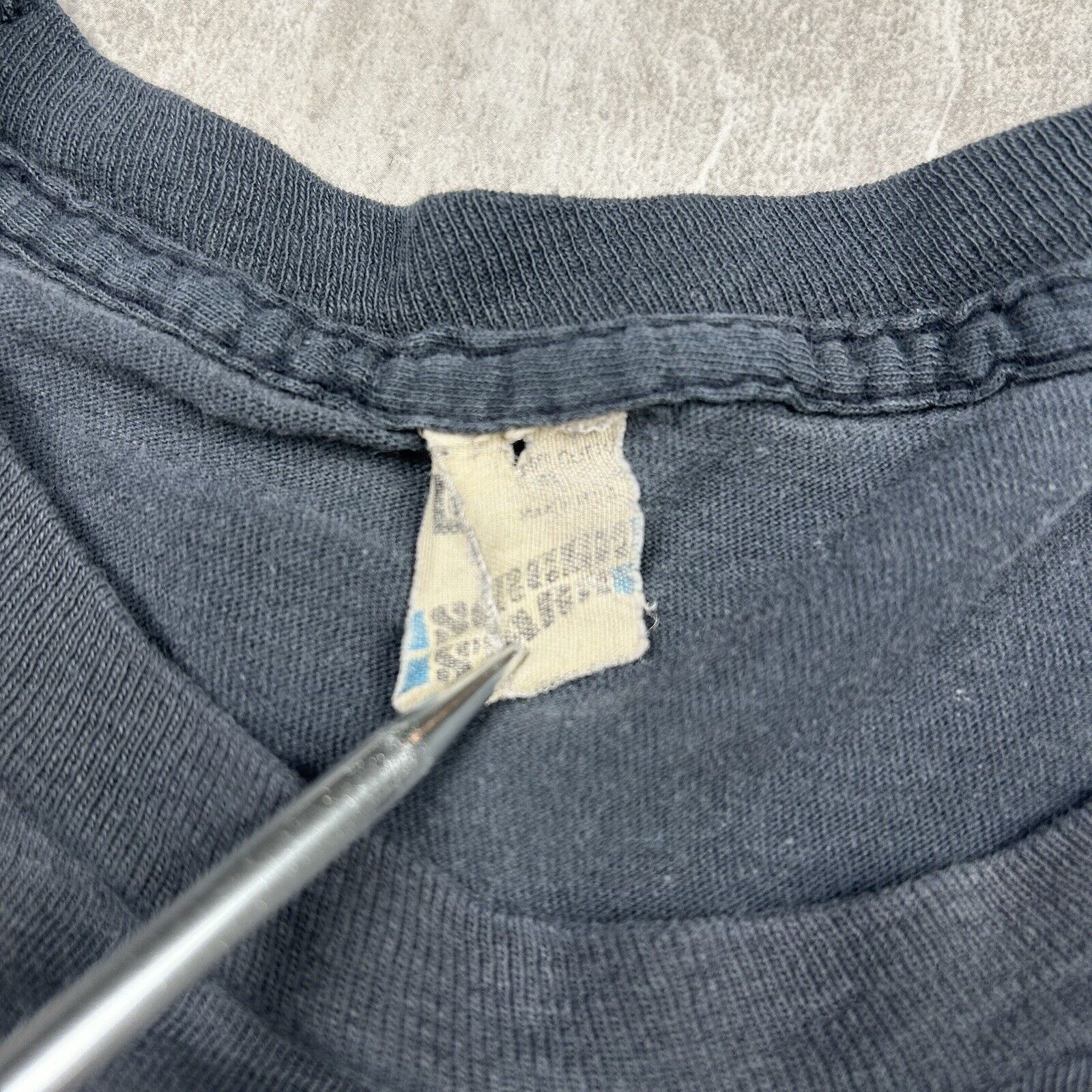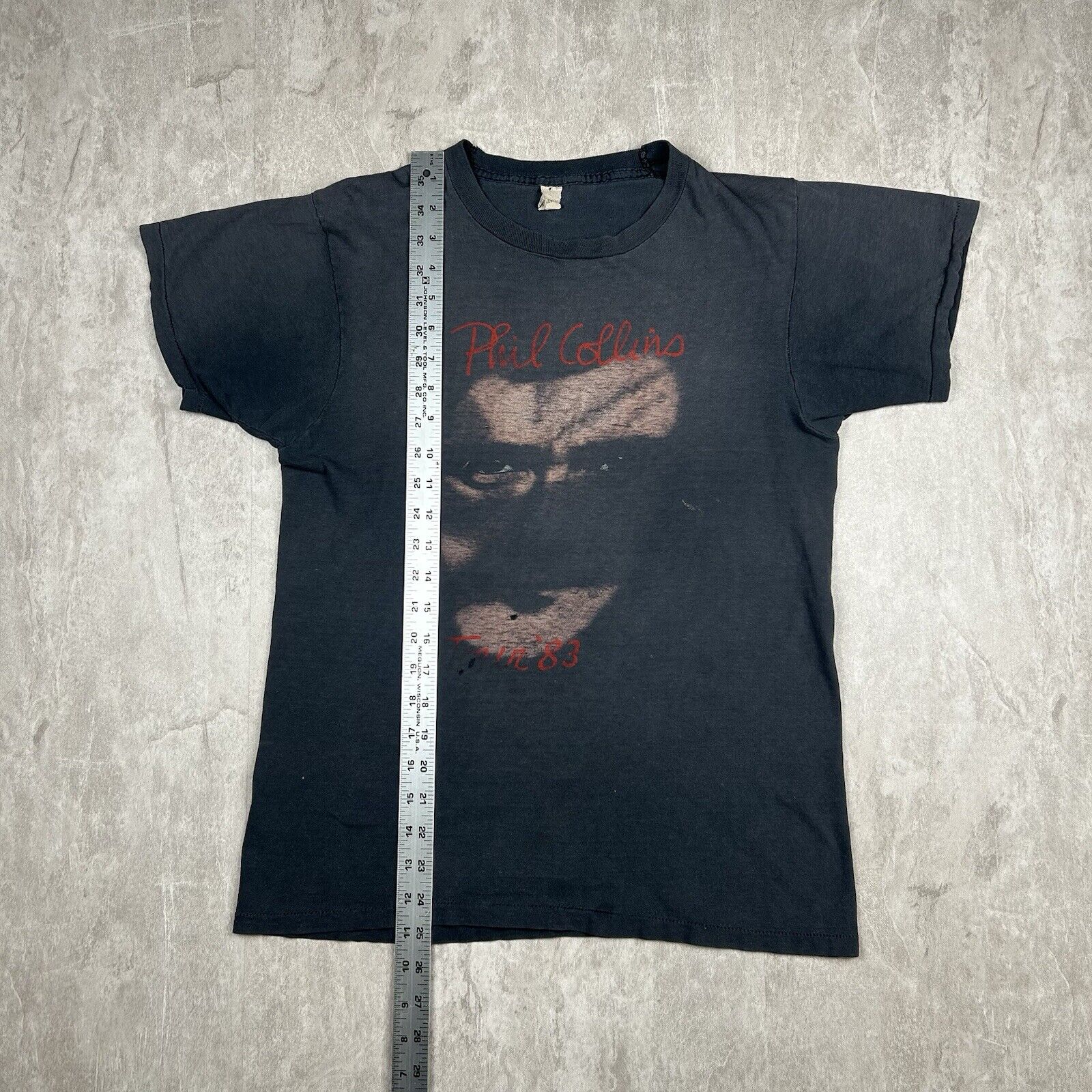 This vintage 1983 Phil Collins concert tour T-shirt in Men's Size L features a faded black design, giving it a well-loved, classic rock vibe. Made from soft cotton, this tee captures the essence of 80s music culture and is perfect for collectors of vintage band apparel or fans of Phil Collins. A true throwback piece!