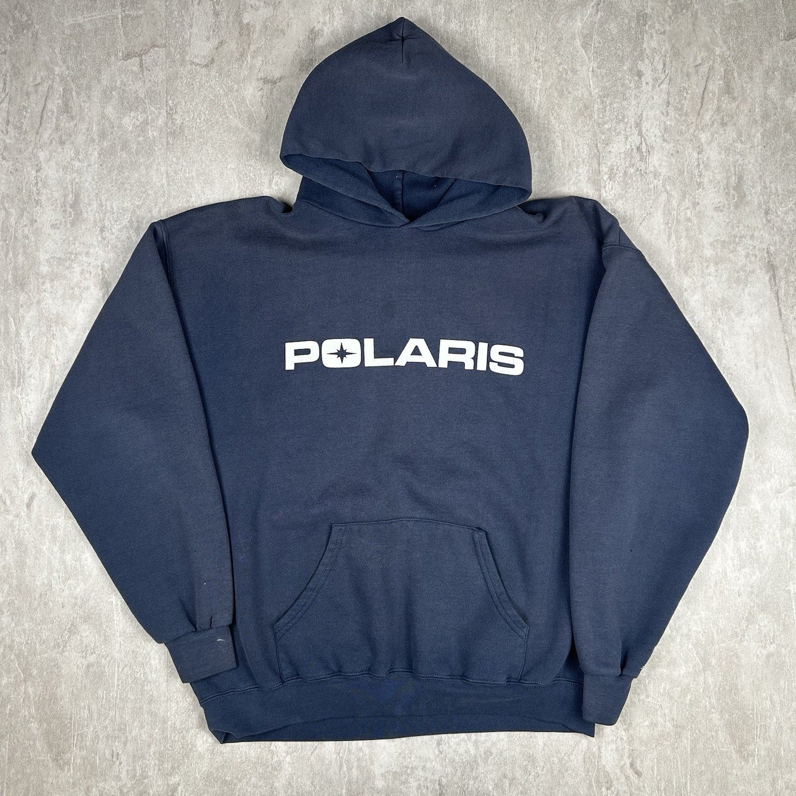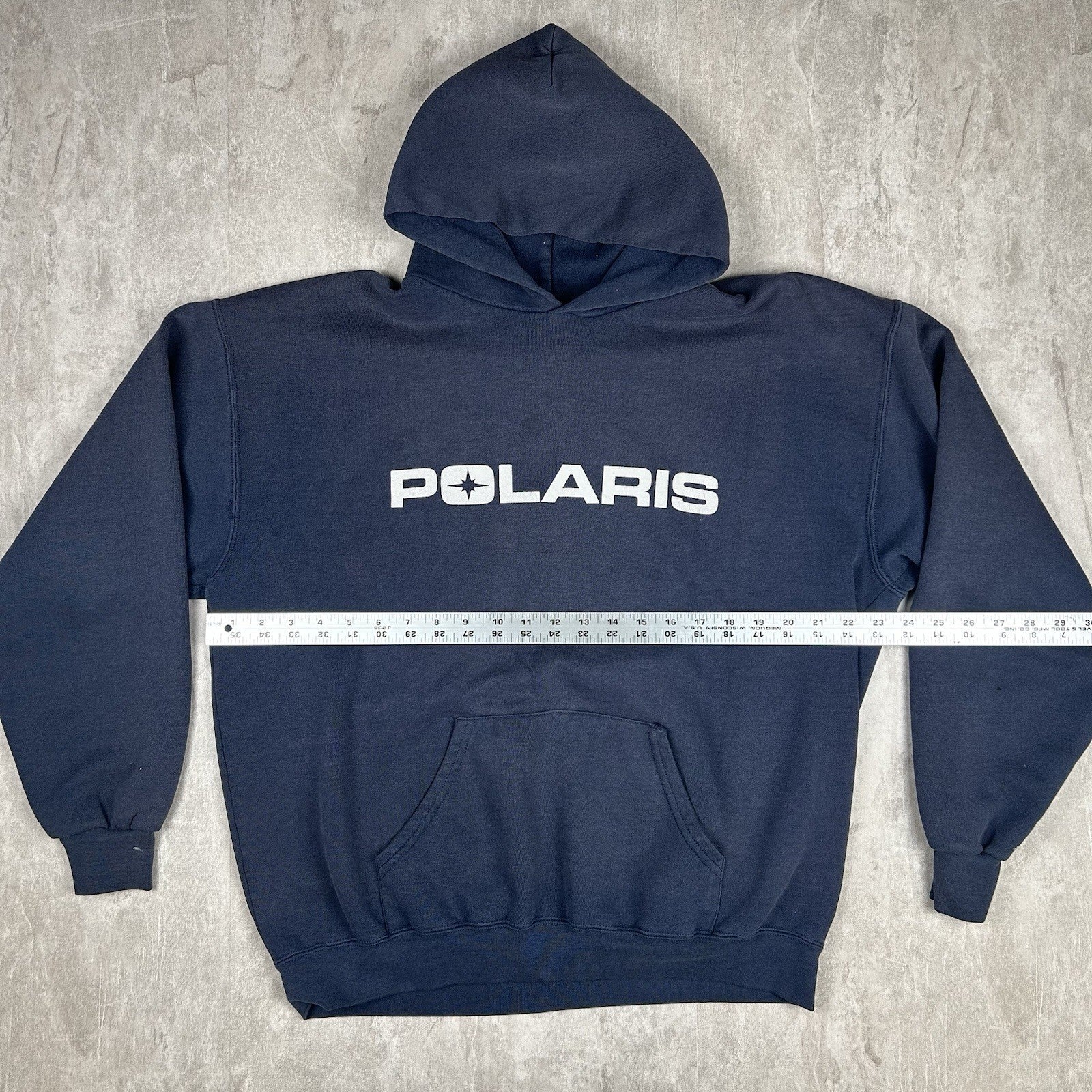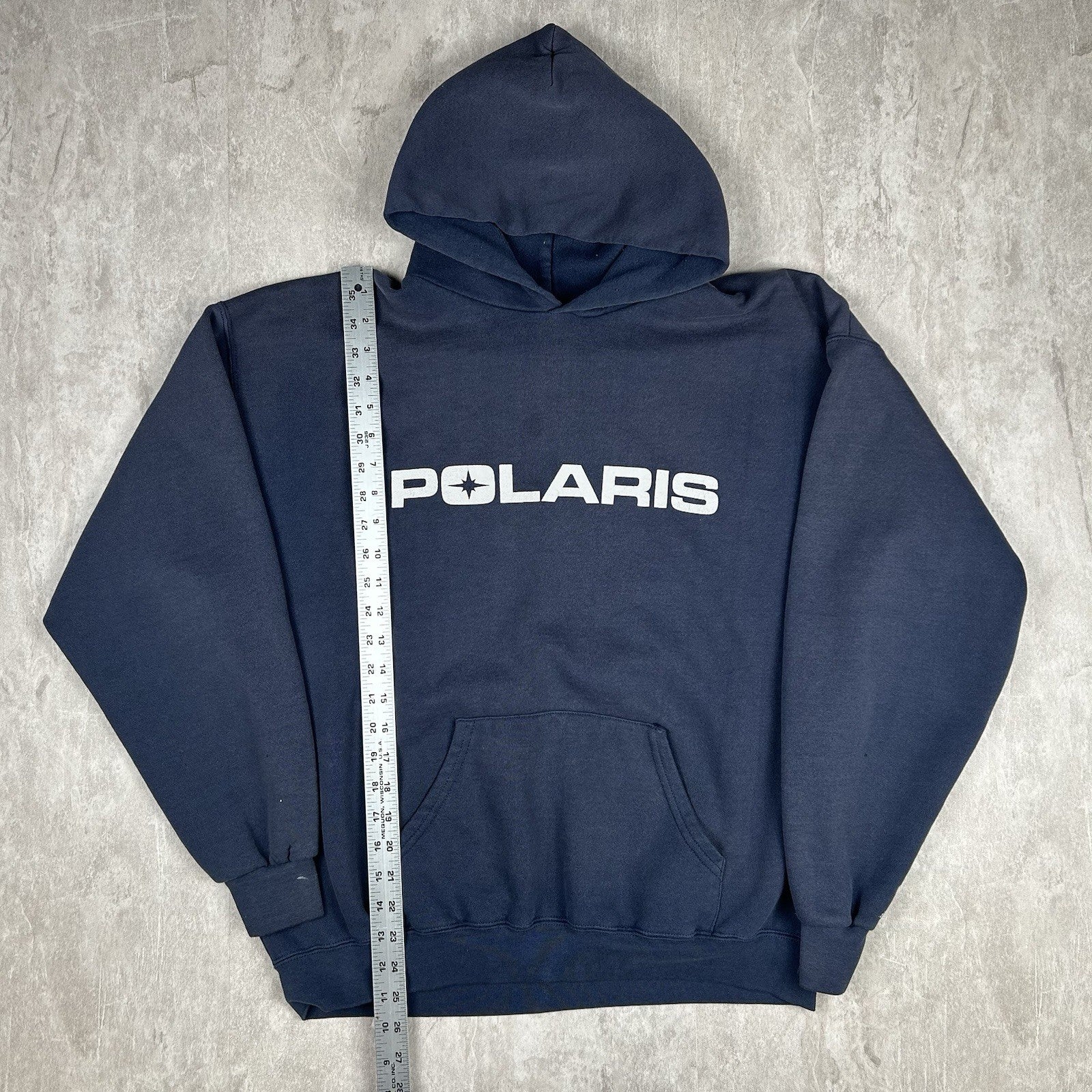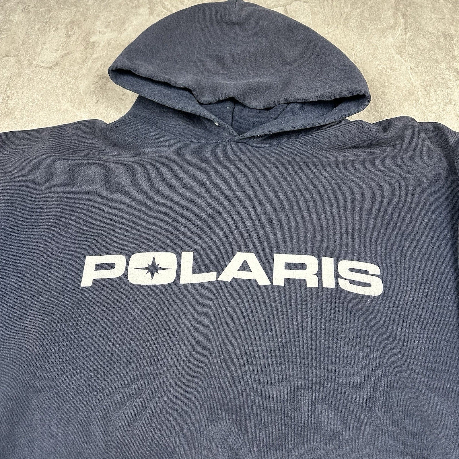 Vintage Polaris Hoodie Blue Sweatshirt Snowmobile Racing Men’s Size Unknown
