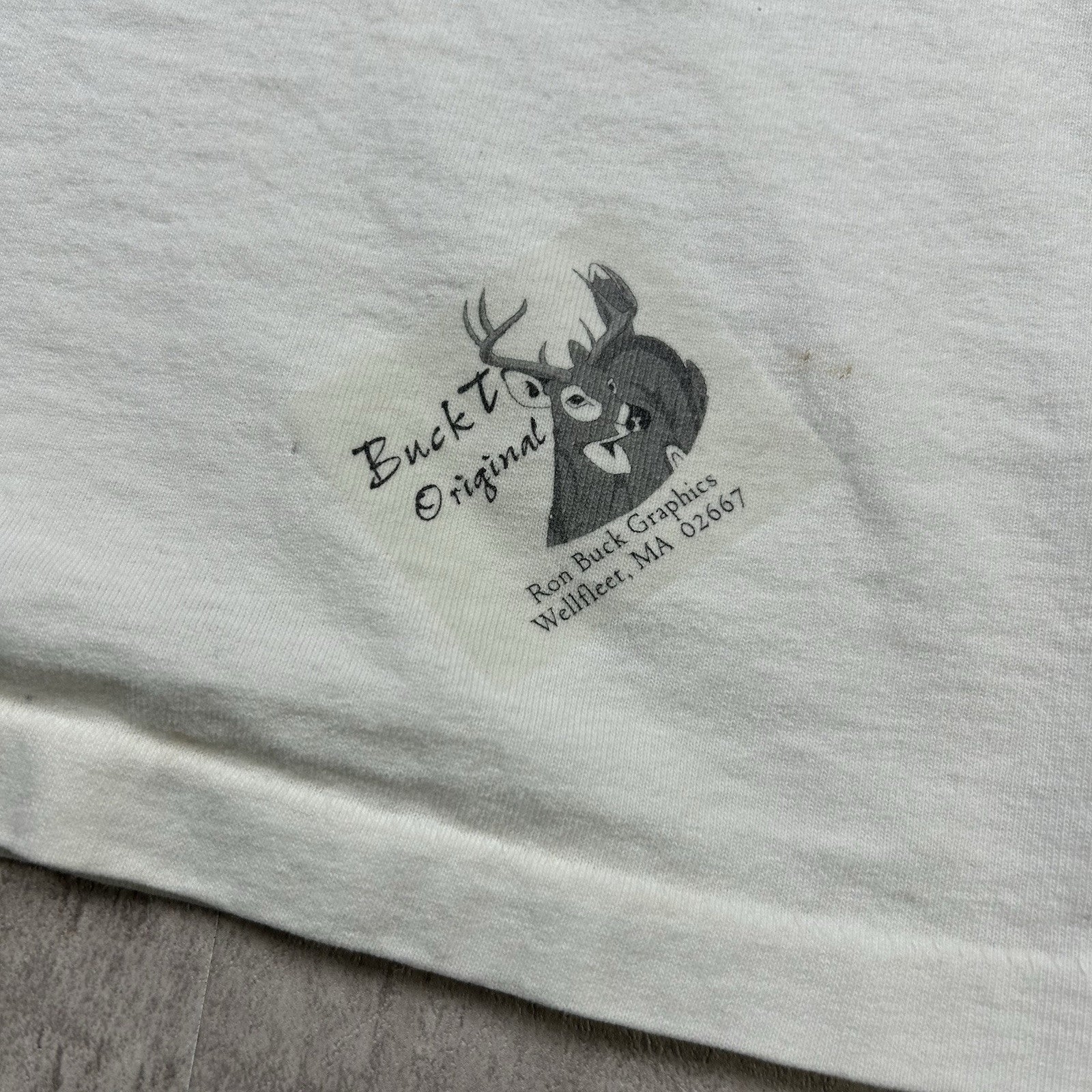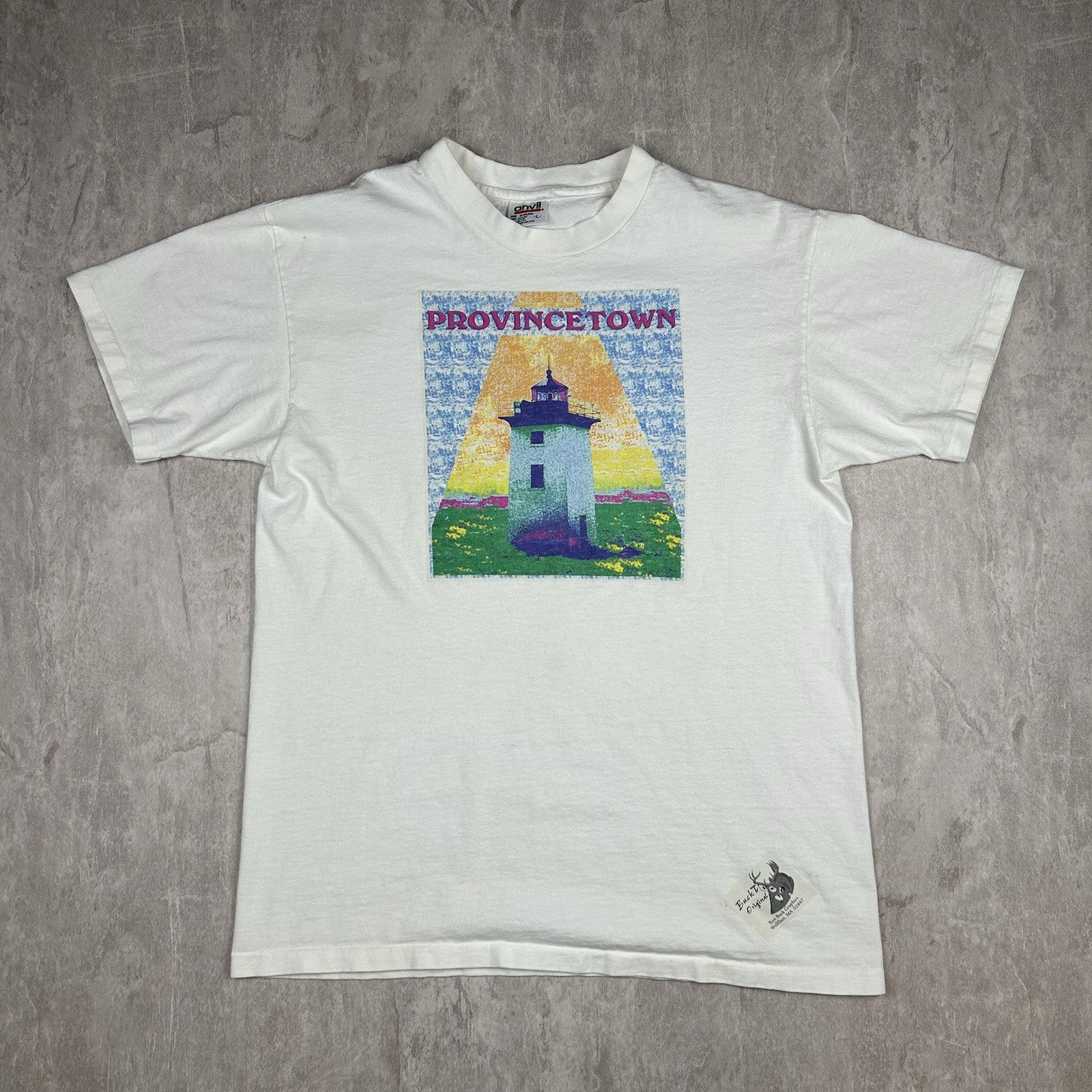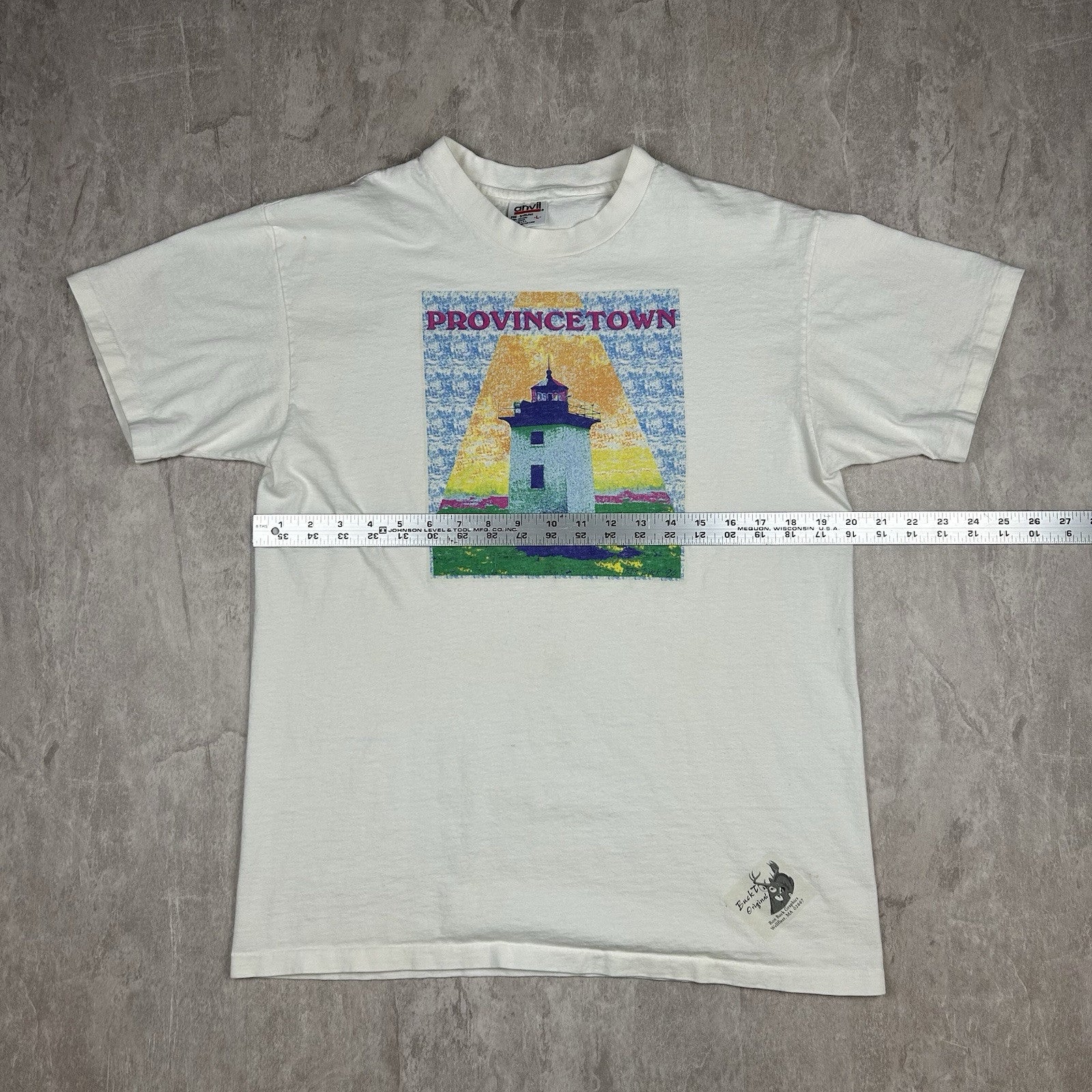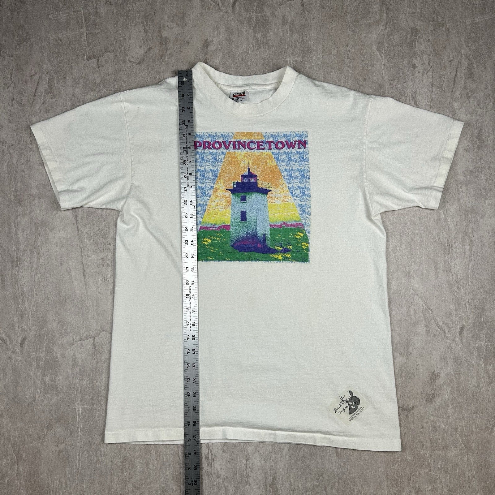 This vintage 1996 Provincetown, Massachusetts T-shirt by Ron Buck showcases classic coastal charm. Made in the USA, men's size L.