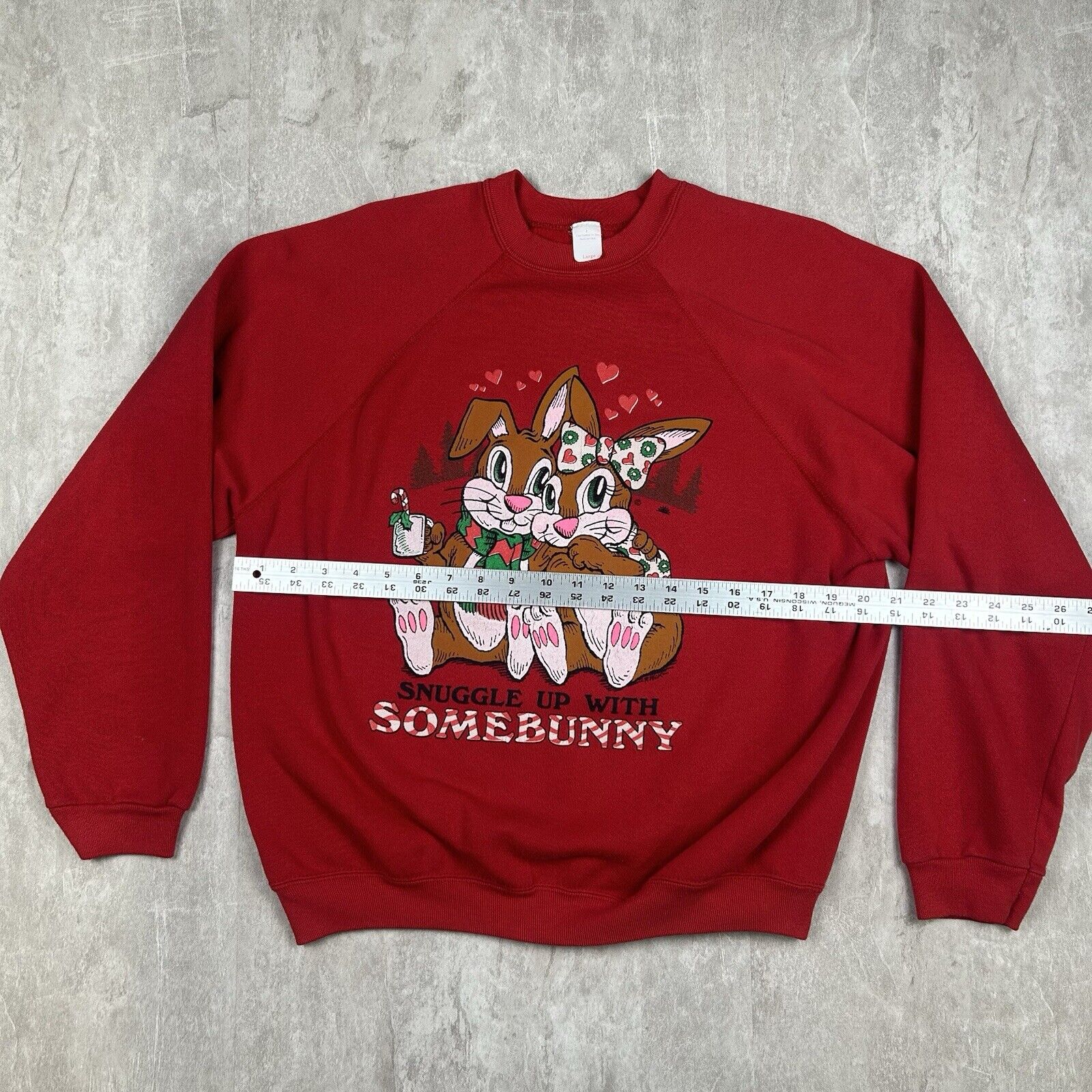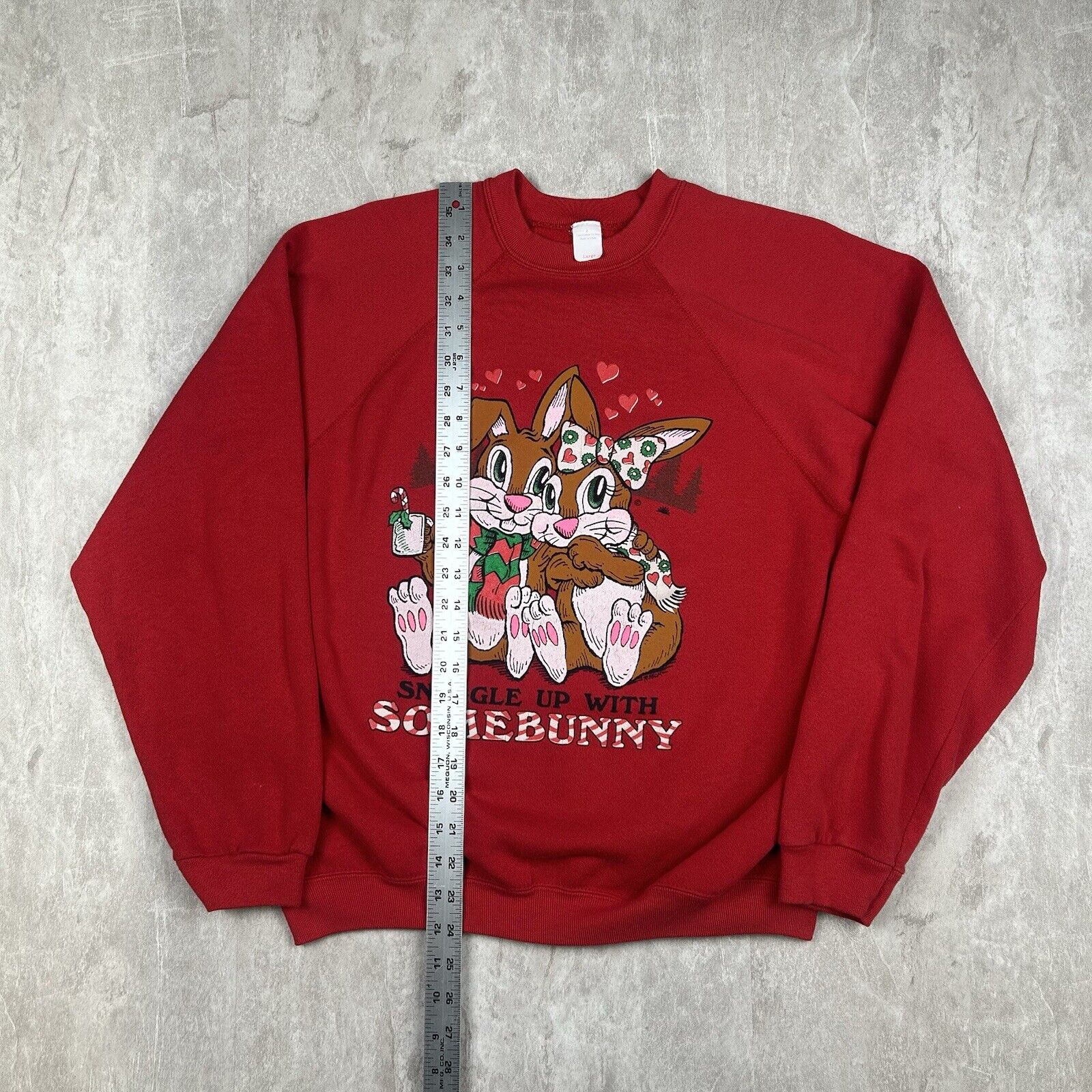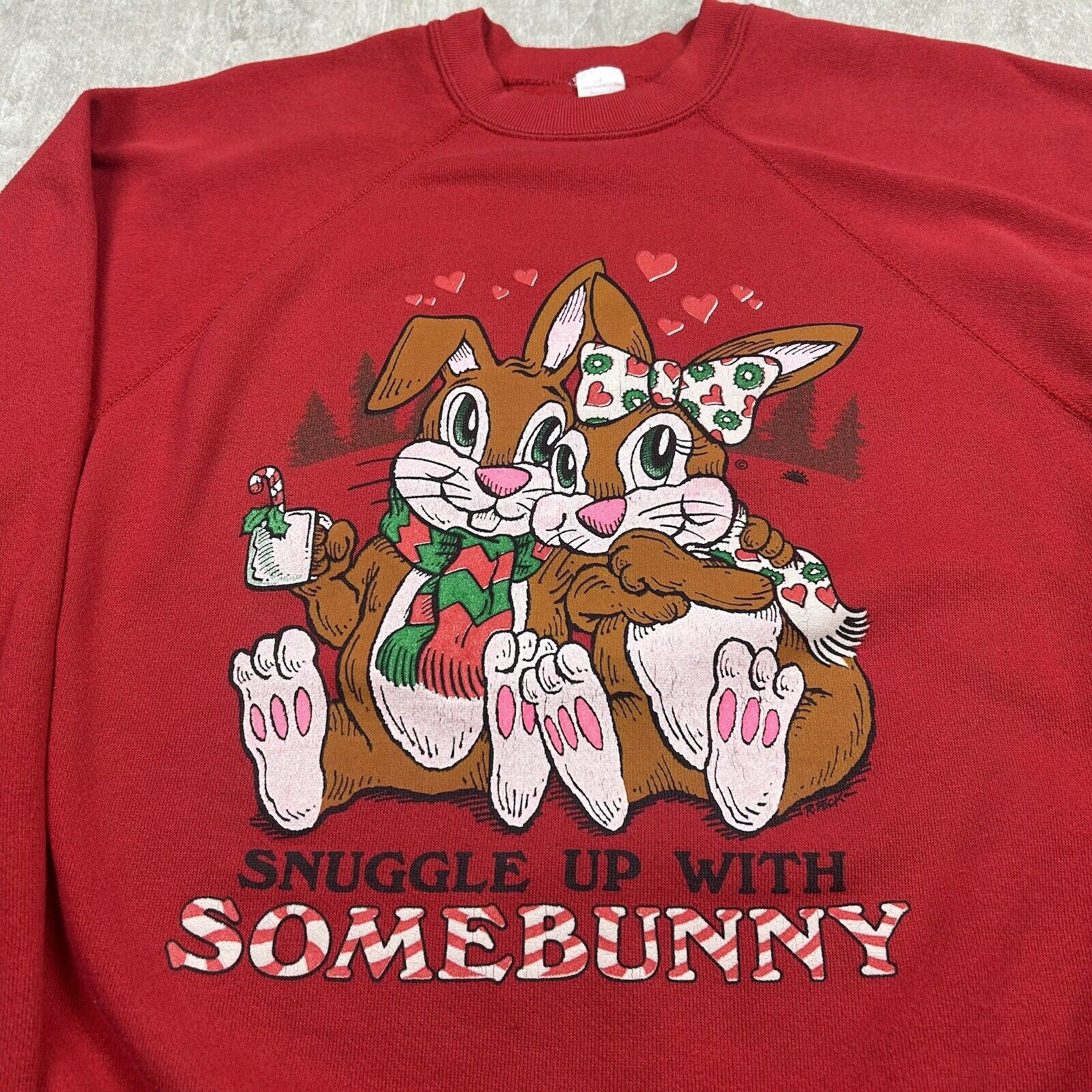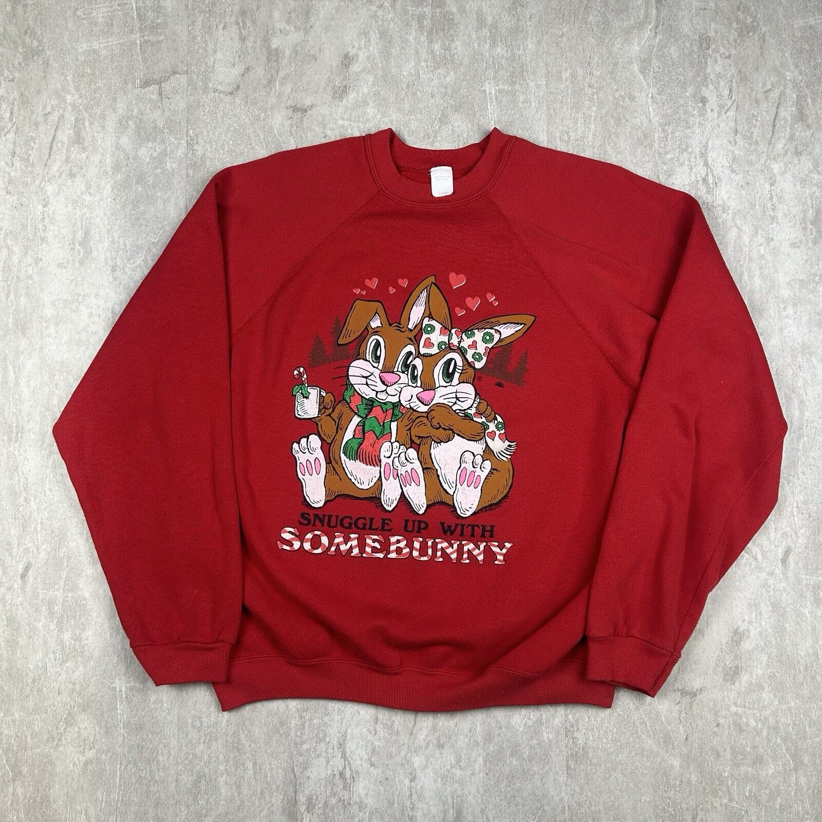 Vintage Snuggle Up With Somebunny Crewneck Sweatshirt Red USA Made Men's Size L
