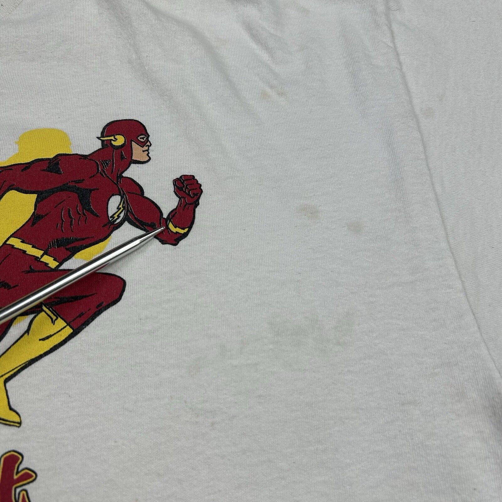Show off your superhero style with this Vintage The Flash DC Comics Graphic T-Shirt by Delta. In white, this men's size 2XL tee features a bold graphic of the iconic speedster, making it a perfect choice for any fan of The Flash or classic comic book style.