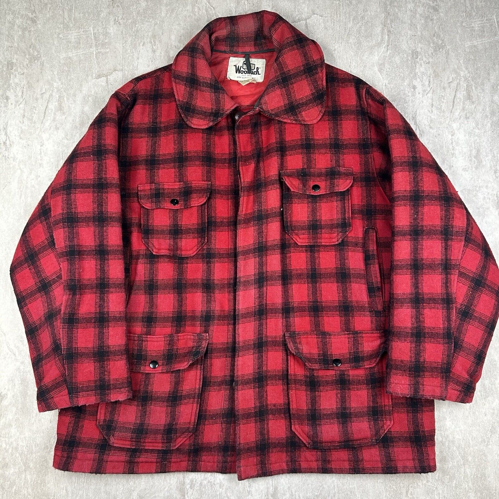 Vintage Woolrich Mackinaw Wool Red Buffalo Plaid Hunting Jacket Men’s Size 48