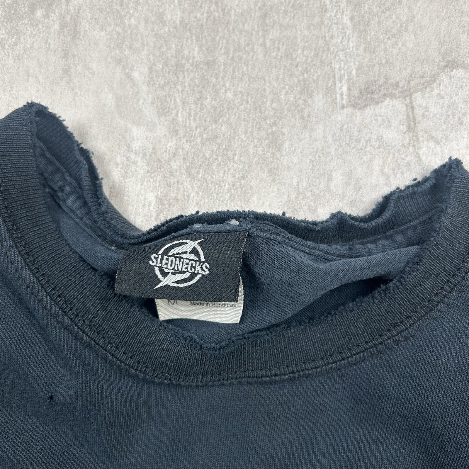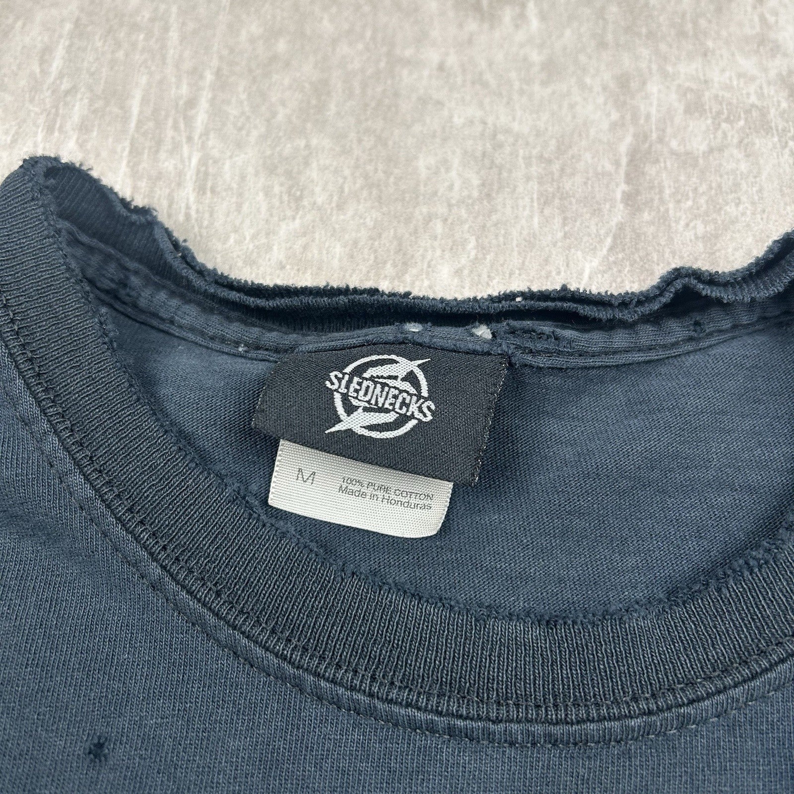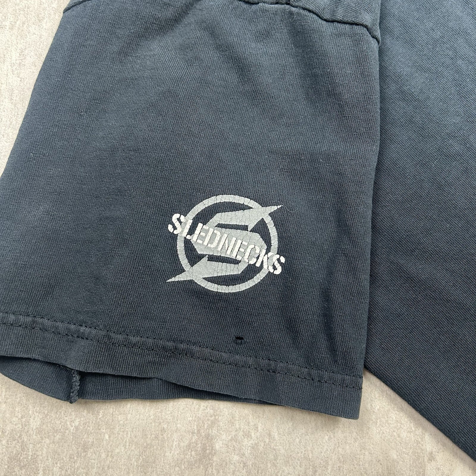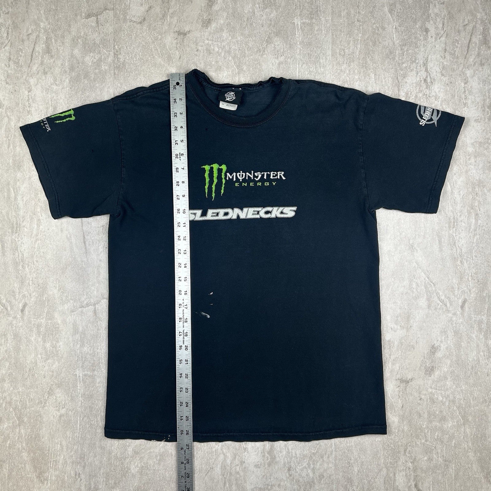 Vintage Y2K Slednecks T-shirt in black with bold Monster Energy graphics—an iconic nod to early 2000s snowmobile culture and extreme sports style. Men's size M.
