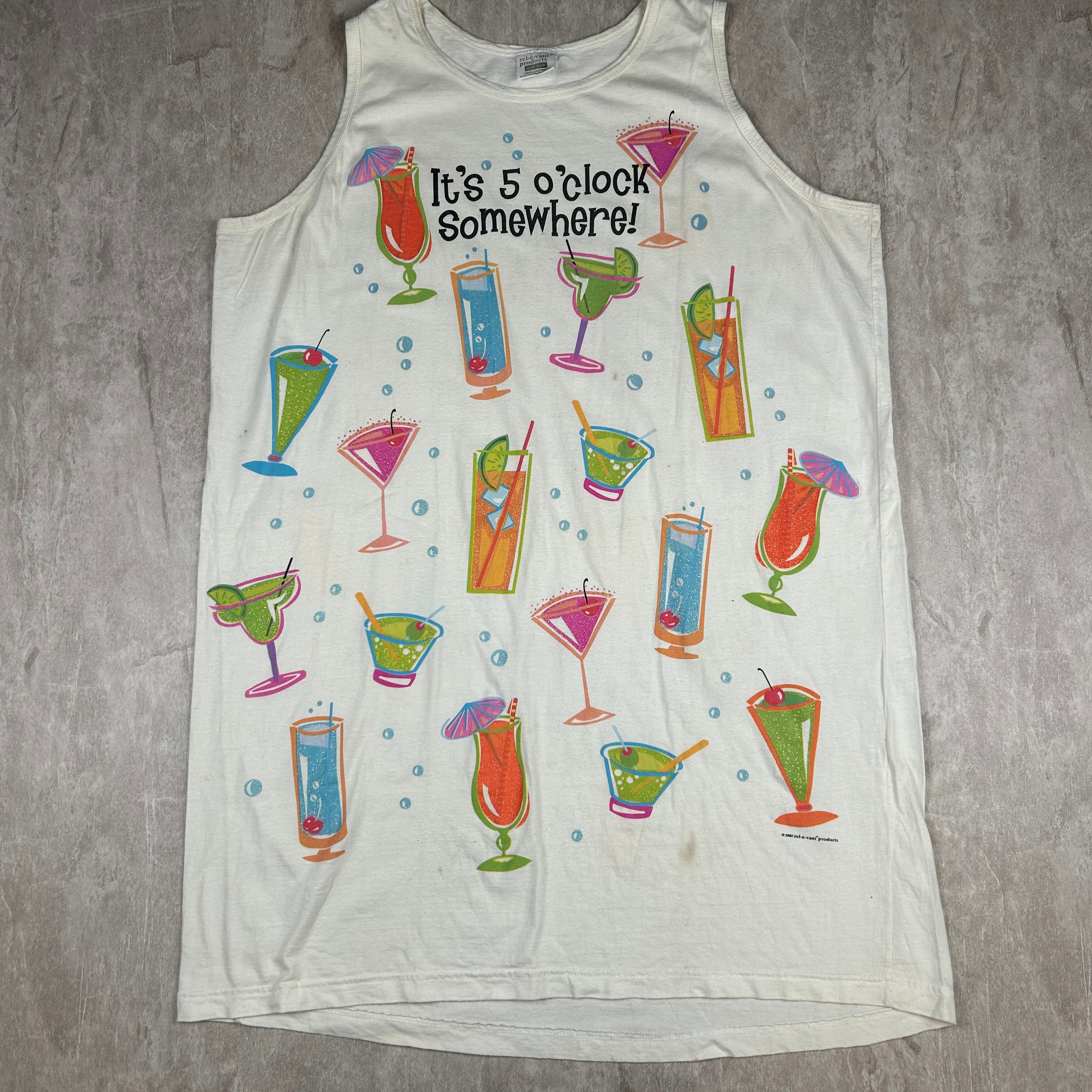 Vtg Rel-e-vant Products “It’s 5 O’ Clock Somewhere” Tank Top White Men’s Size OS