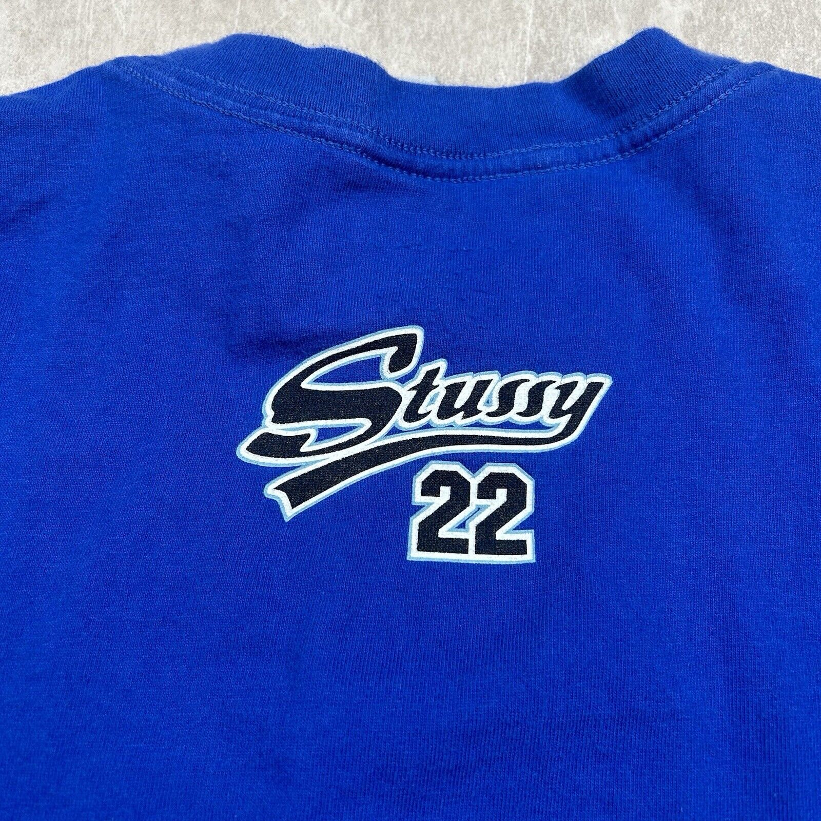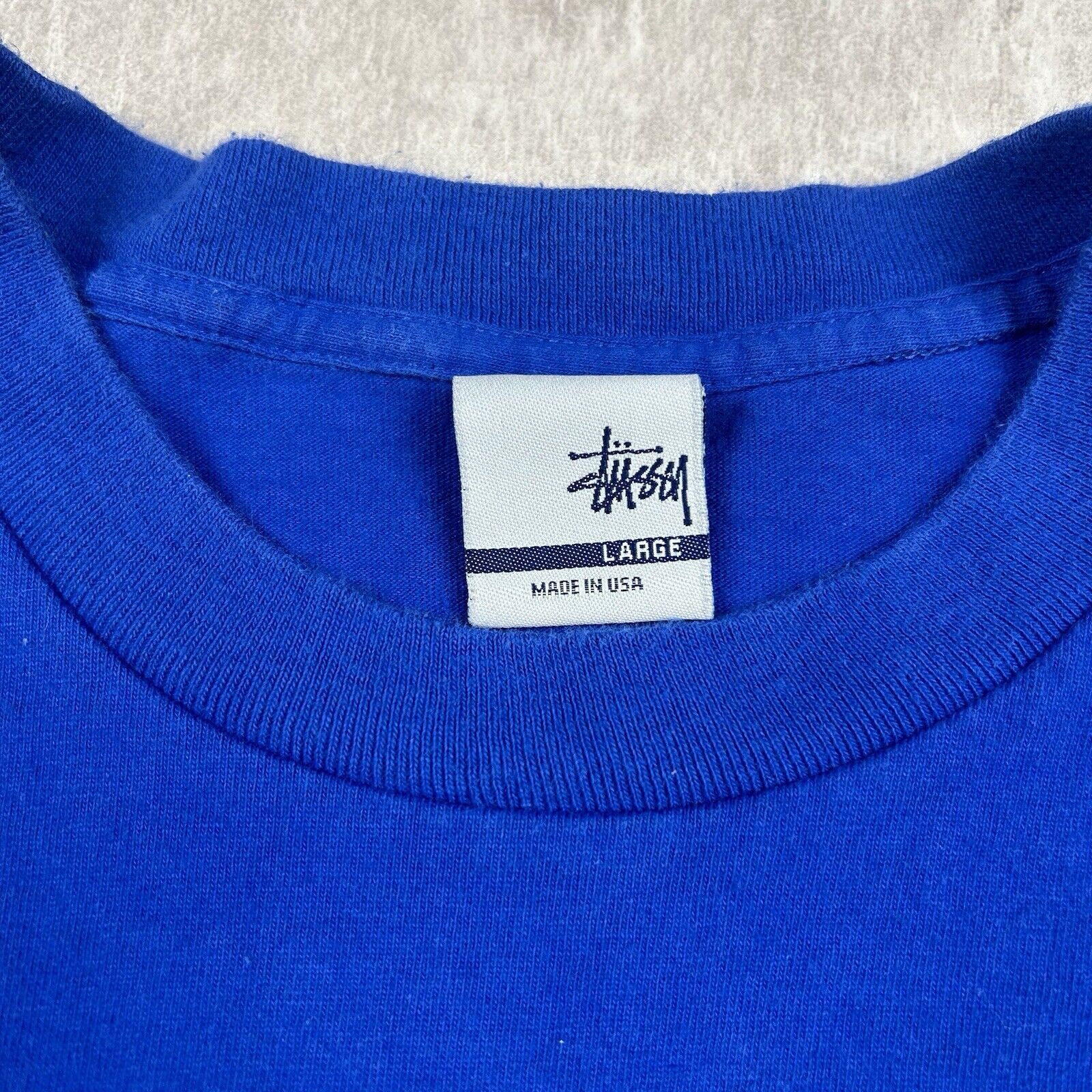 Capture iconic streetwear style with this Vtg 00s Stussy New York Long Sleeve T-Shirt. Made in the USA, this men's size L single stitch tee combines the timeless Stussy logo with a comfortable, classic fit, making it a must-have for streetwear enthusiasts and vintage collectors alike.