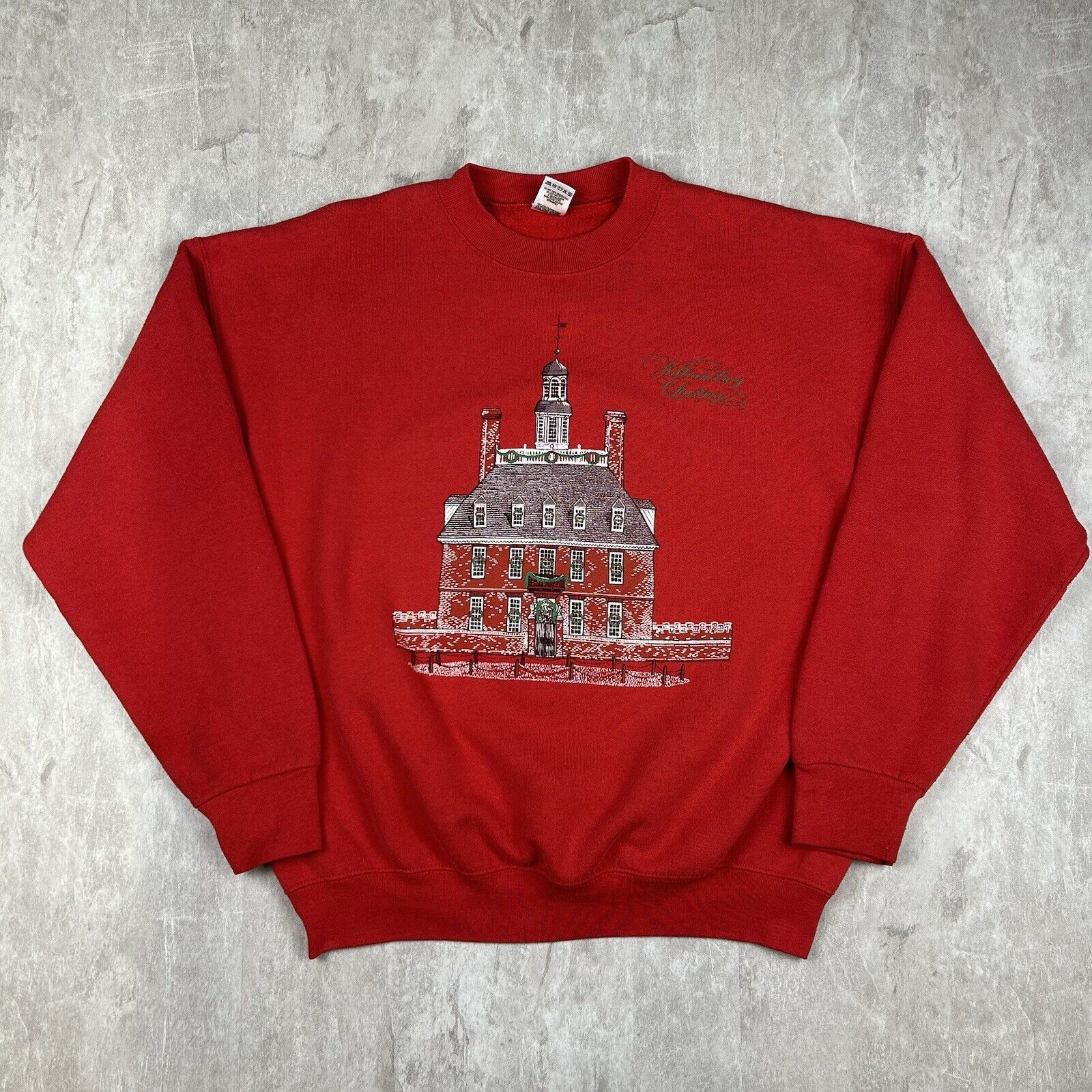 Vtg 1995 Colonial Williamsburg Christmas Red Crewneck Sweatshirt Men’s Size L