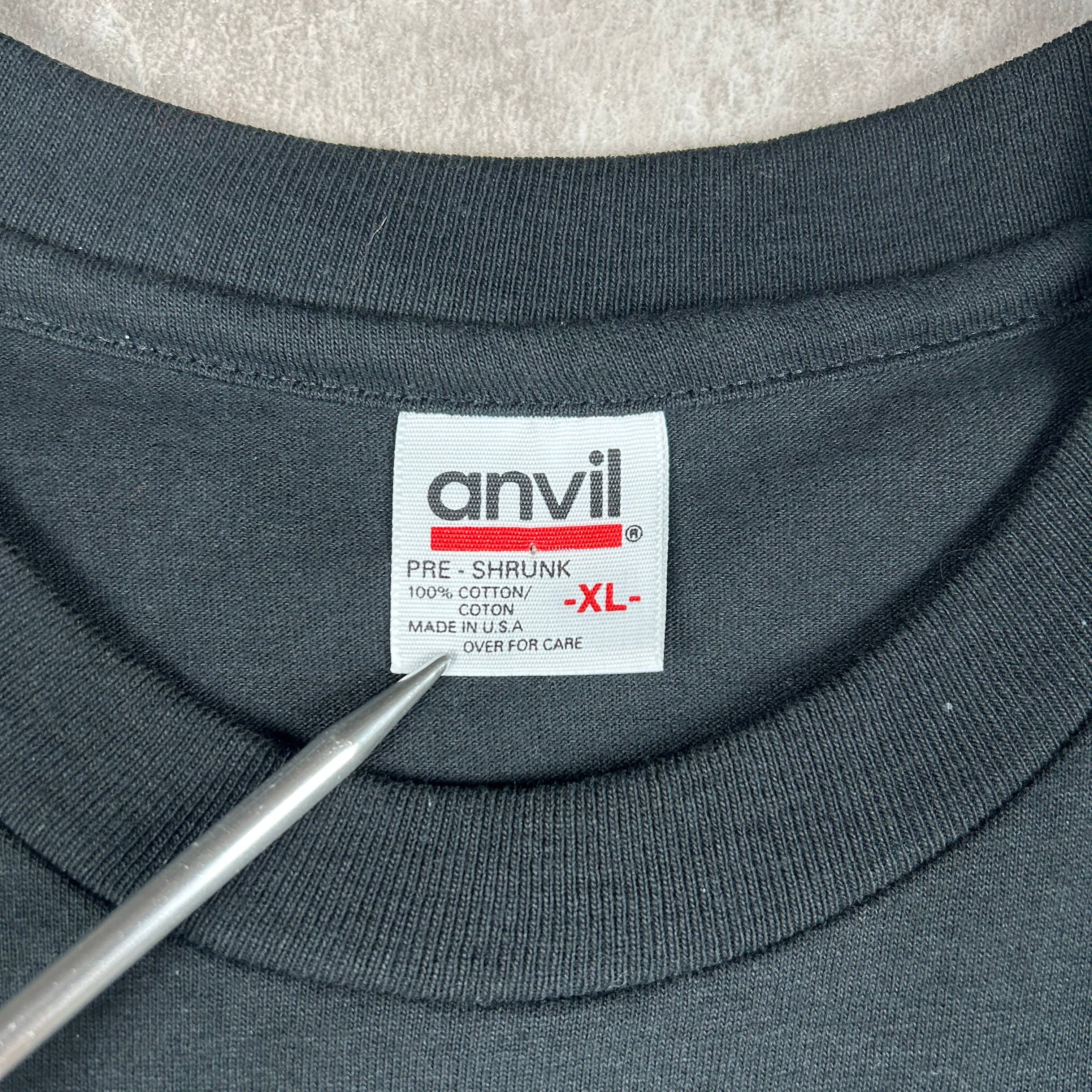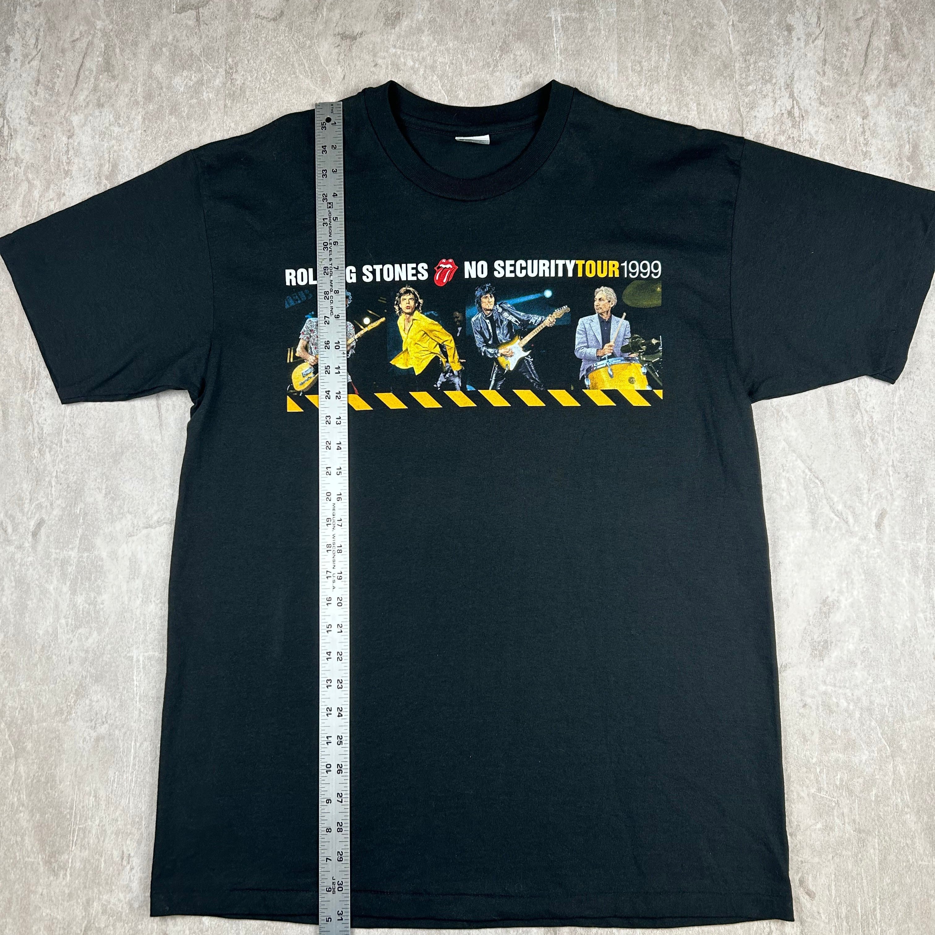 Relive rock history with our Vintage 1999 Rolling Stones No Security Tour T-Shirt. This black Anvil tee in men's size XL features classic tour graphics, making it a perfect addition for any Rolling Stones fan or vintage concert tee collector.