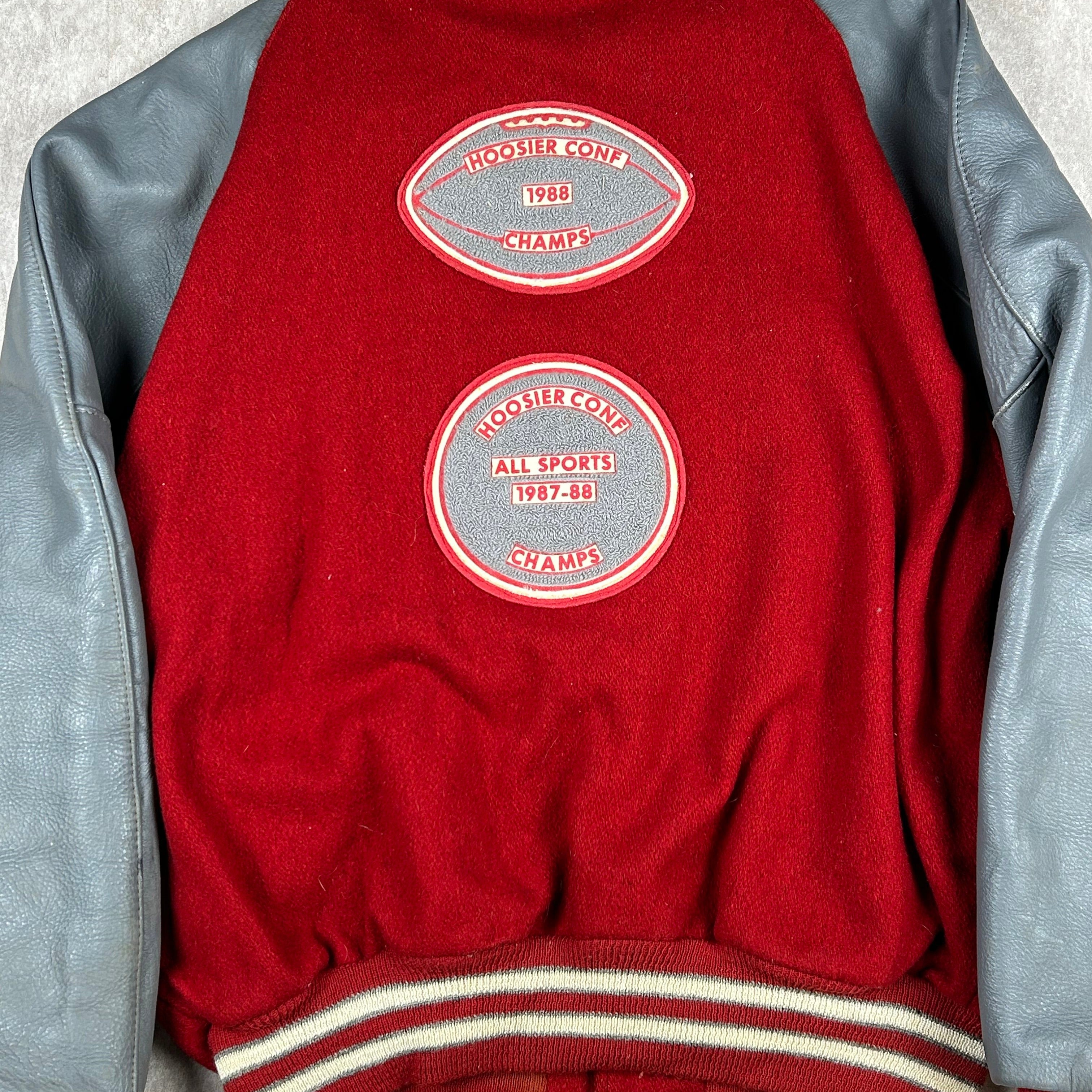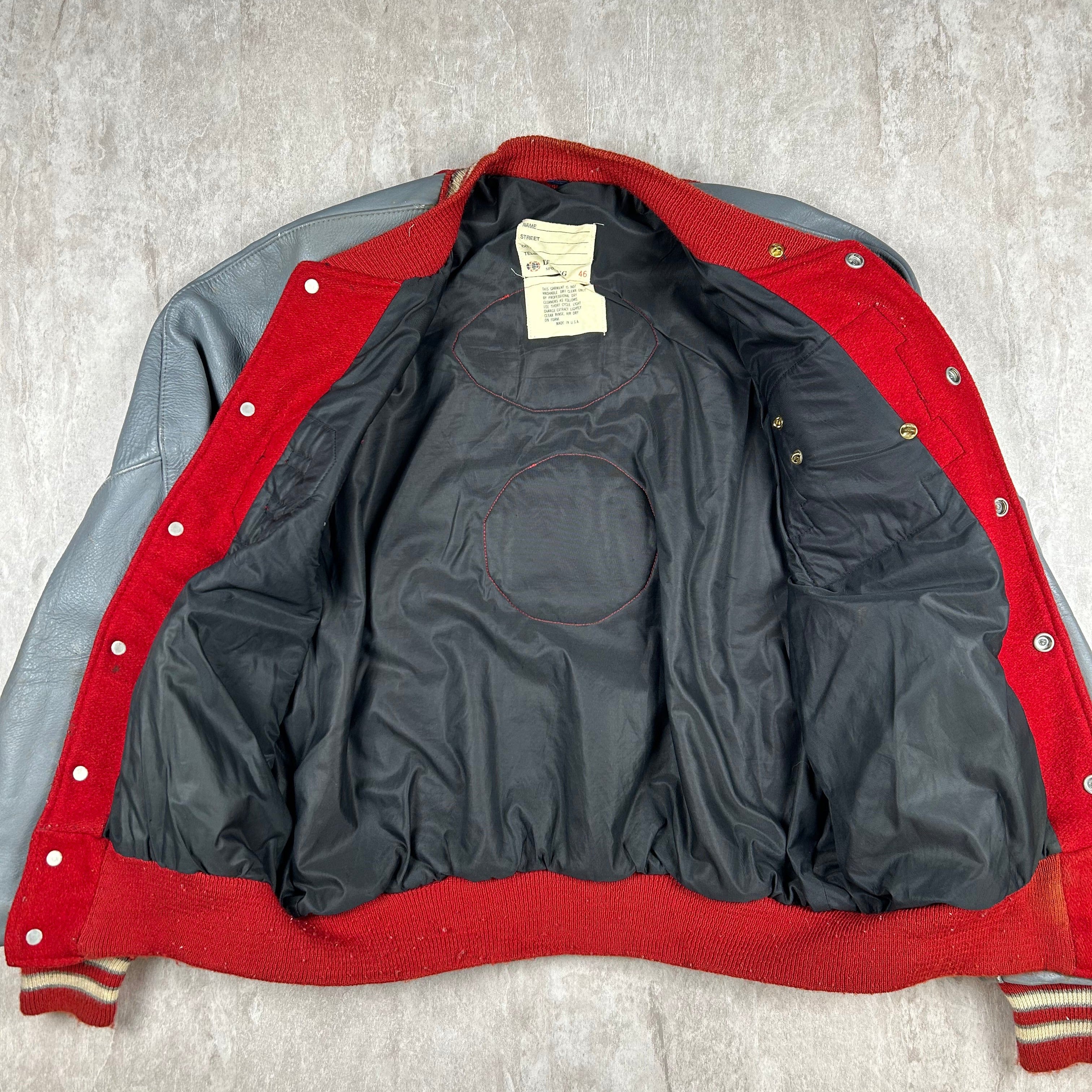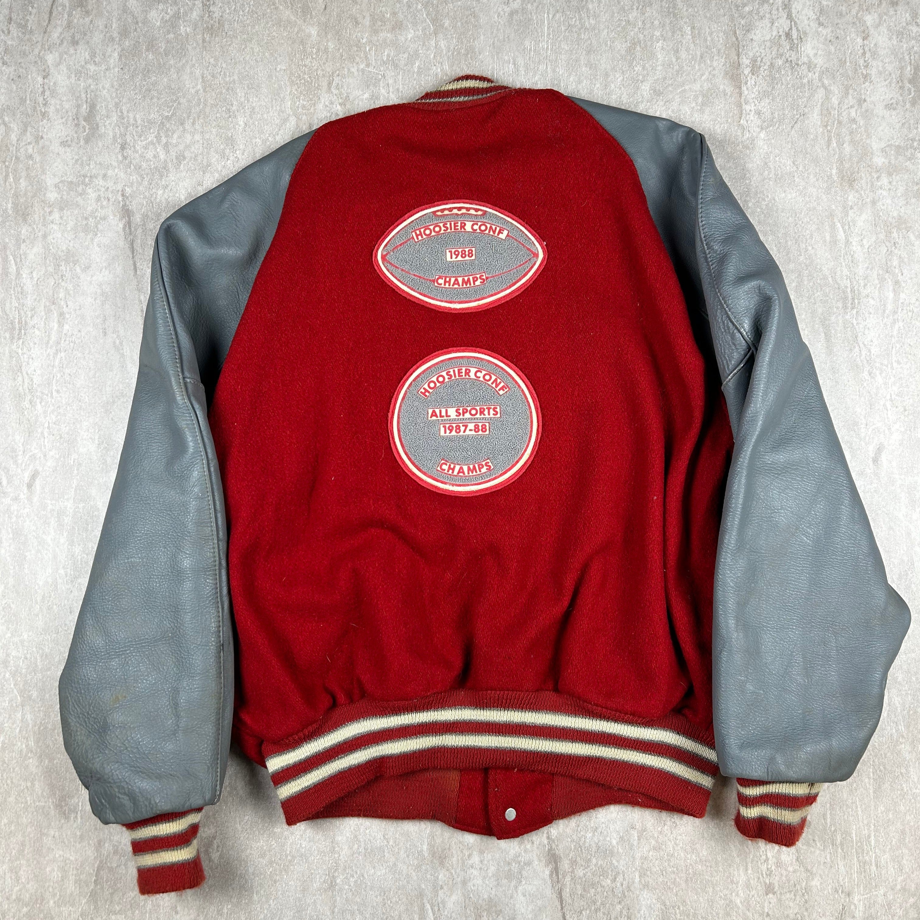 VTG 80s High School Letter Jacket Men’s 46 Red Leather Varsity Sports Bomber USA