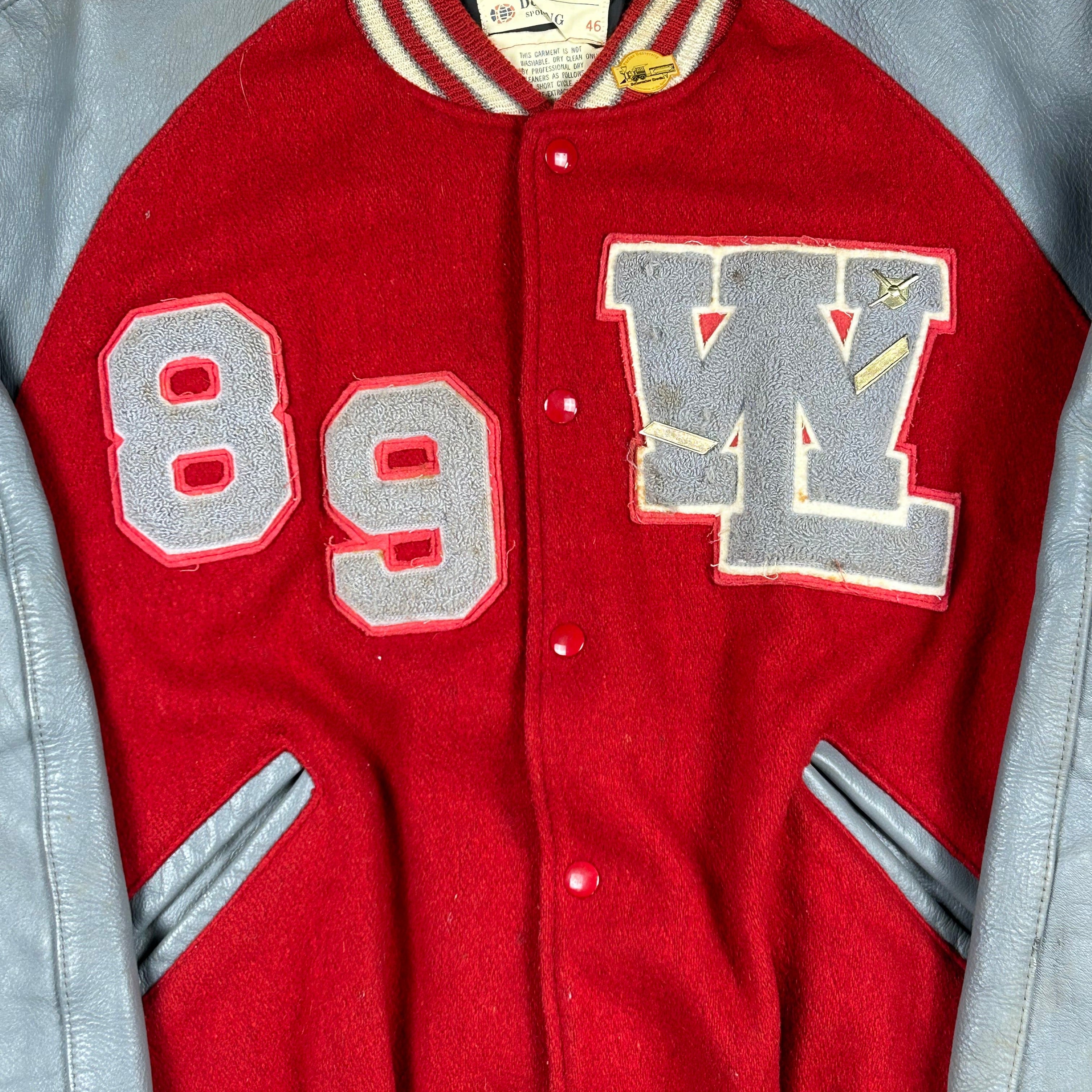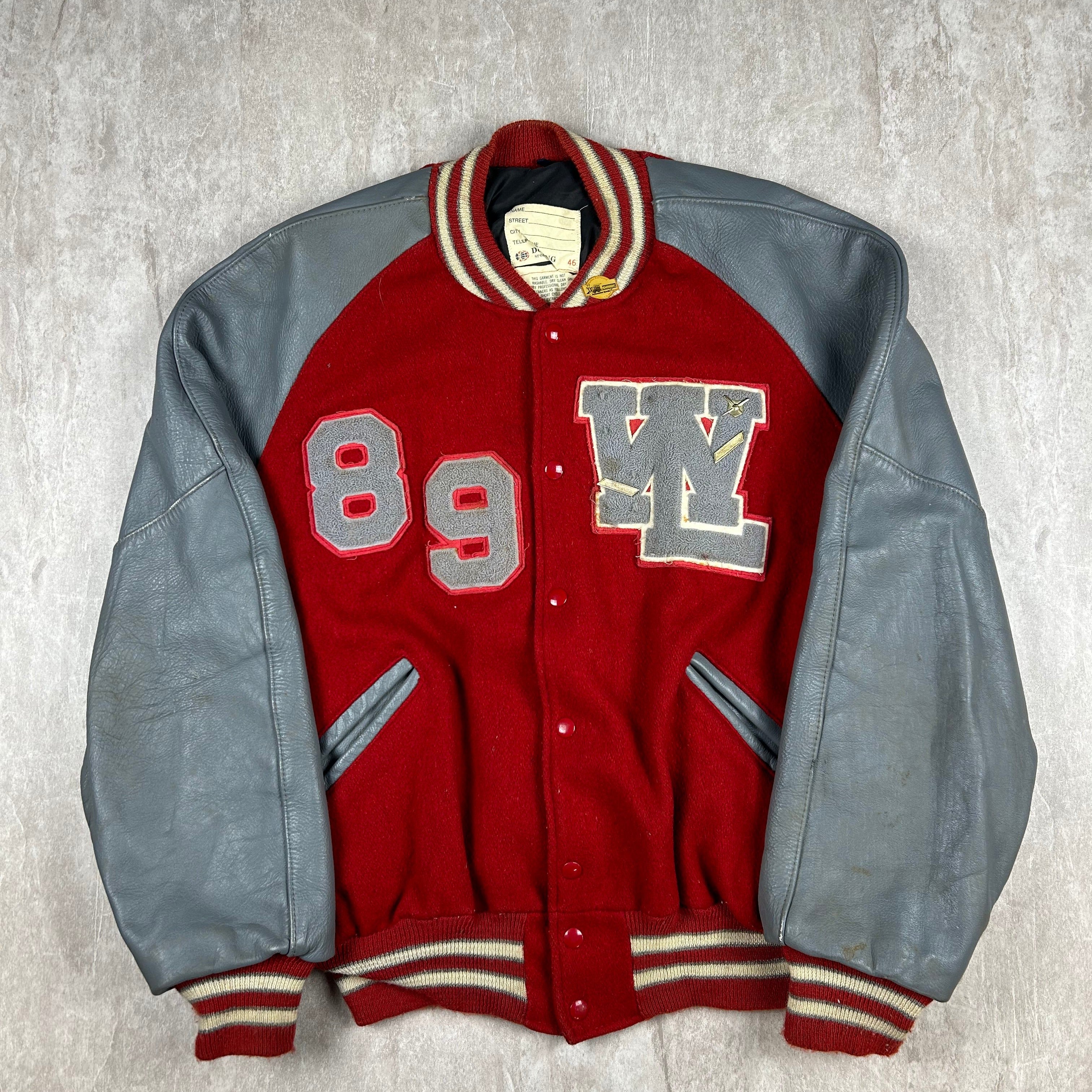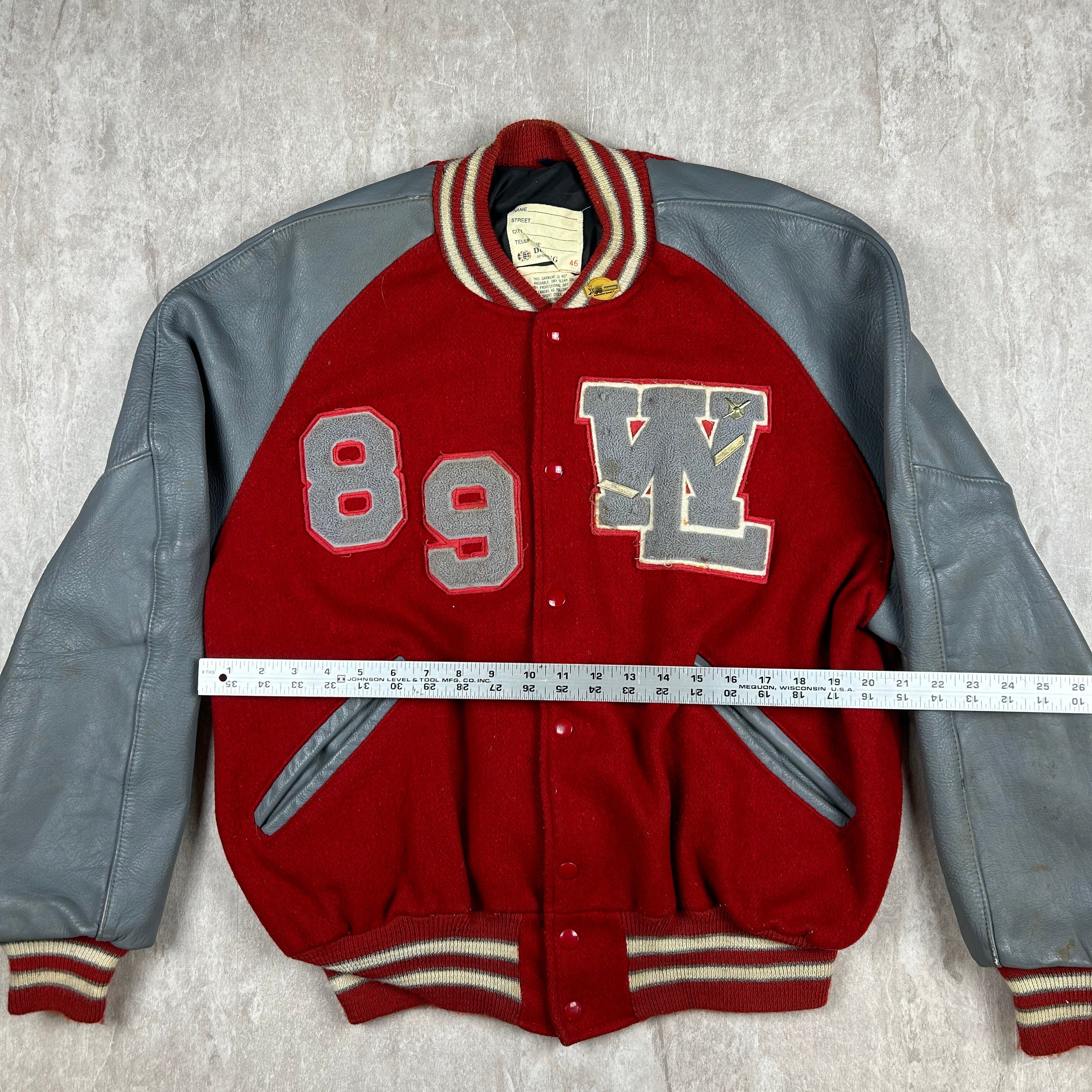 VTG 80s High School Letter Jacket Men’s 46 Red Leather Varsity Sports Bomber USA