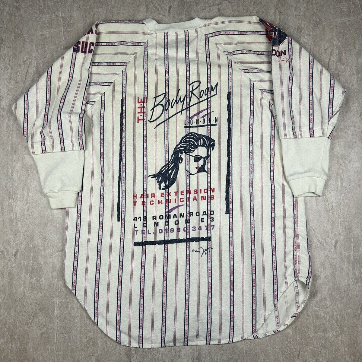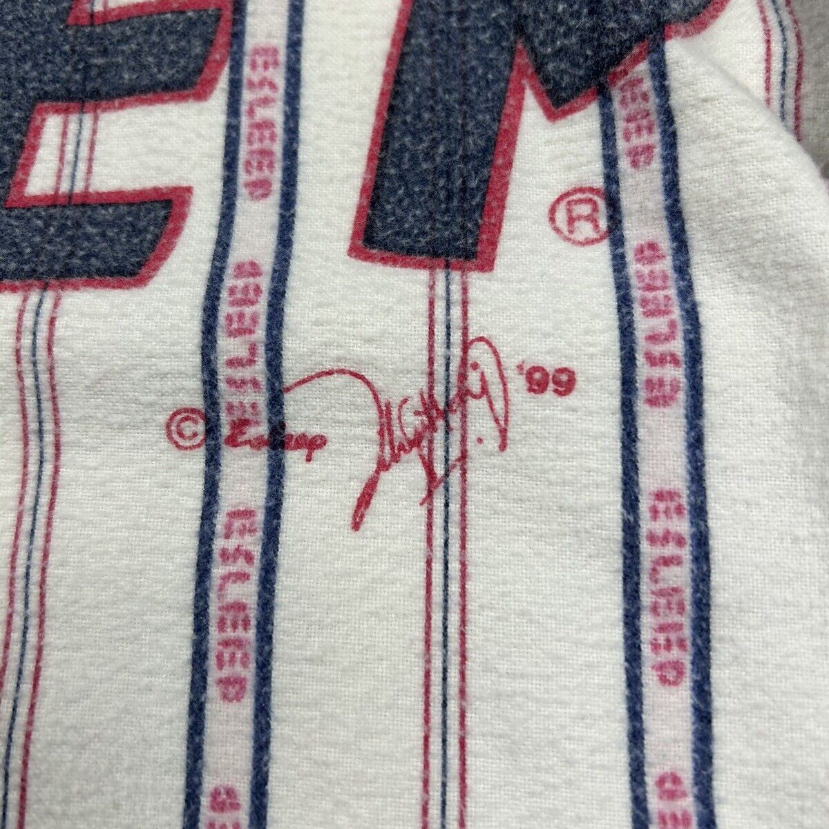 Slip into retro comfort with this Vintage 90s Esleep Jersey Shirt Pajamas. Featuring fun 1999 graphics and a button-up design, this women's one-size-fits-all (OSFA) pajama top blends nostalgic style with cozy wearability. Perfect for lounging or as a quirky sleepwear statement, this piece is a charming throwback to late 90s fashion.