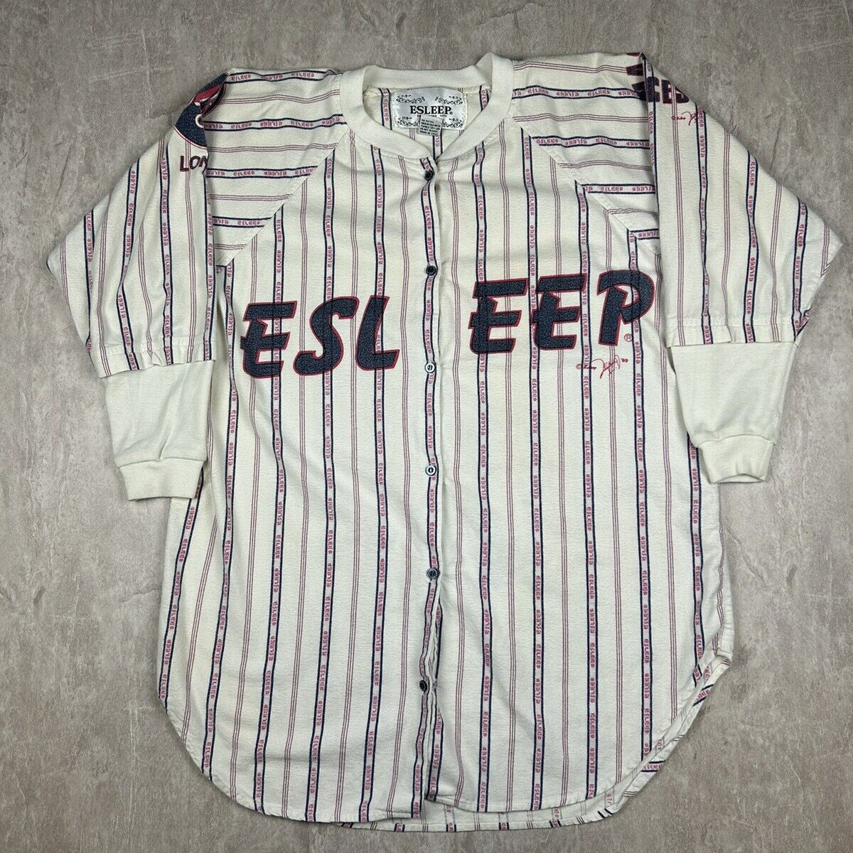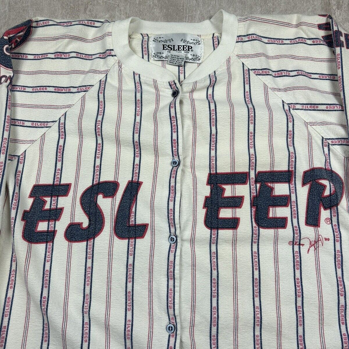 Vtg 90s Esleep Jersey Shirt Pajamas 1999 Retro Graphics Button Women’s Size OSFA