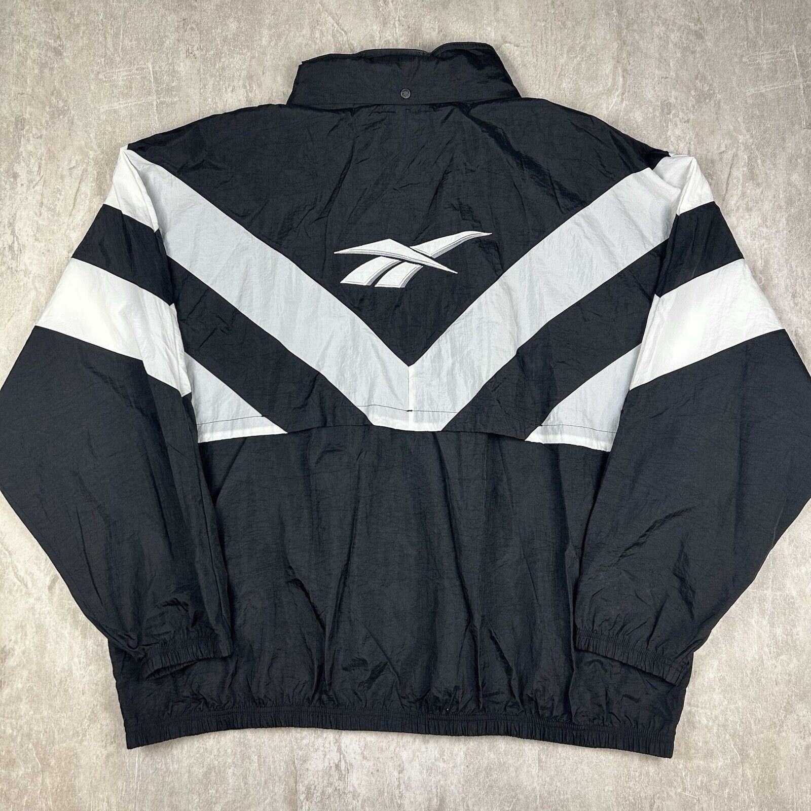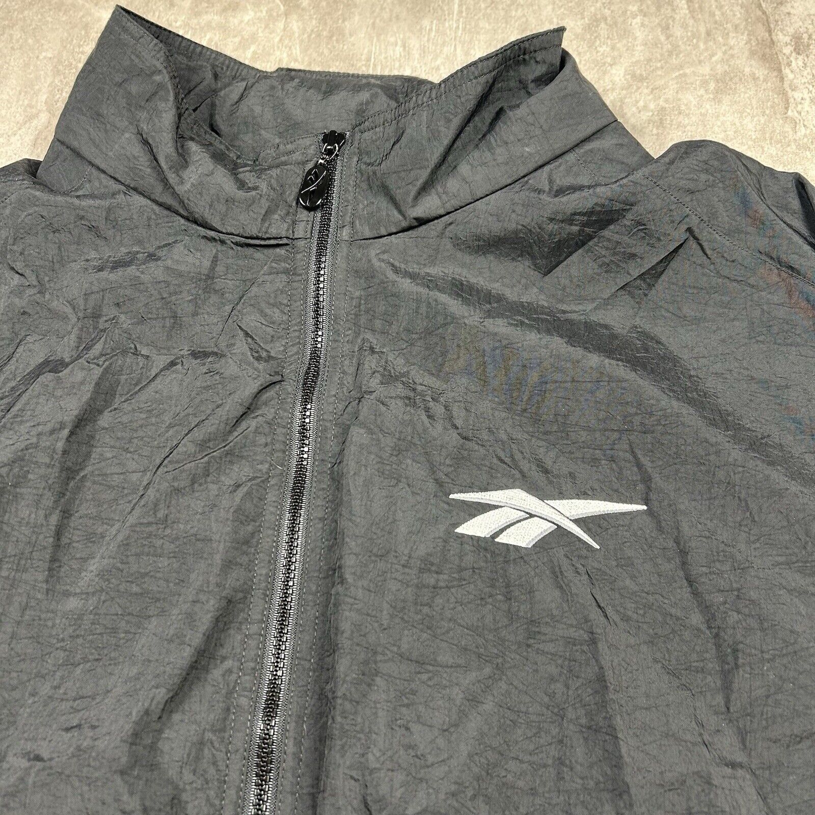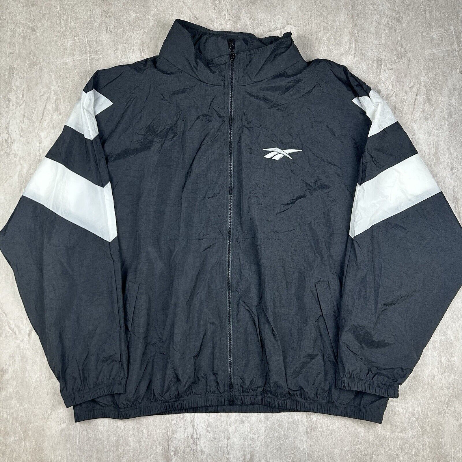 Vtg 90s Reebok Black Zip Up Windbreaker Embroidered Jacket Men’s Size 3XL