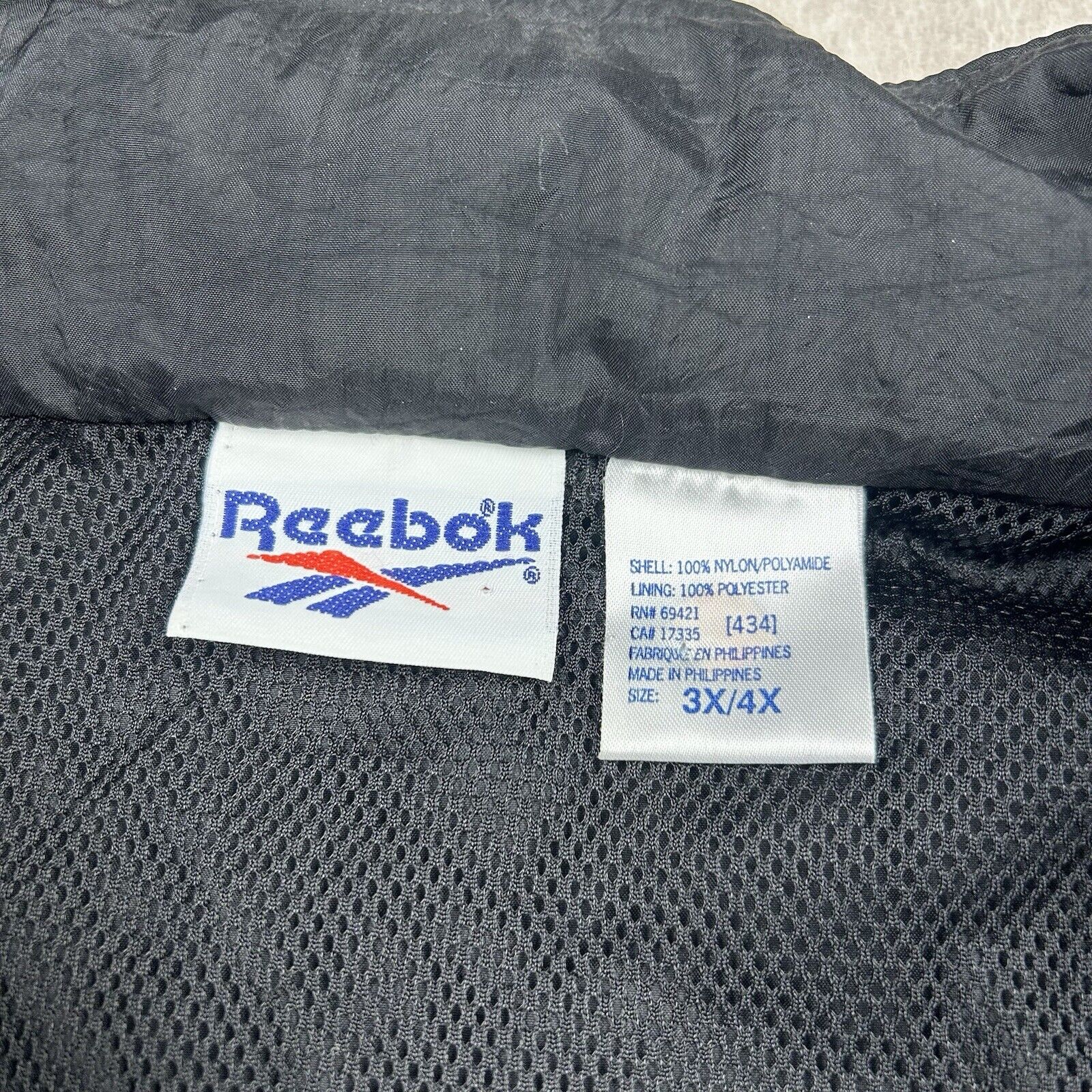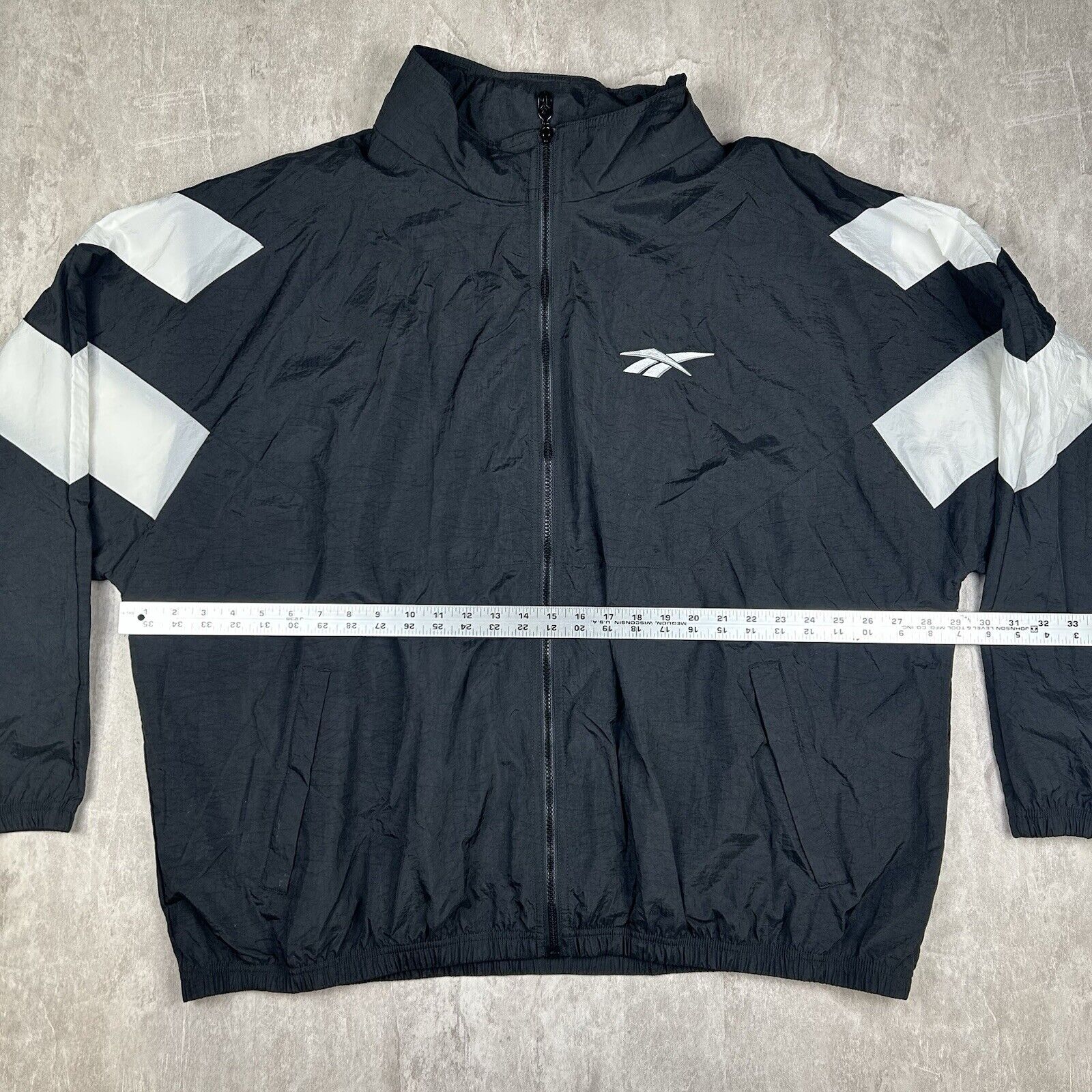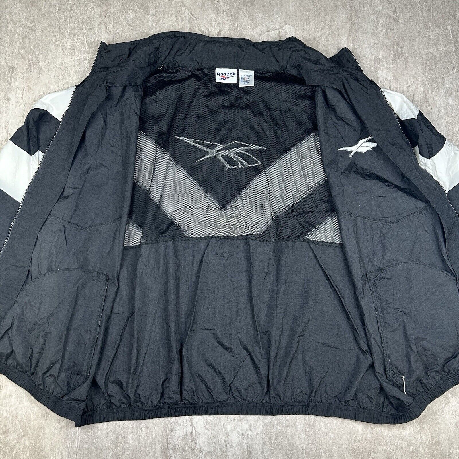 Vtg 90s Reebok Black Zip Up Windbreaker Embroidered Jacket Men’s Size 3XL