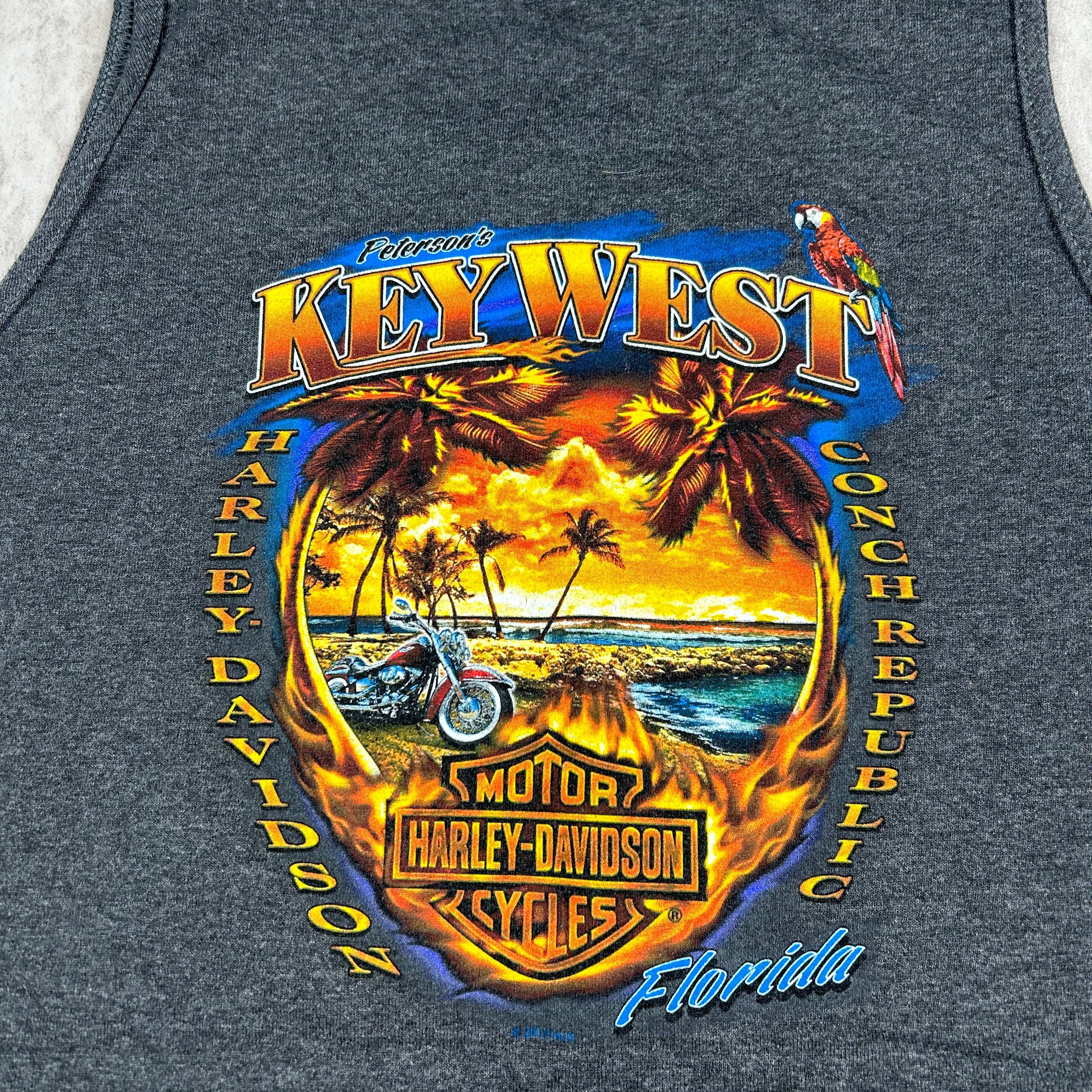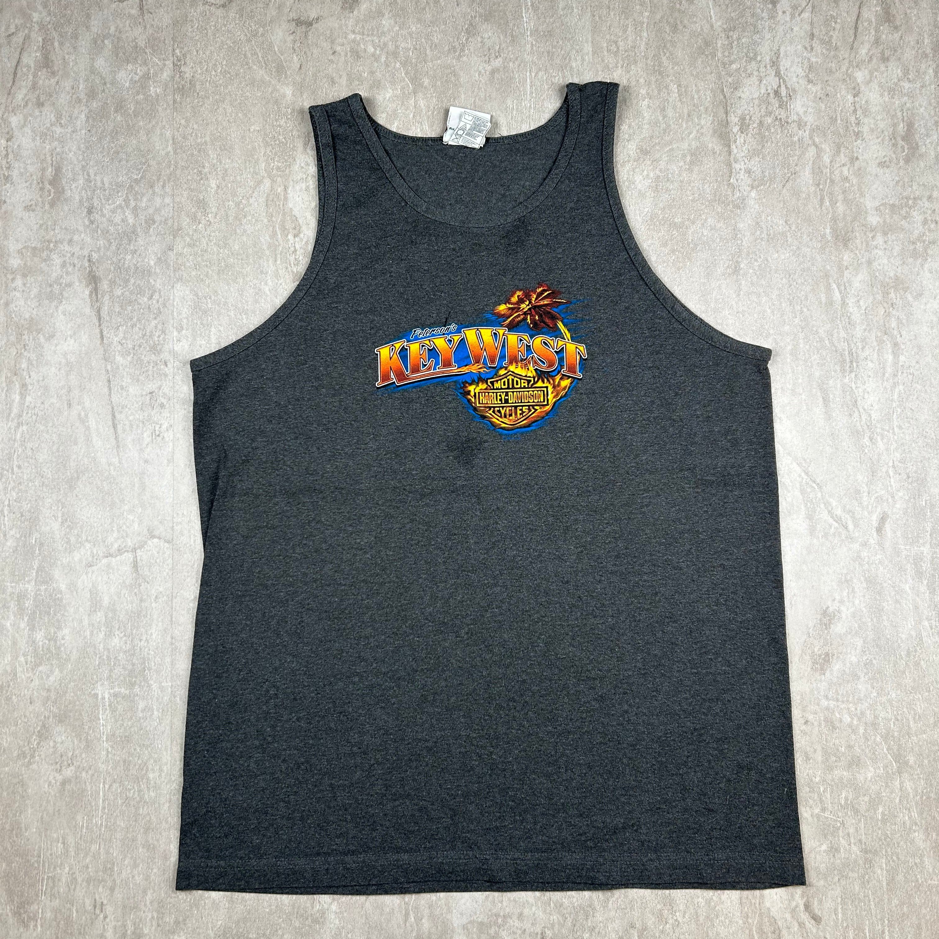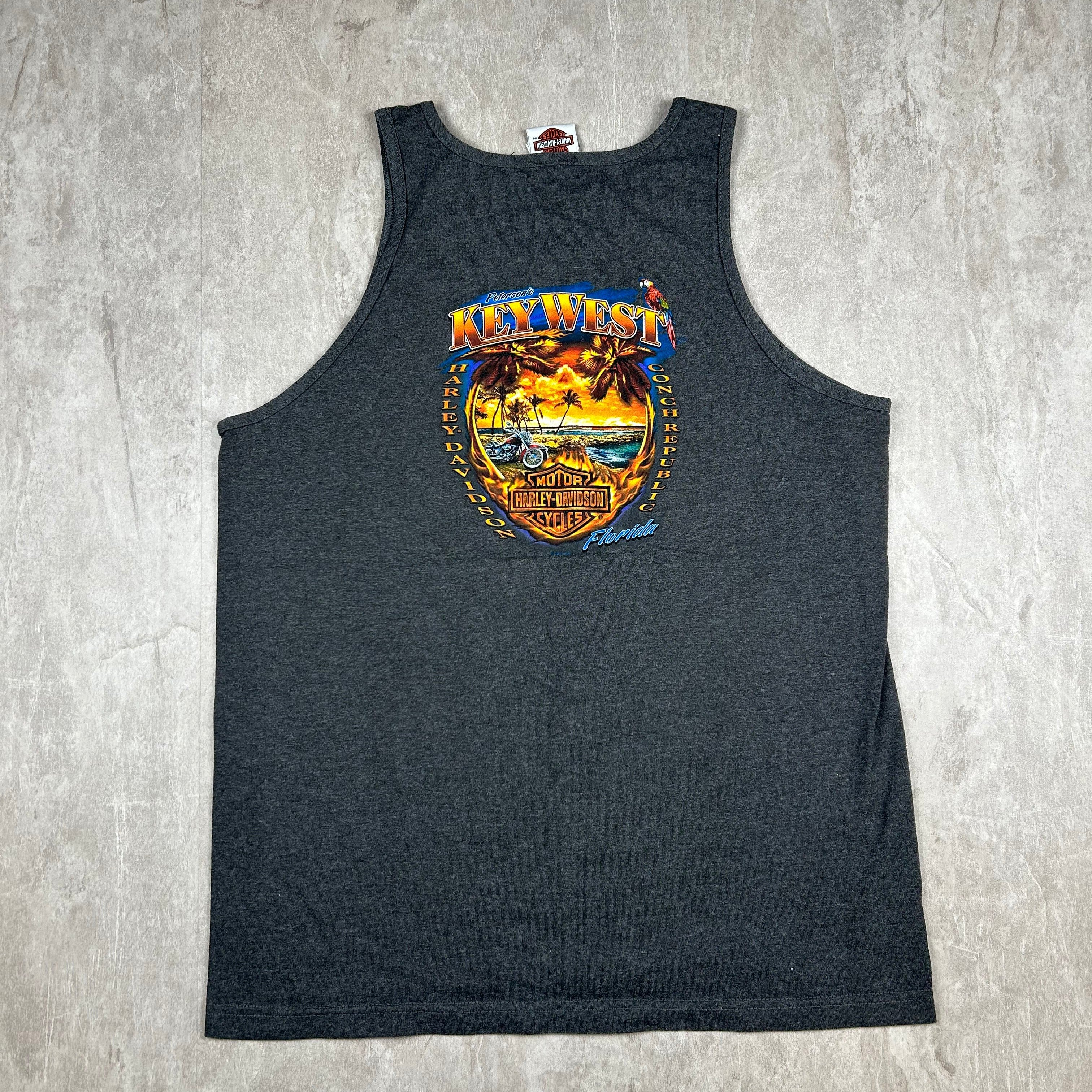 Vtg Harley Davidson Tank Top Gray Key West Florida Double Sided Men’s Size L