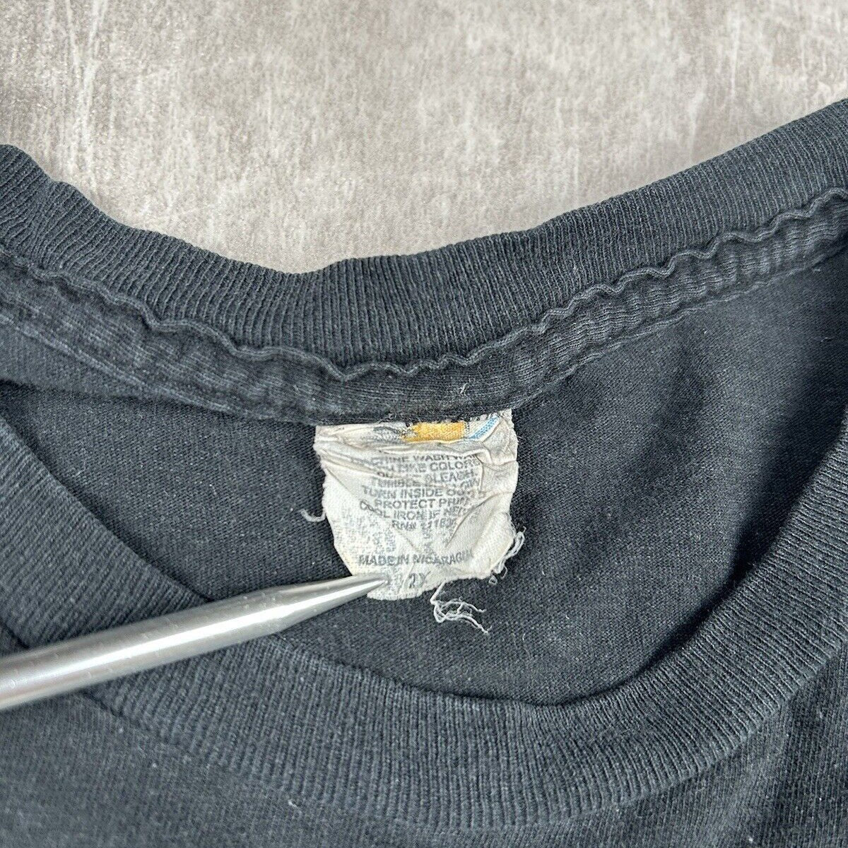 This vintage Hollywood Undead Black T-Shirt, in men’s size 2XL, features a bold pentagram graphic that captures the band's distinctive concert style. Crafted for comfort and style, it’s a standout piece for fans of the band’s edgy, energetic vibe.