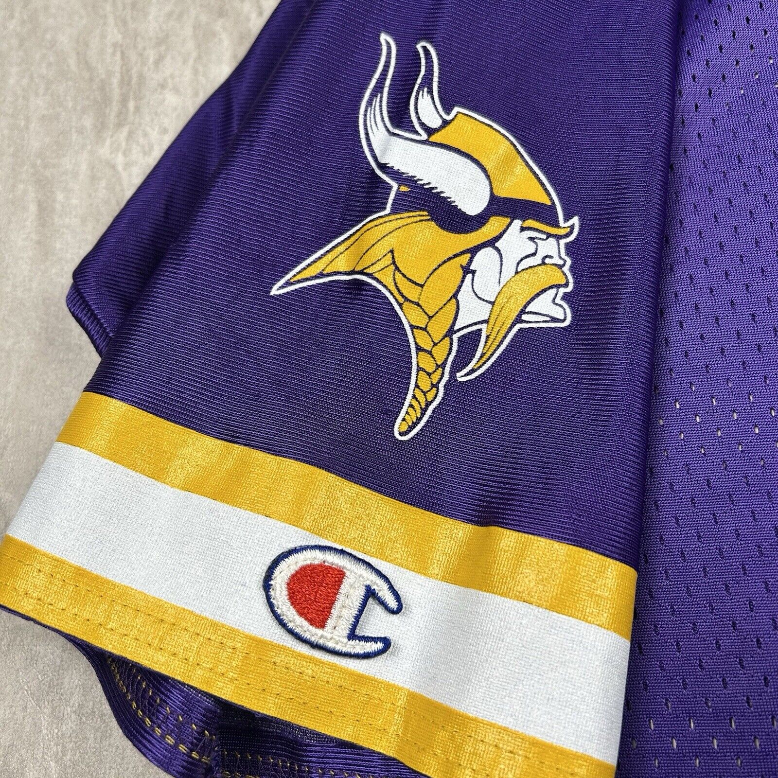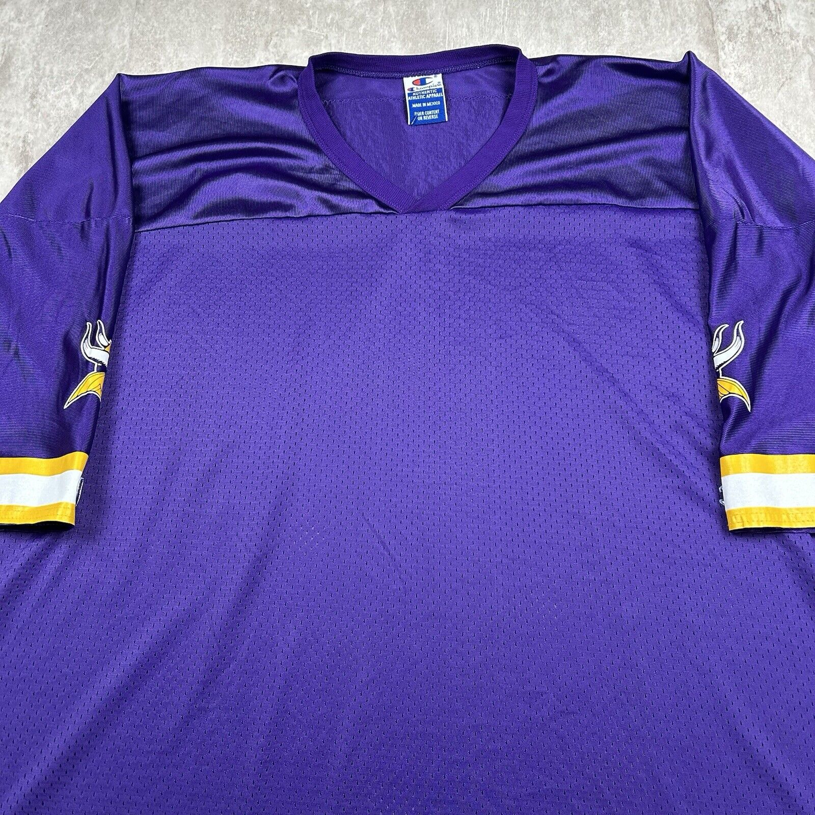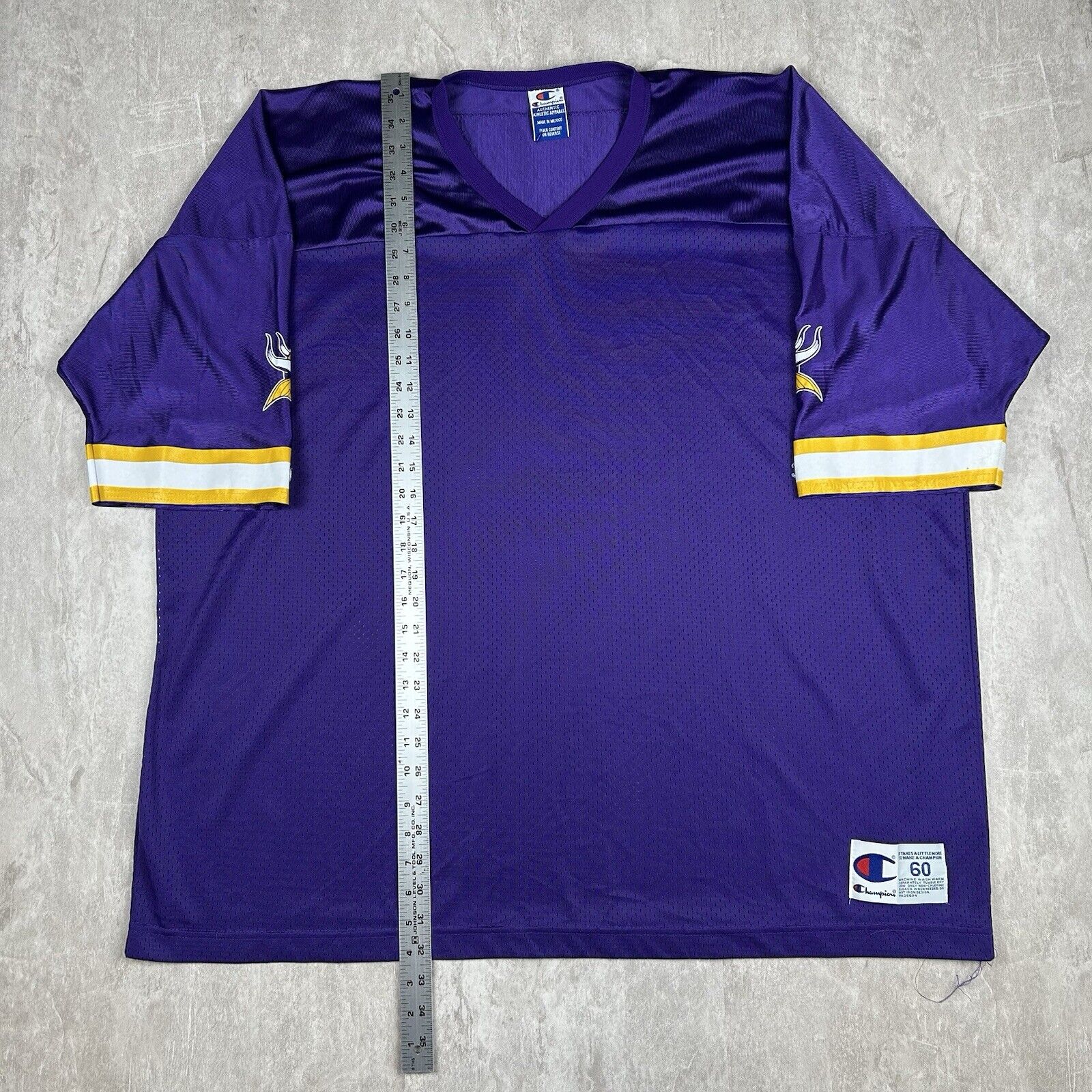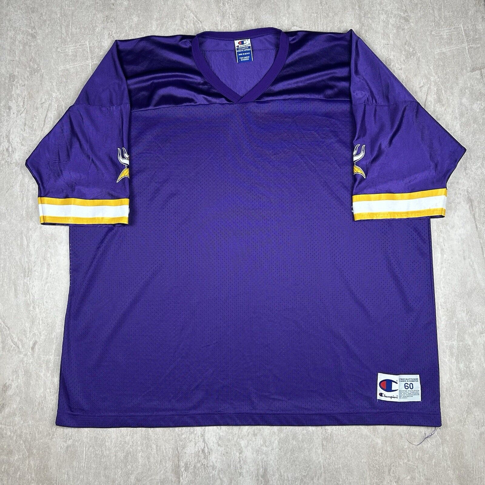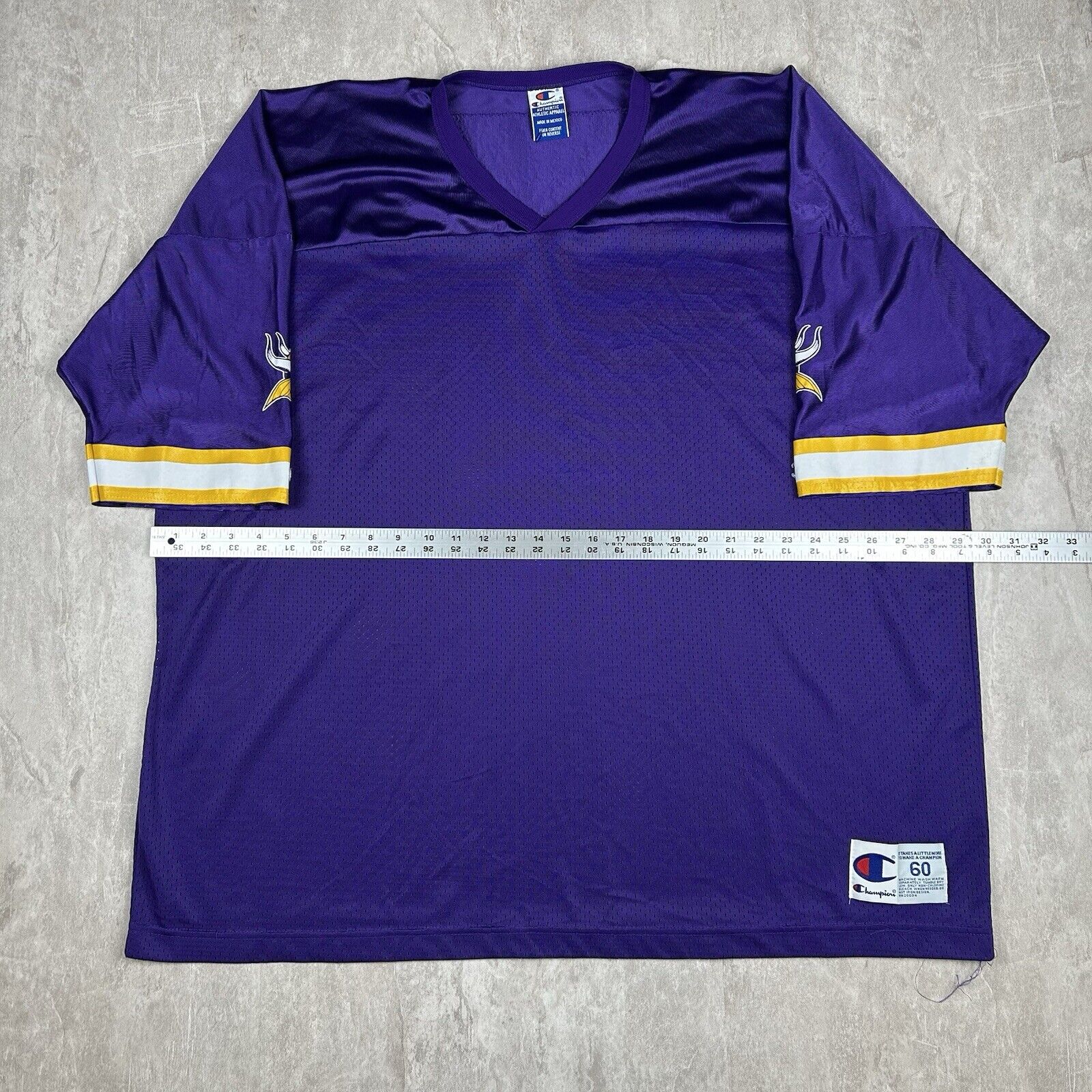 Show your team spirit with this Vtg Minnesota Vikings Champion Blank NFL Football Jersey. In a bold purple and men's size 60, this jersey offers a classic, oversized fit perfect for any Vikings fan or vintage sportswear collector.