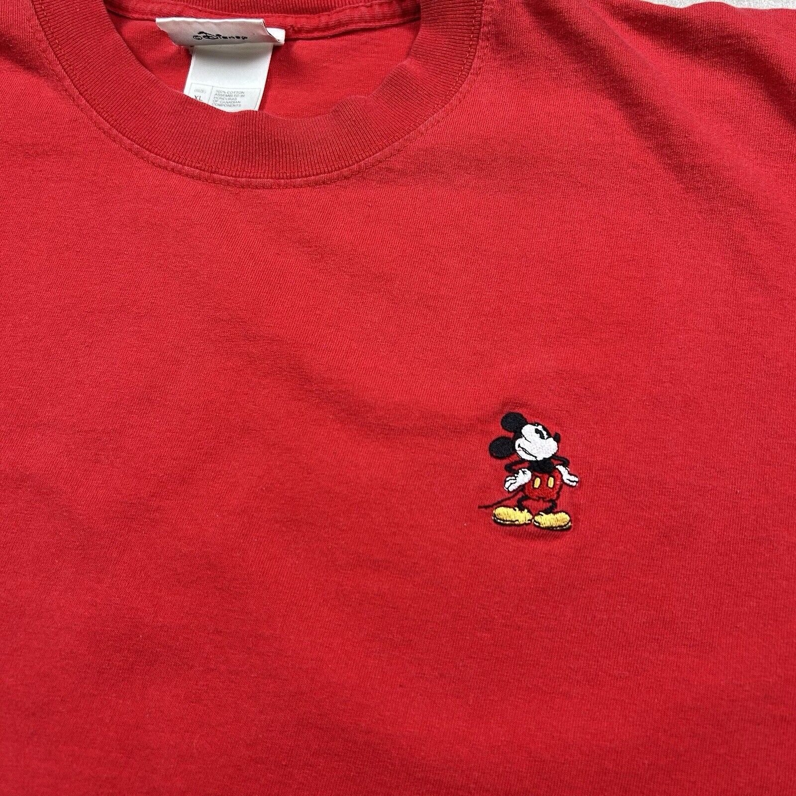 Walt Disney Red Mickey Mouse Embroidered T-Shirt Theme Park Logo Men’s Size XL
