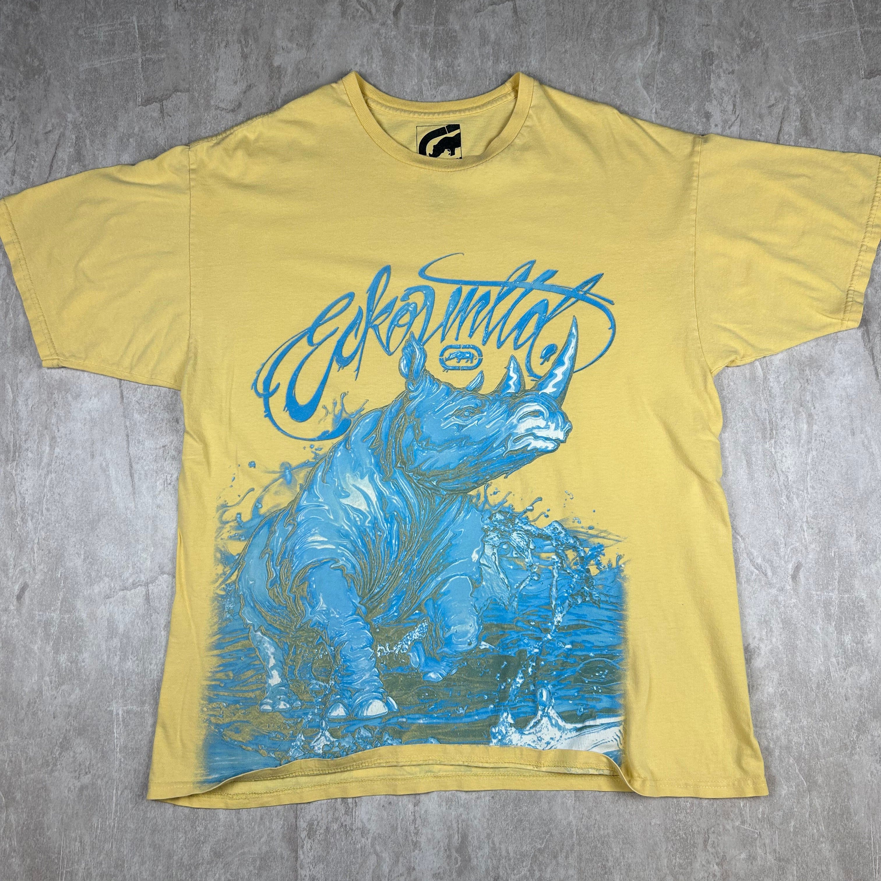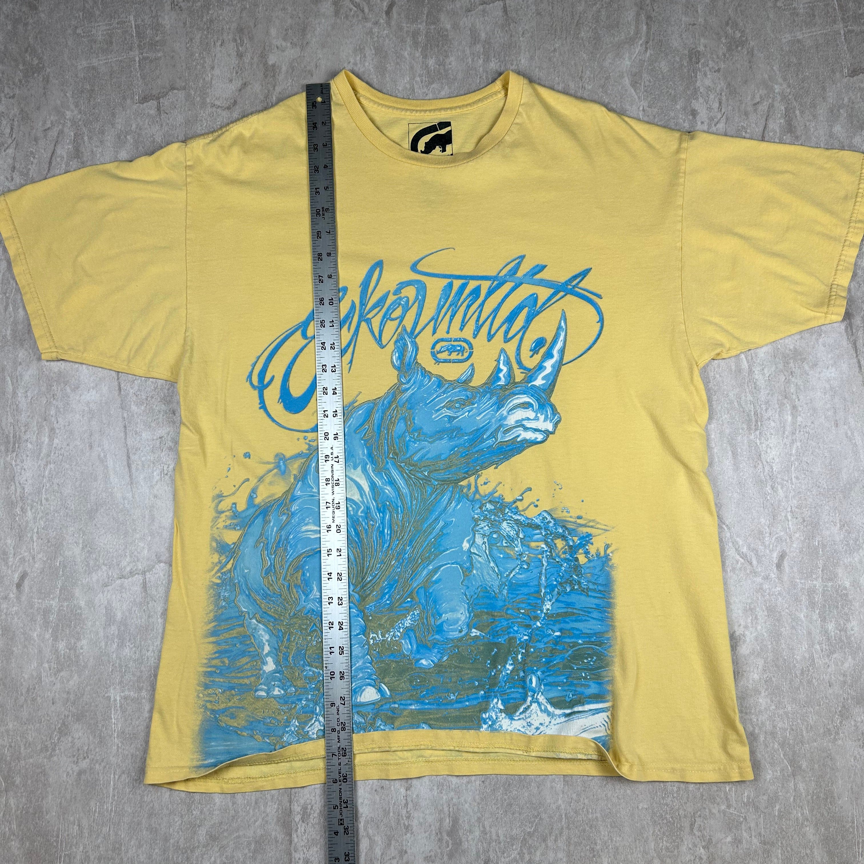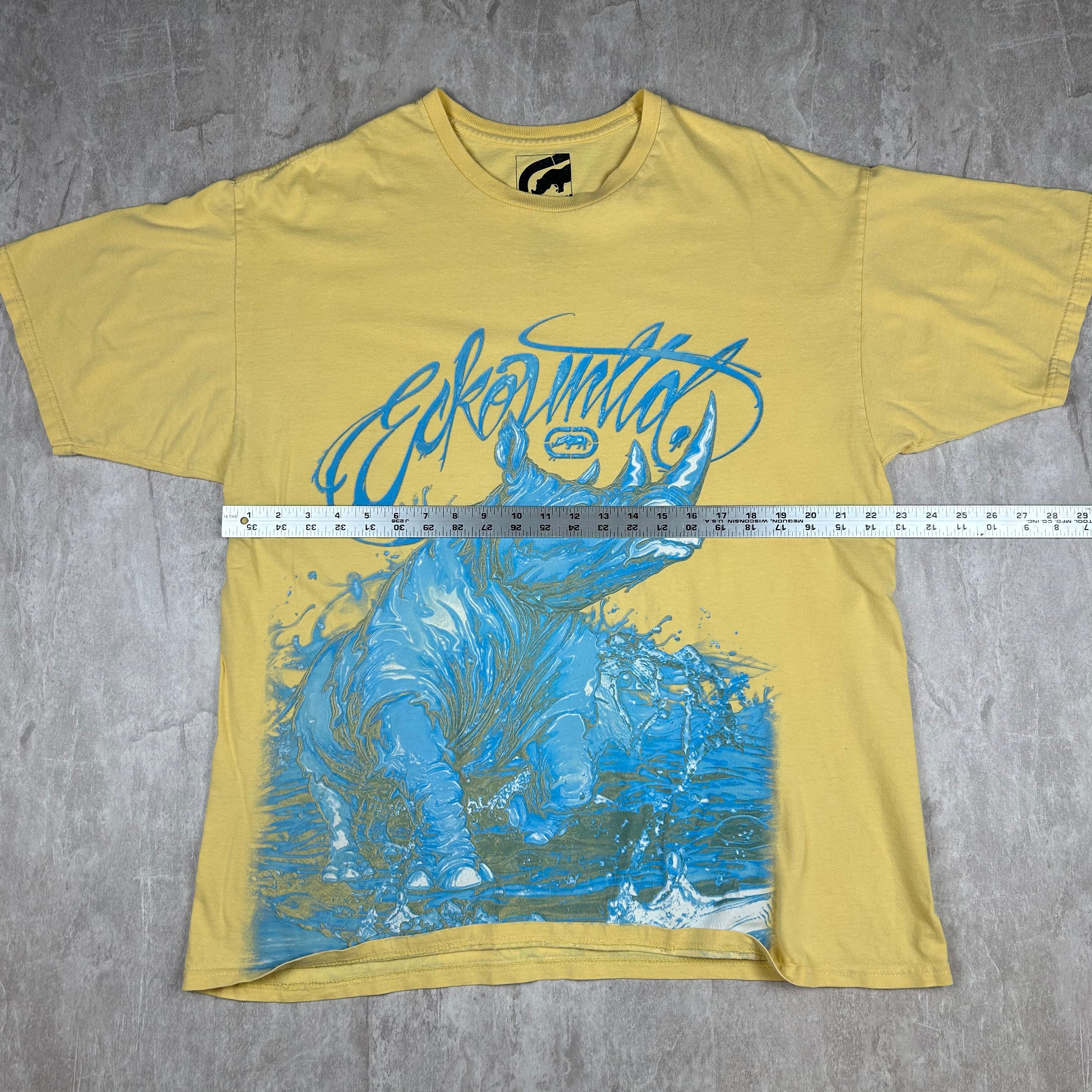 Y2K Ecko Unltd Graffiti Rhino Graphic T-Shirt Yellow Cotton Men’s Size XL