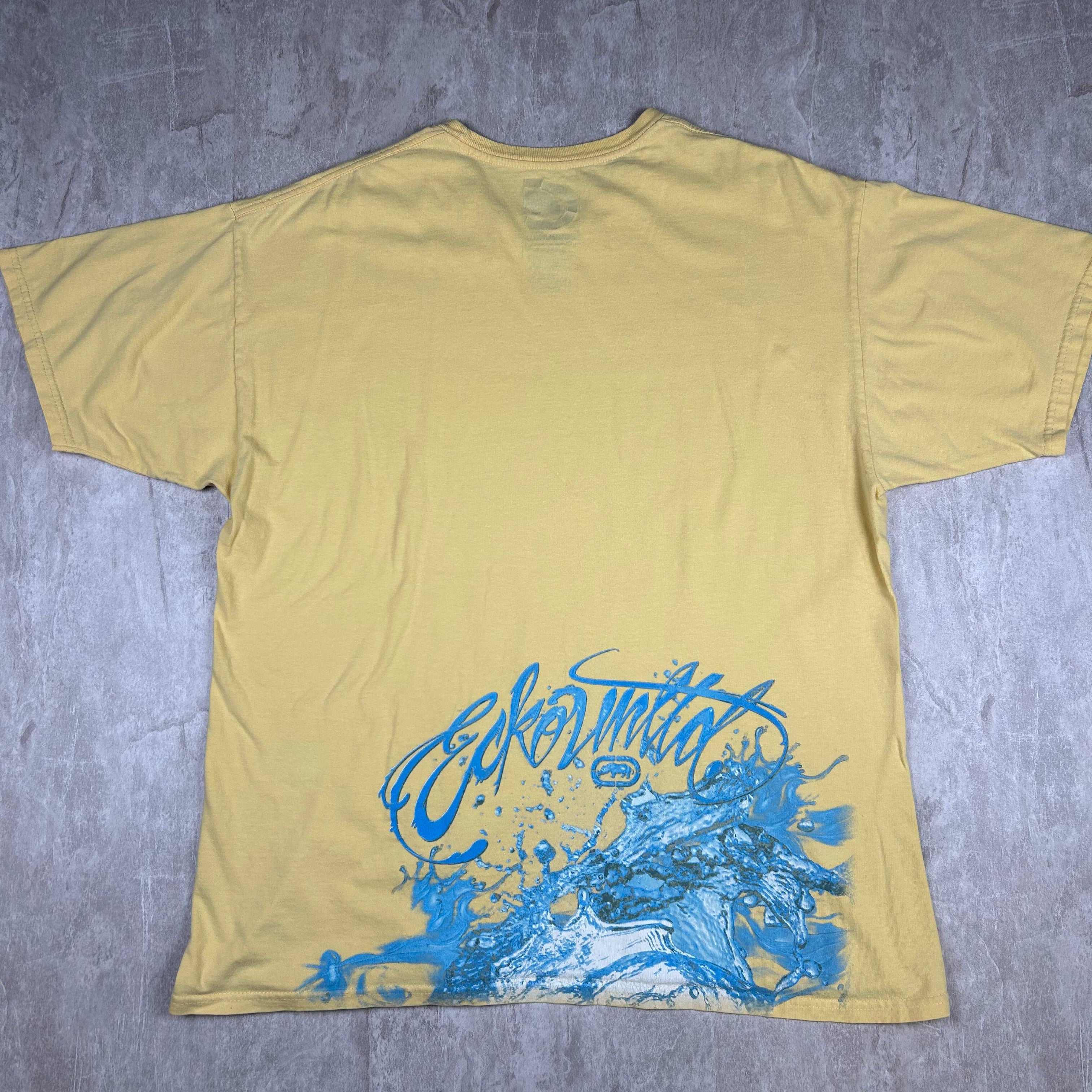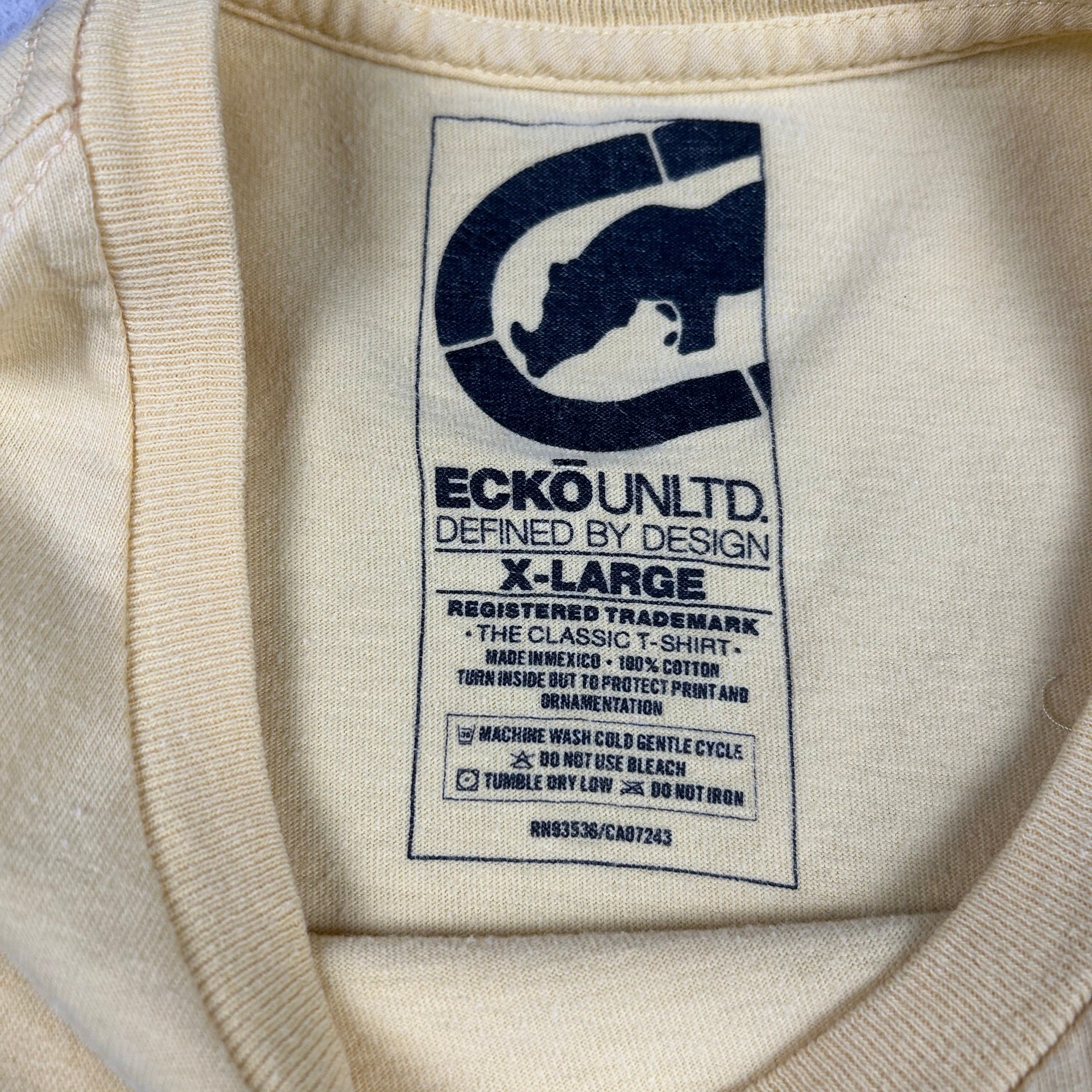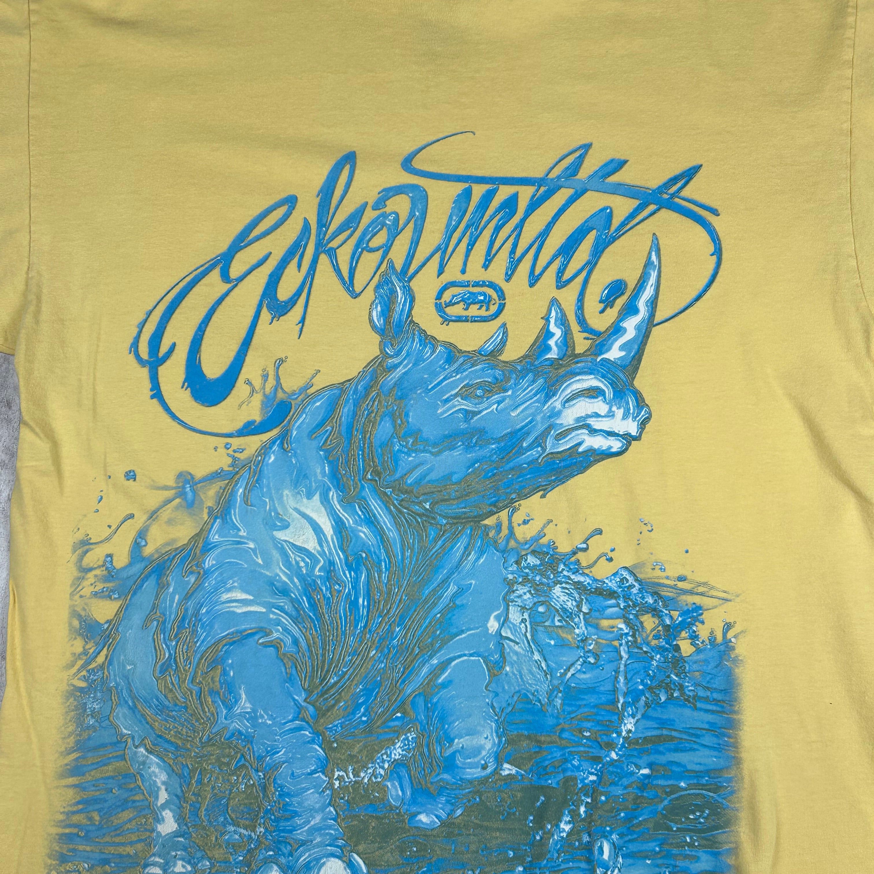 Y2K Ecko Unltd Graffiti Rhino Graphic T-Shirt Yellow Cotton Men’s Size XL