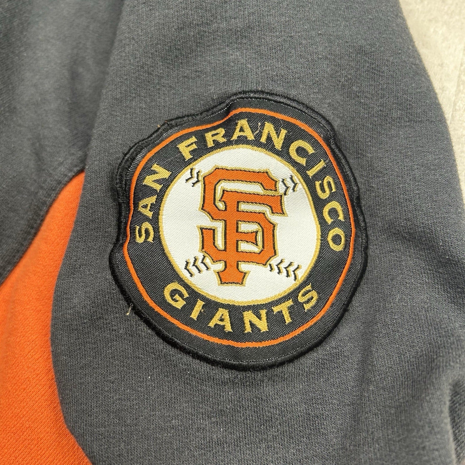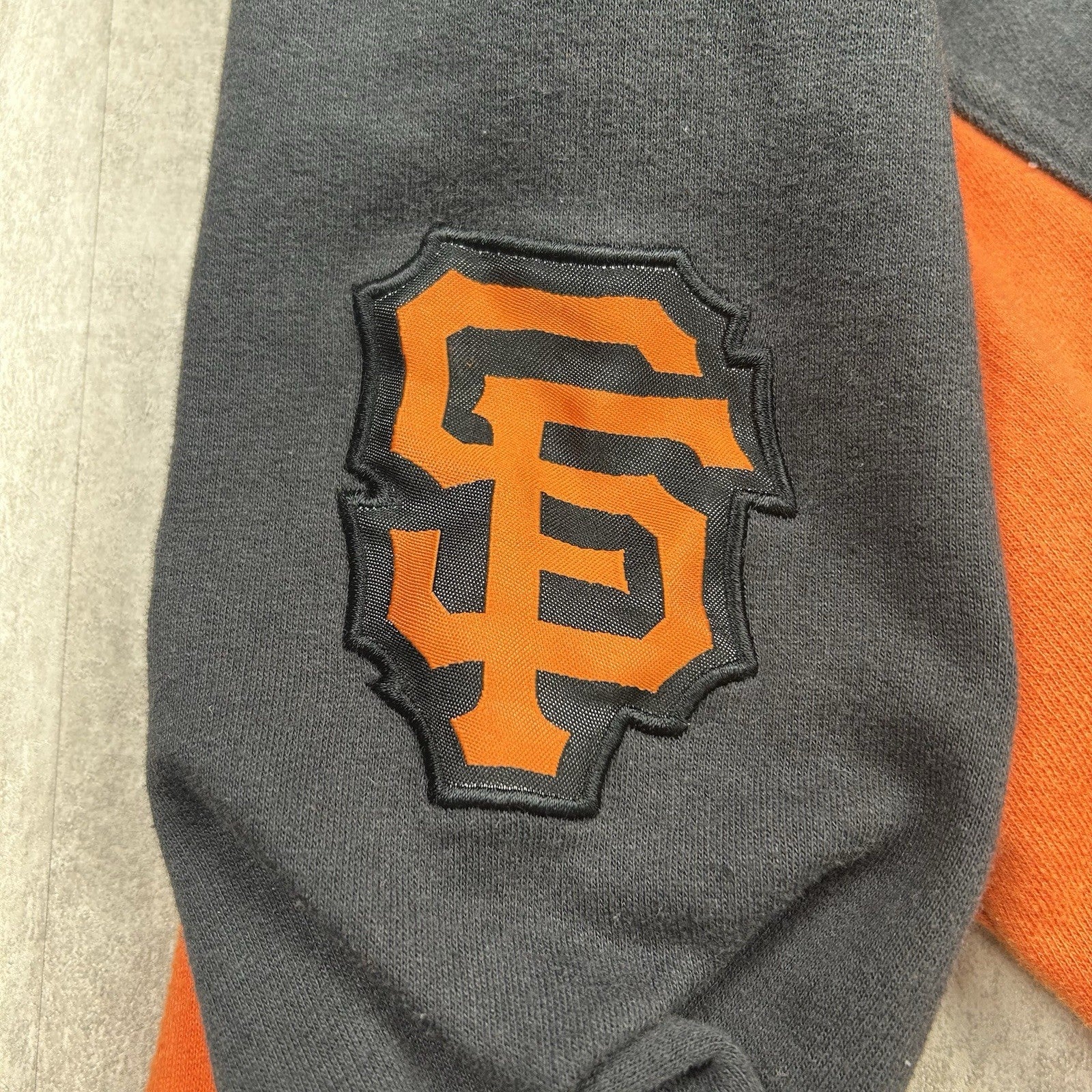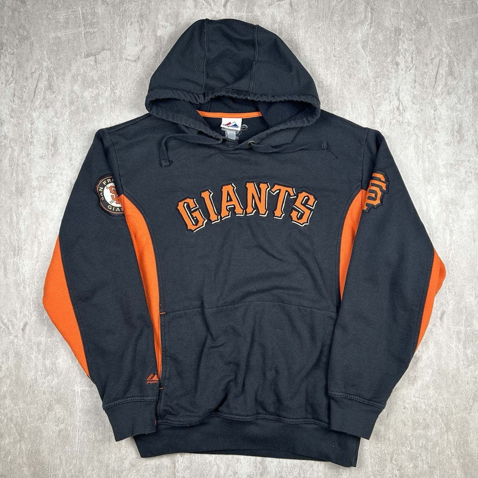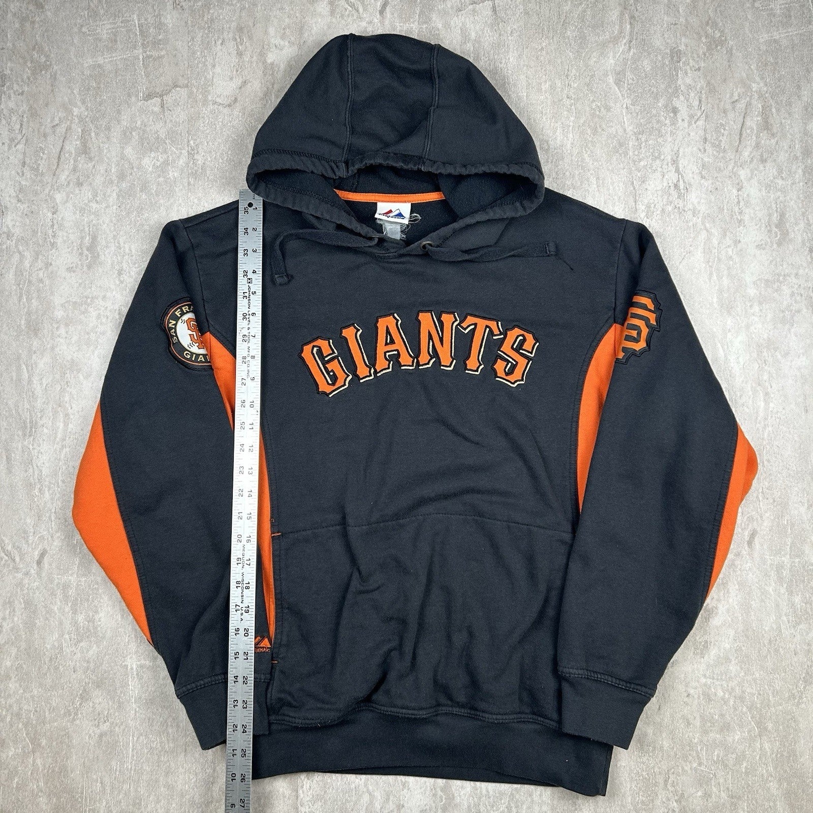 This Y2K San Francisco Giants hoodie by Majestic features a classic black design with bold team graphics on the front. Made from a comfortable material, it's perfect for any fan looking to showcase their team pride. Size unknown.